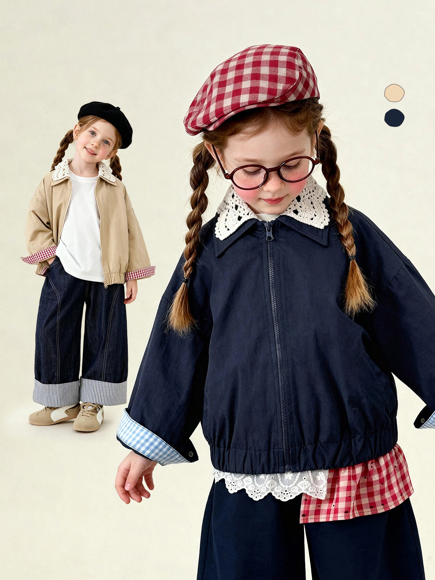 ベビー ドッキング 丸襟 長袖 ロンパース ワンピース リンクコーデ 姉妹 お揃い【mh0000984】