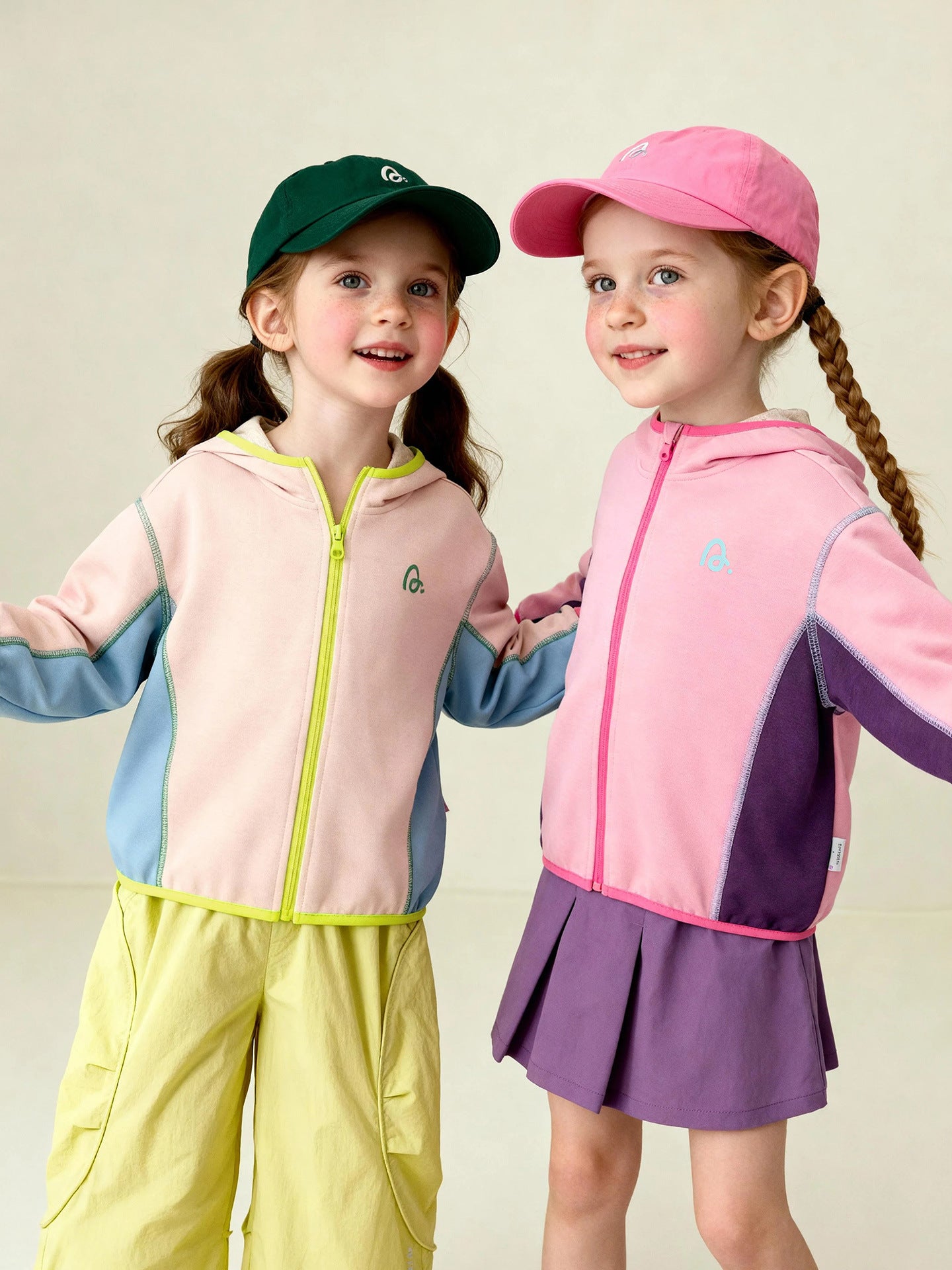 バイカラー長袖ロンパース+足付きレギンスパンツ+ボンネット帽子セット【mh0010604】
