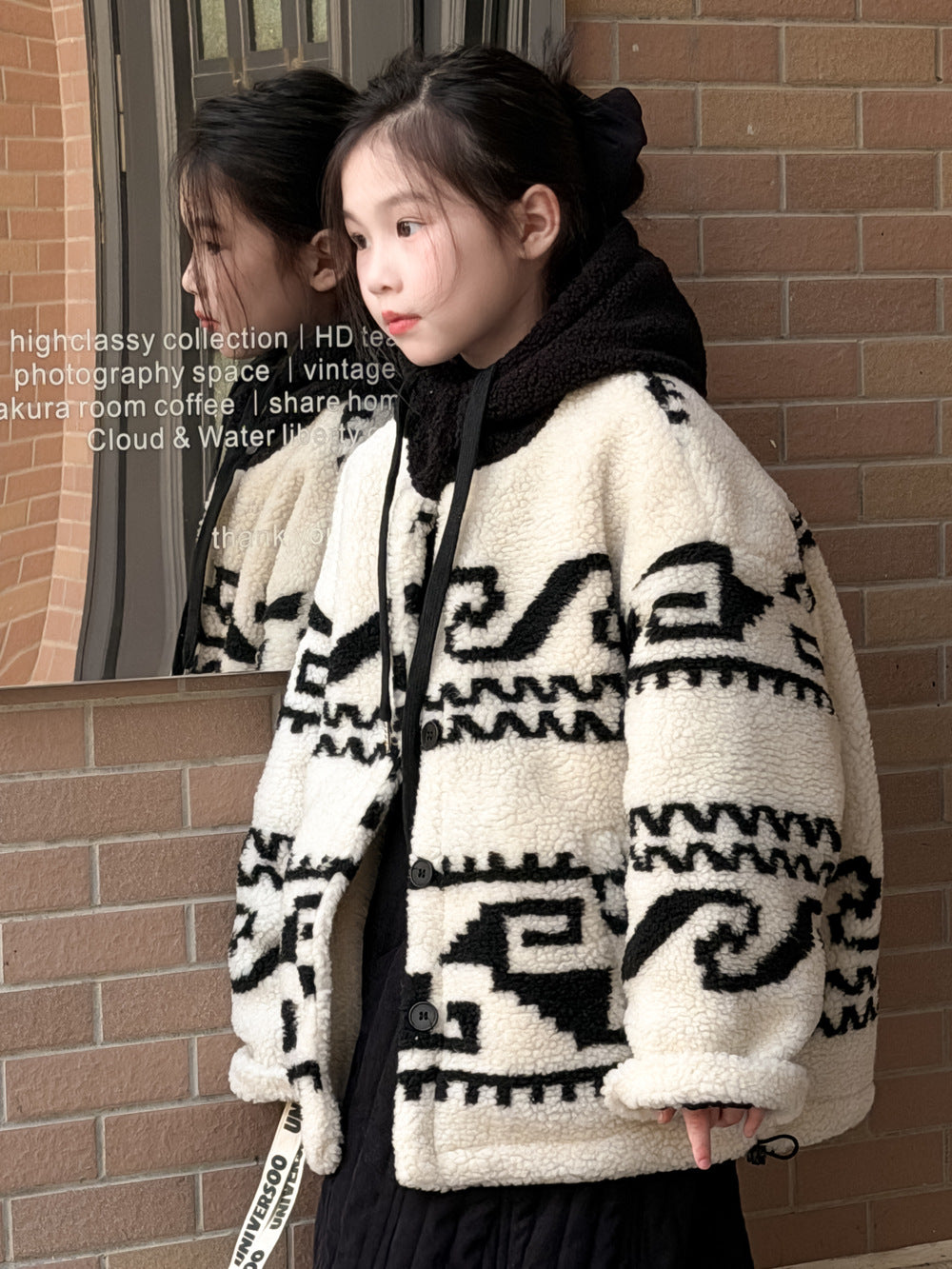 ラムフリースジャケット トライバル柄 ネイティブ柄 フーディコート【mh0011868】