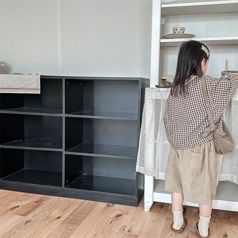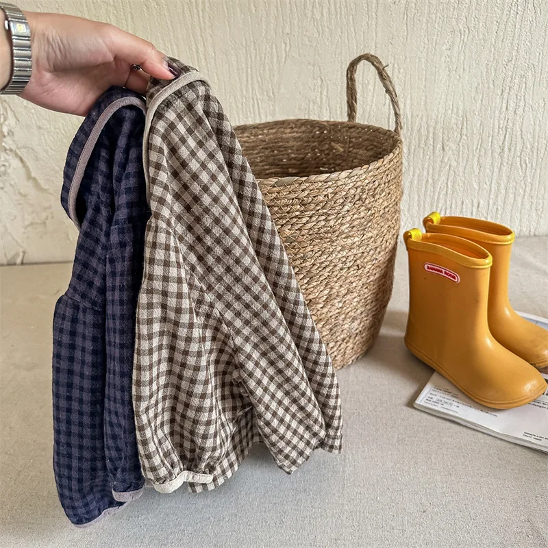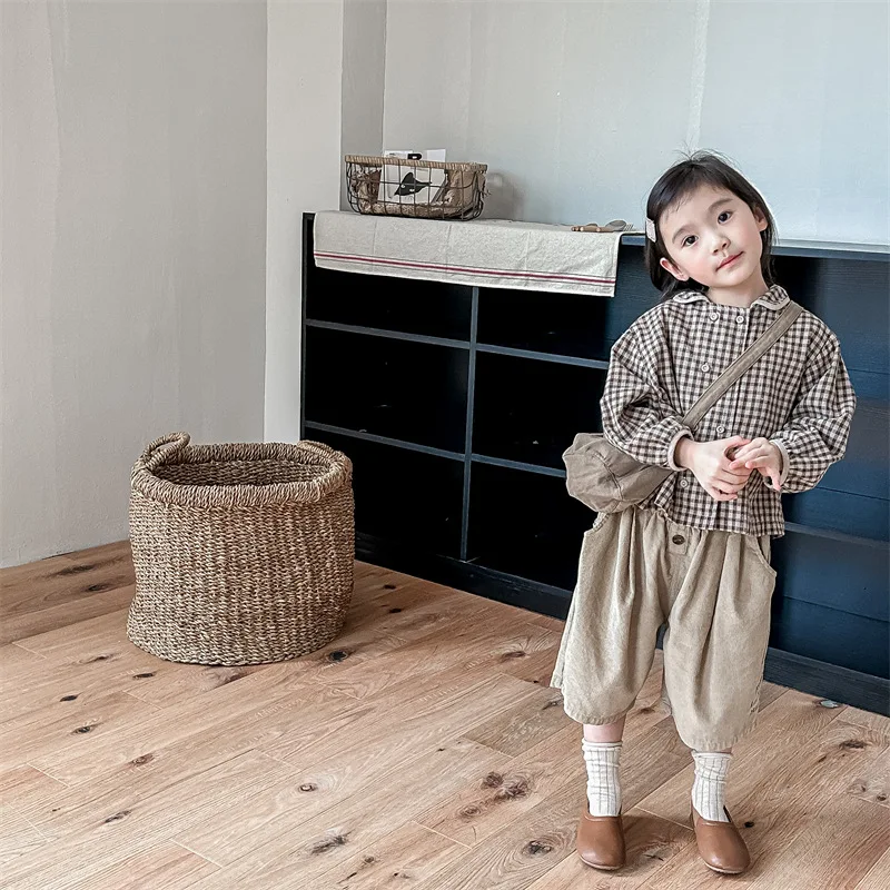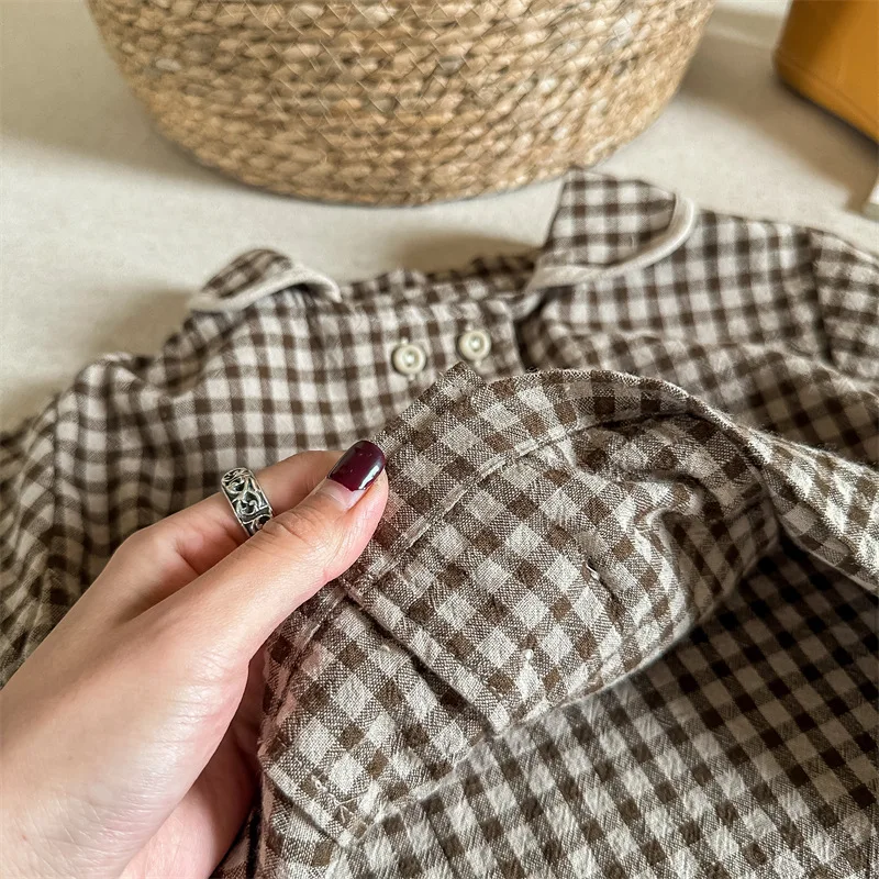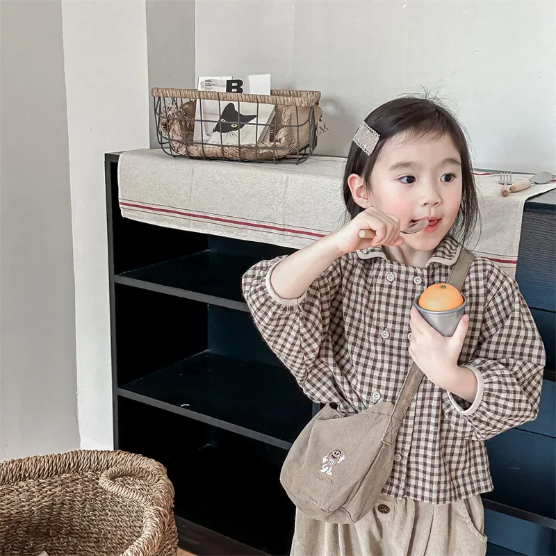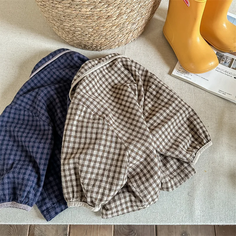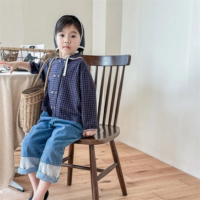 キッズ チェック ダブルボタン 長袖 ルーズ シャツ ブラウス