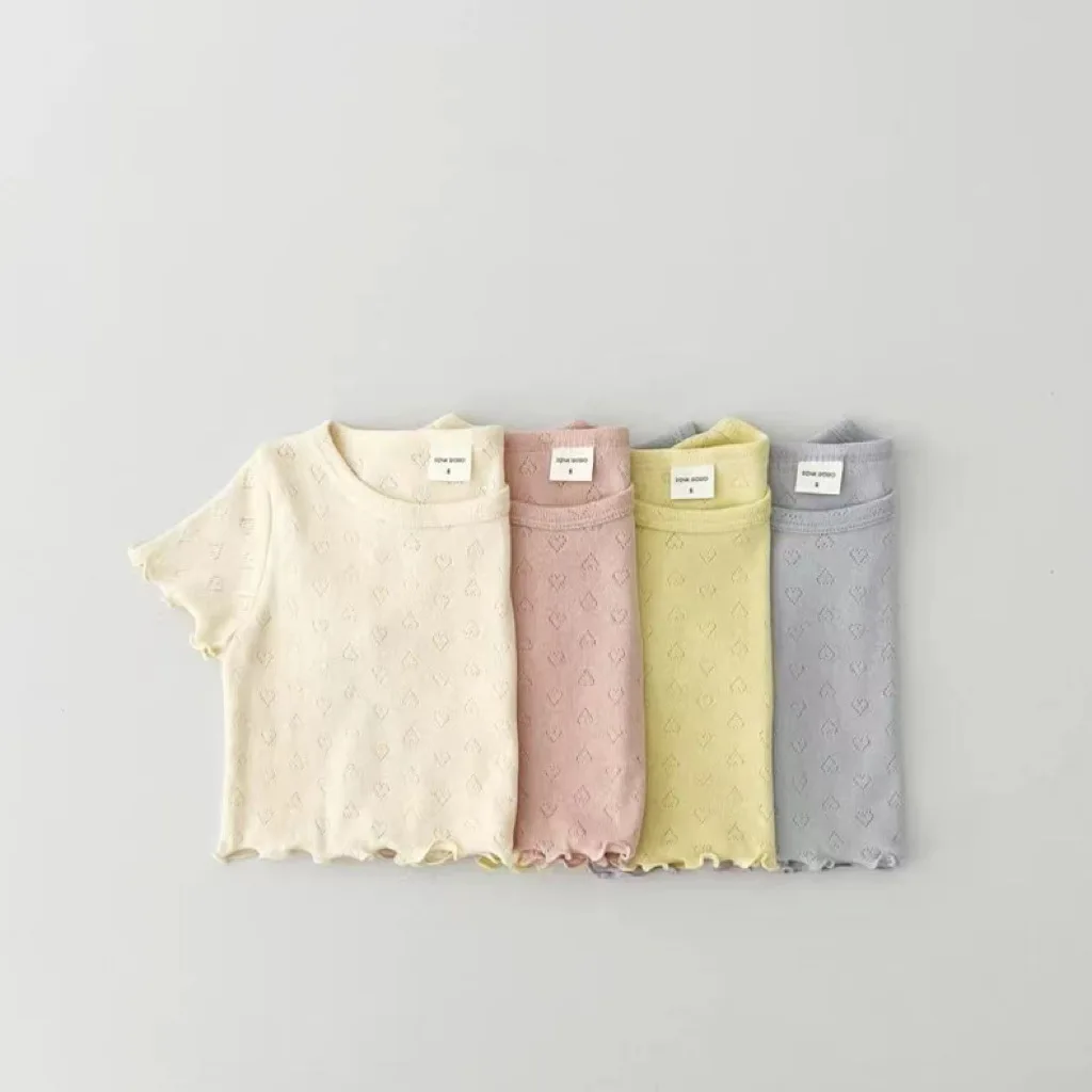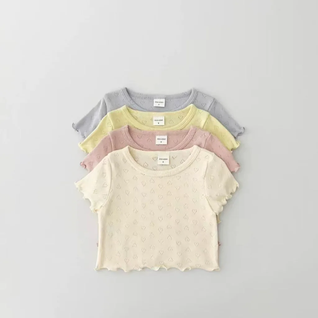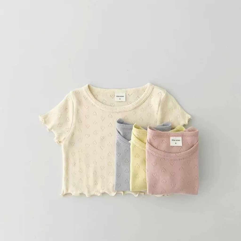 ベビートップス ハートレースニット 半袖Tシャツ パステル 4カラー