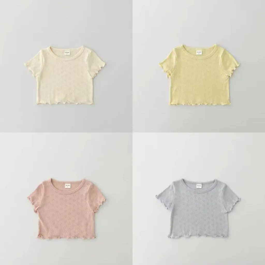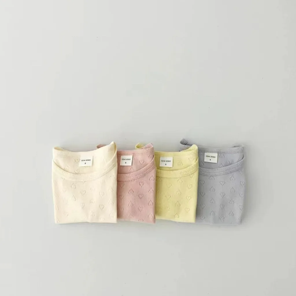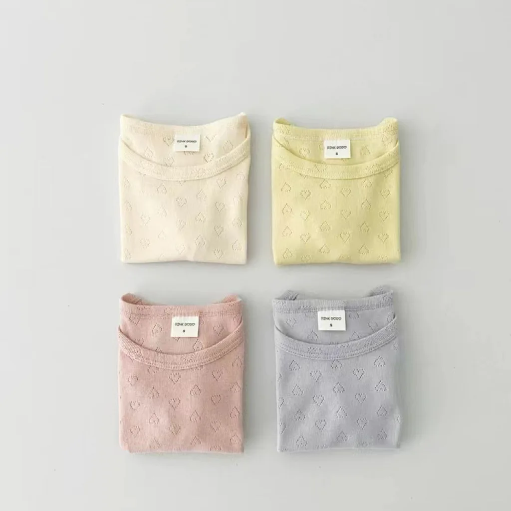 ベビートップス ハートレースニット 半袖Tシャツ パステル 4カラー