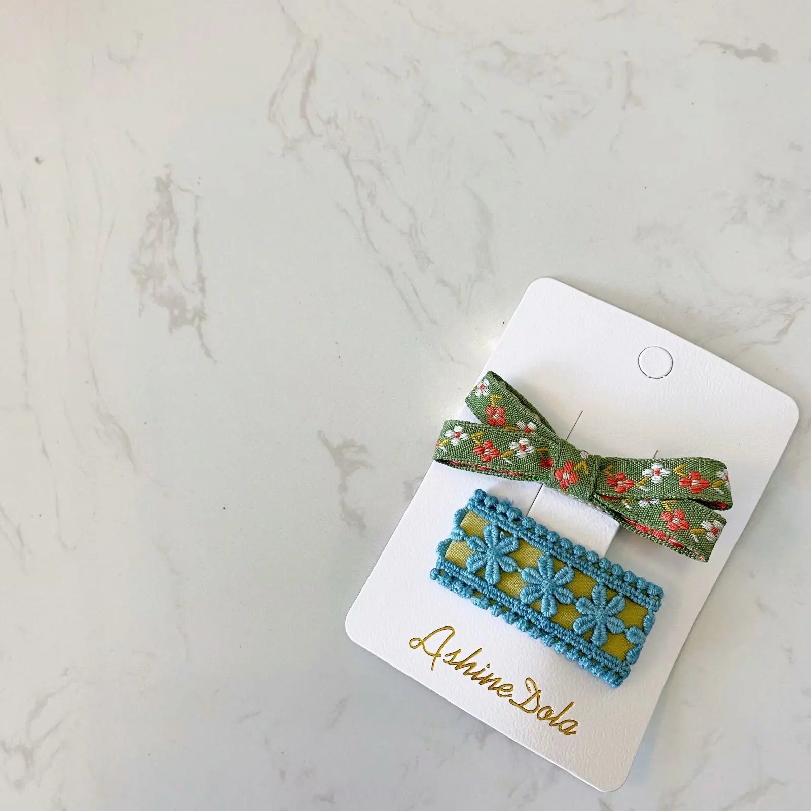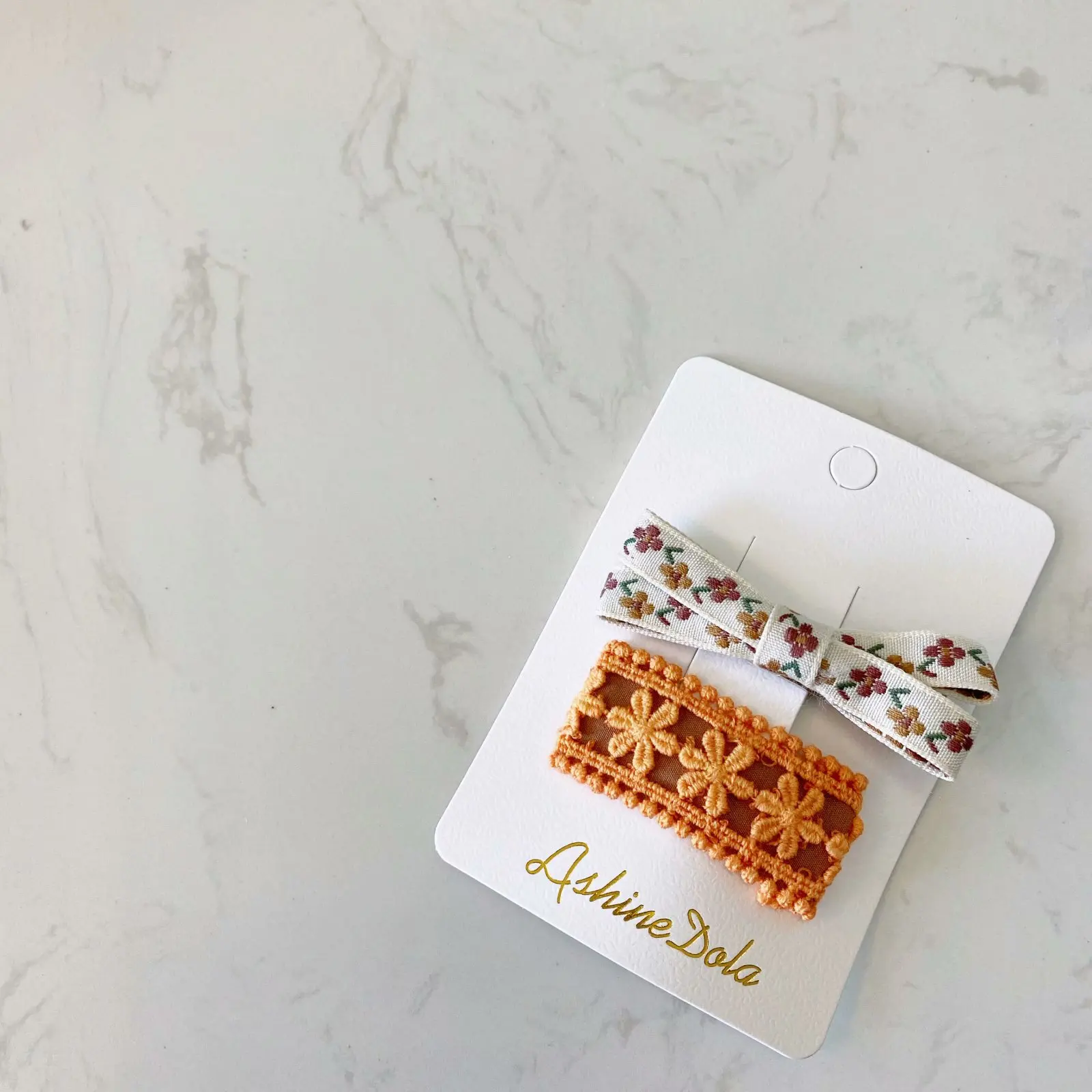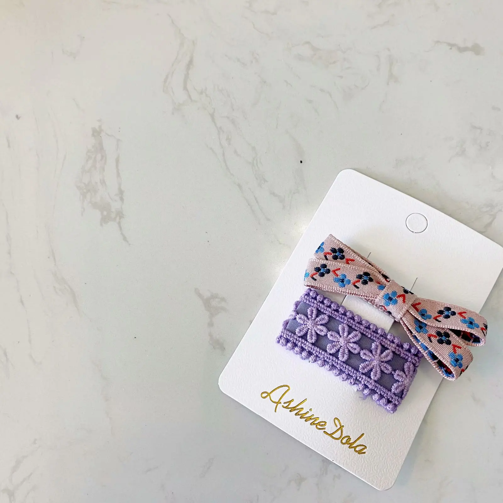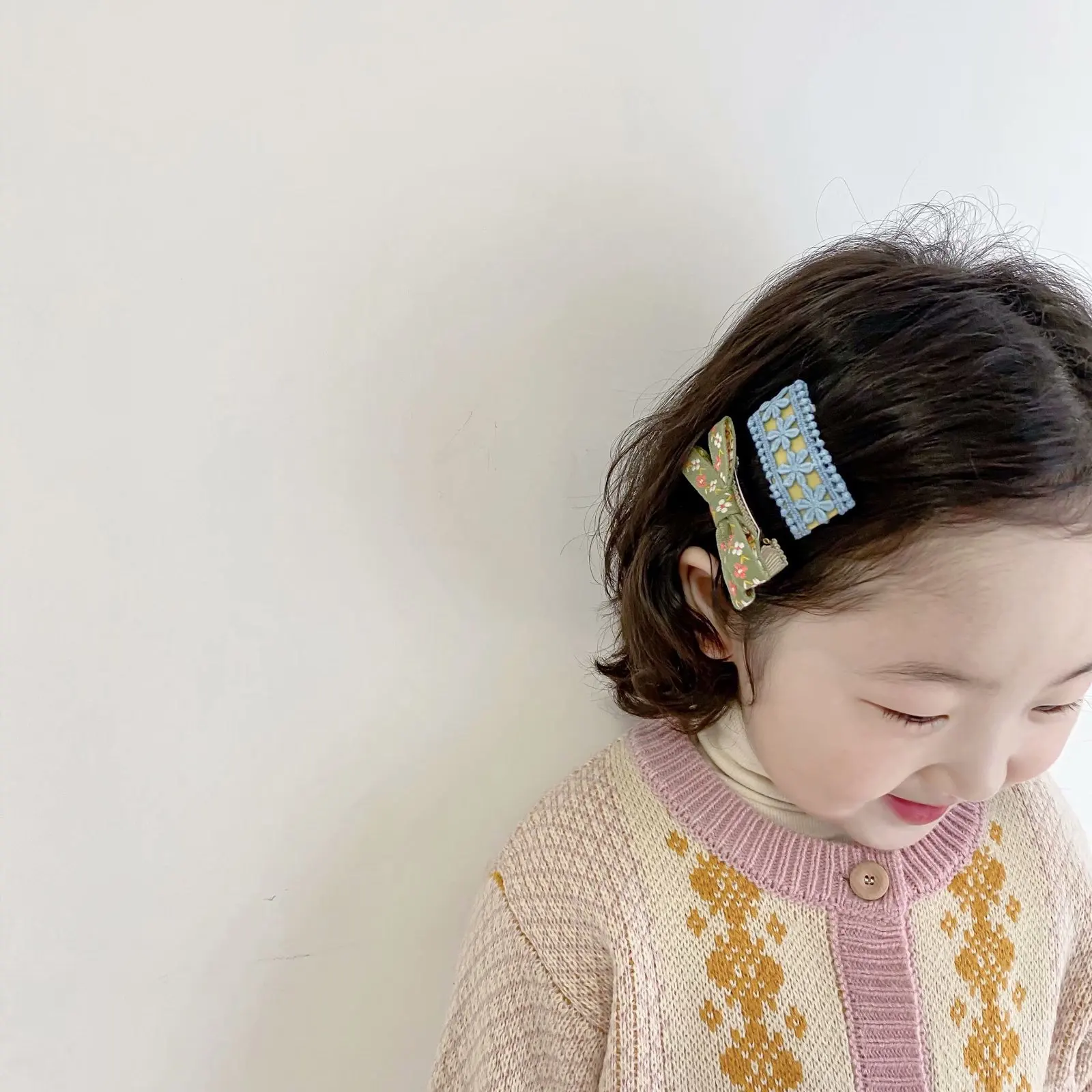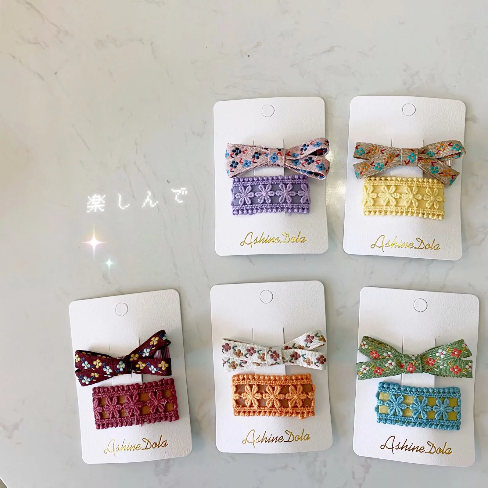キッズ レース フラワー ヘアピン ヘアアクセサリー パッチンピン 2個 セット【mh0001882】