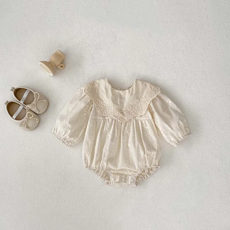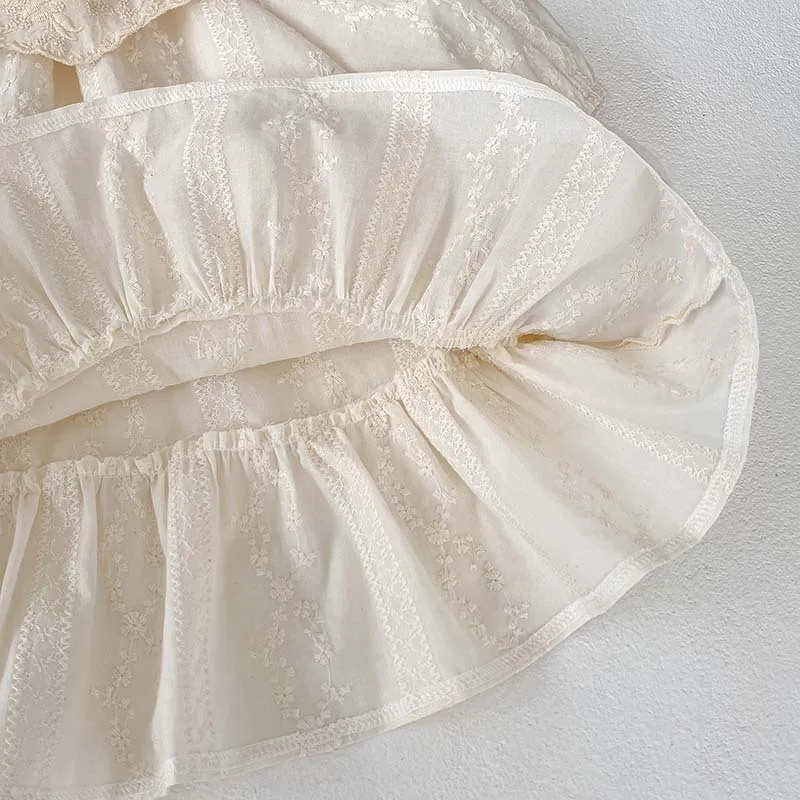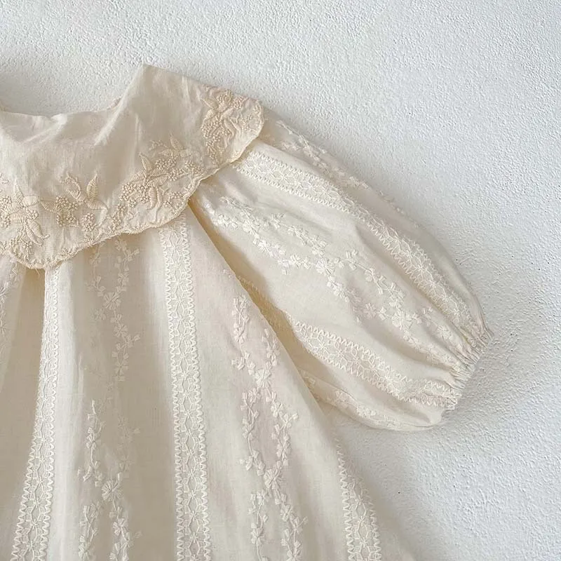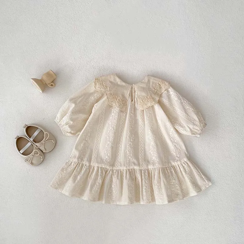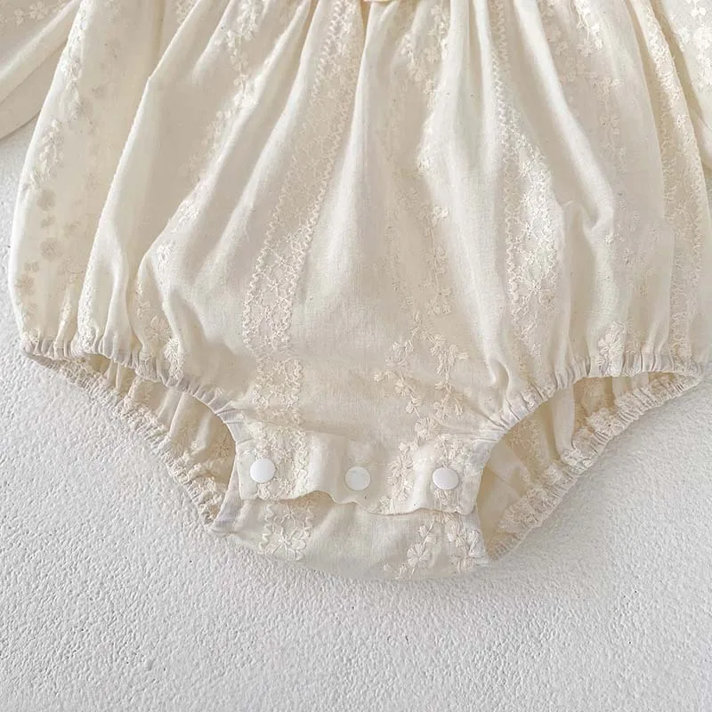 ベビーロンパース キッズワンピース 刺繍レース 長袖ドレス リンクコーデ 姉妹お揃い お出かけ ベージュ【mh0003922】