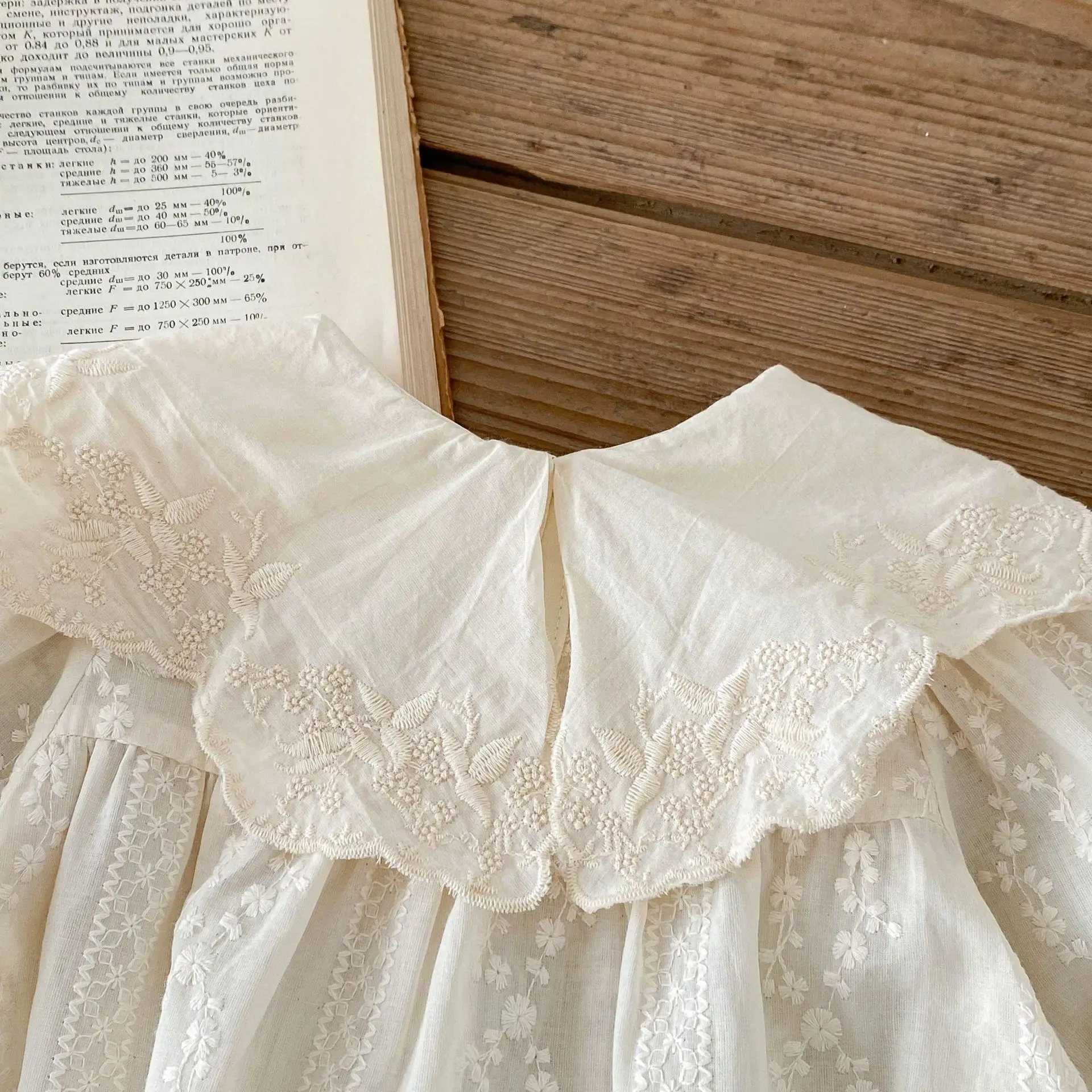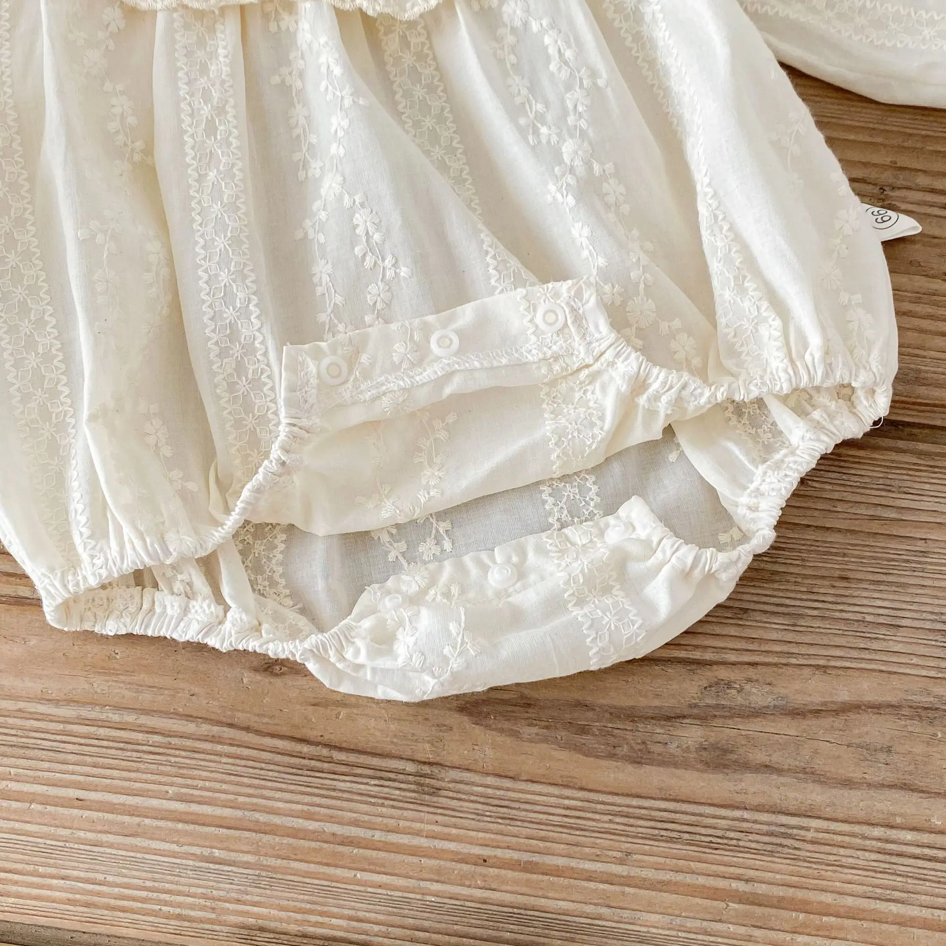 #ベビーロンパース #ビッグ襟ボディスーツ #エレガントな刺繍 #女の子ファッション #ベビーウェア #華やかなベビー服