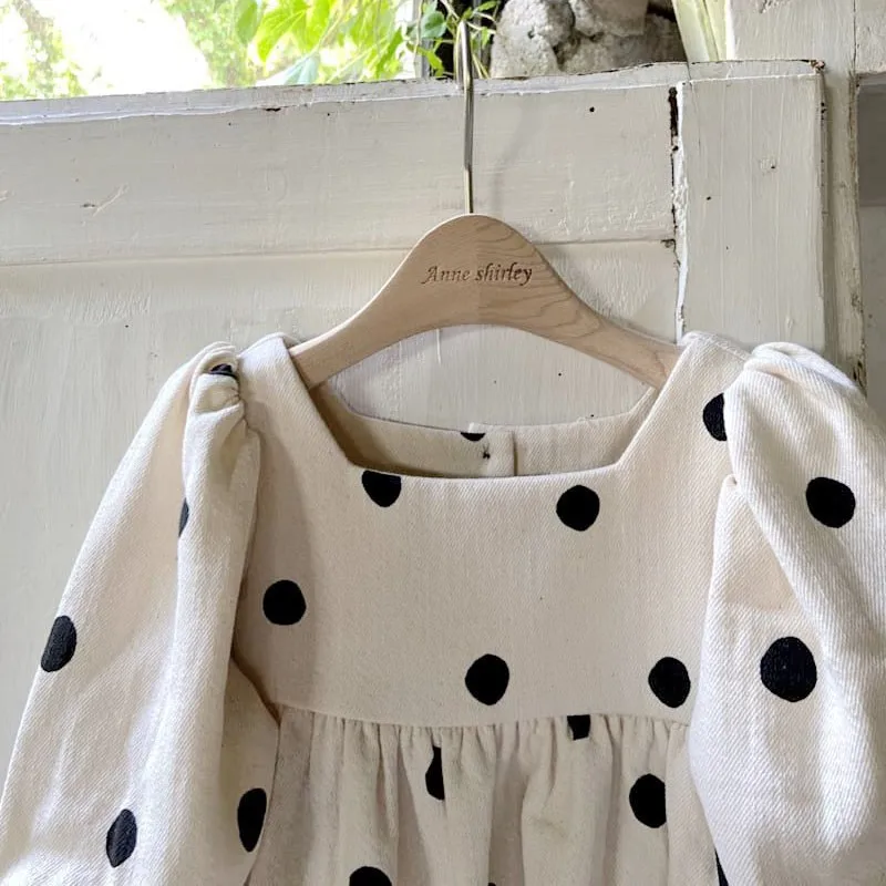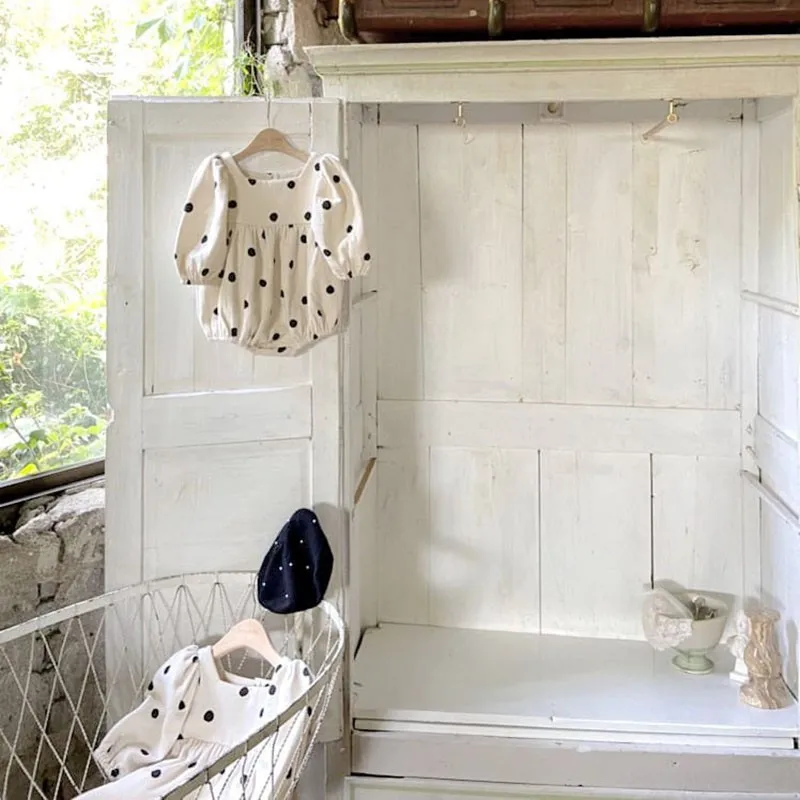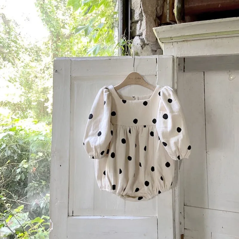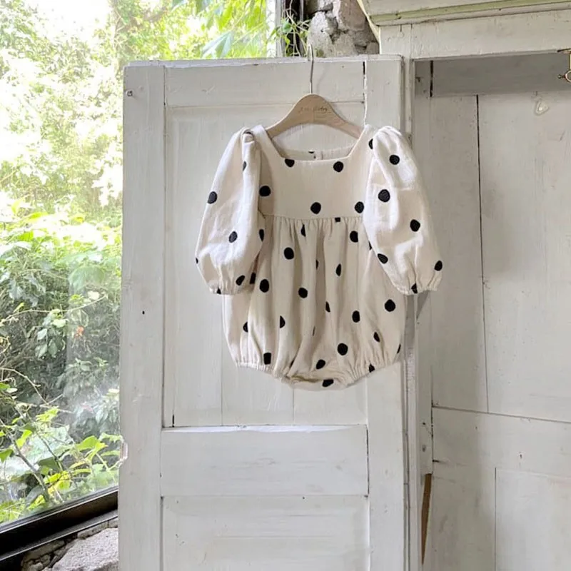 ベビーロンパース 長袖パフスリーブボディスーツ 水玉ドットプリント【mh0004753】