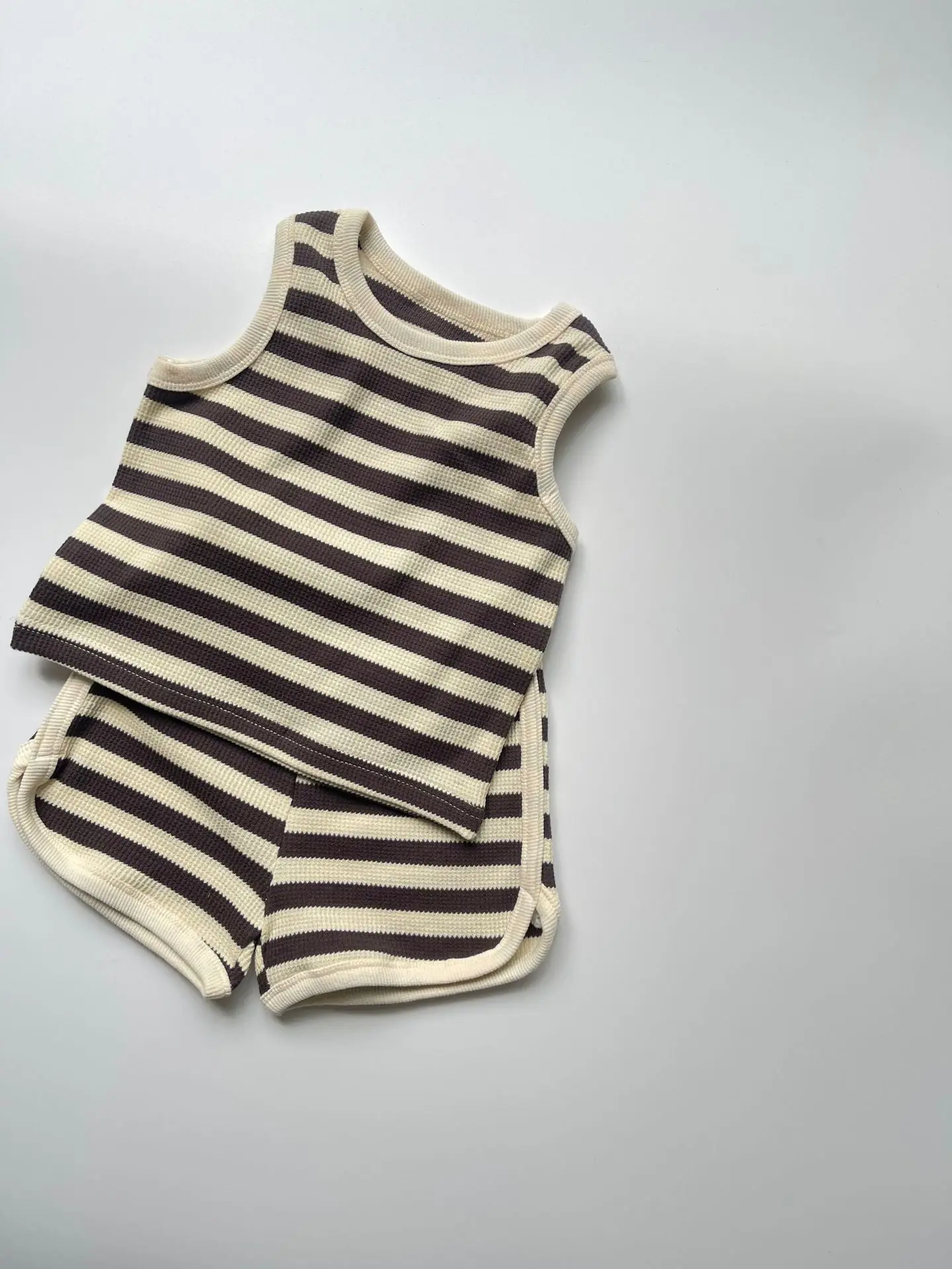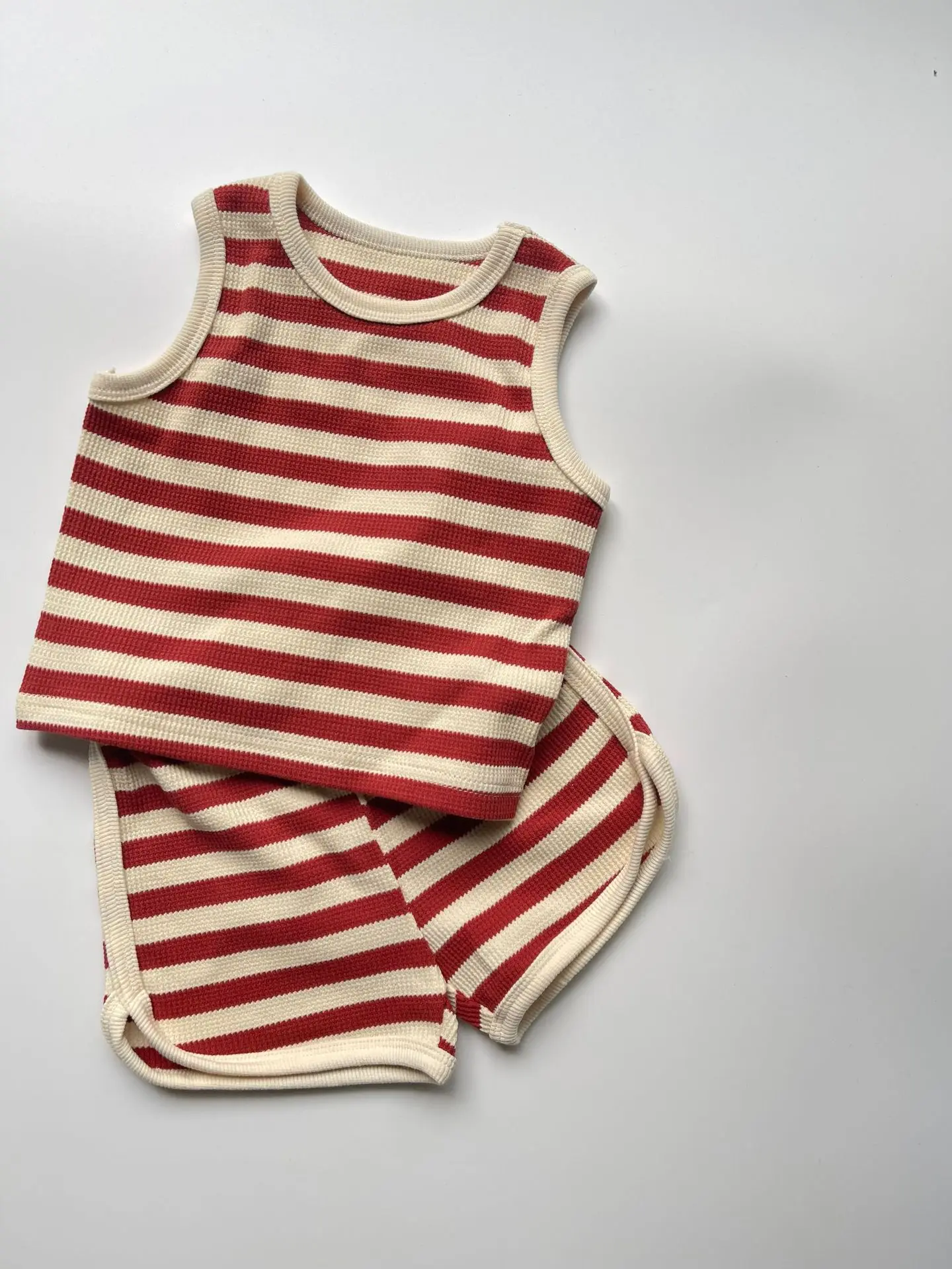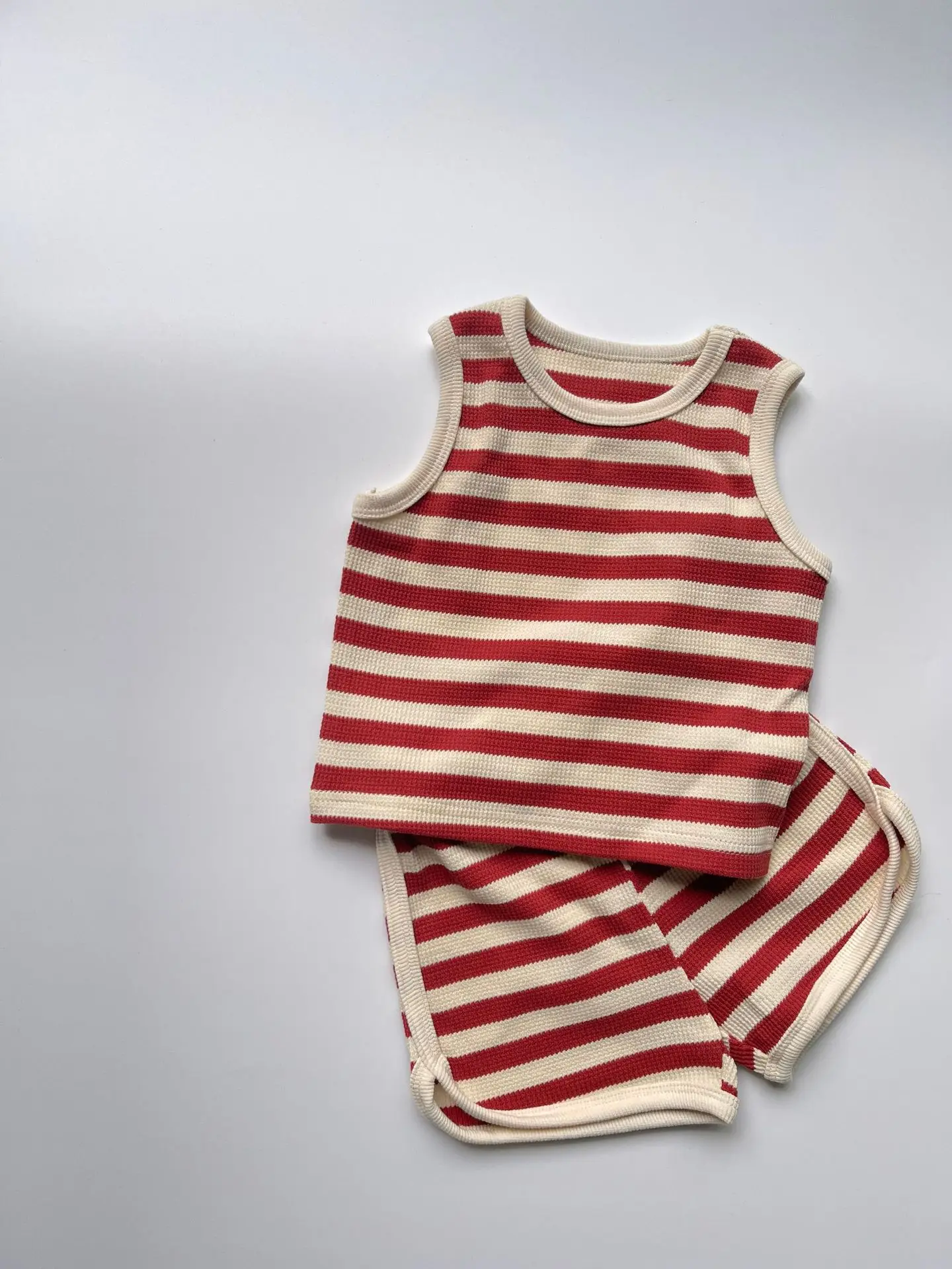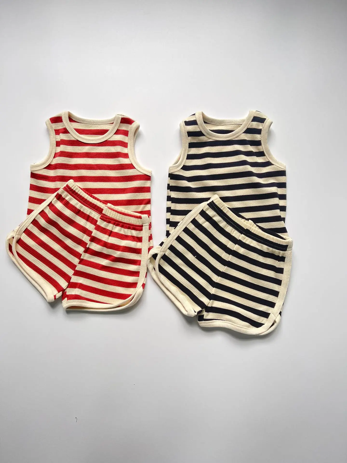 #夏のベビーウェア #ベビーセットアップ #タンクトップ #ショートパンツ #子供服 #ボーダーデザイン