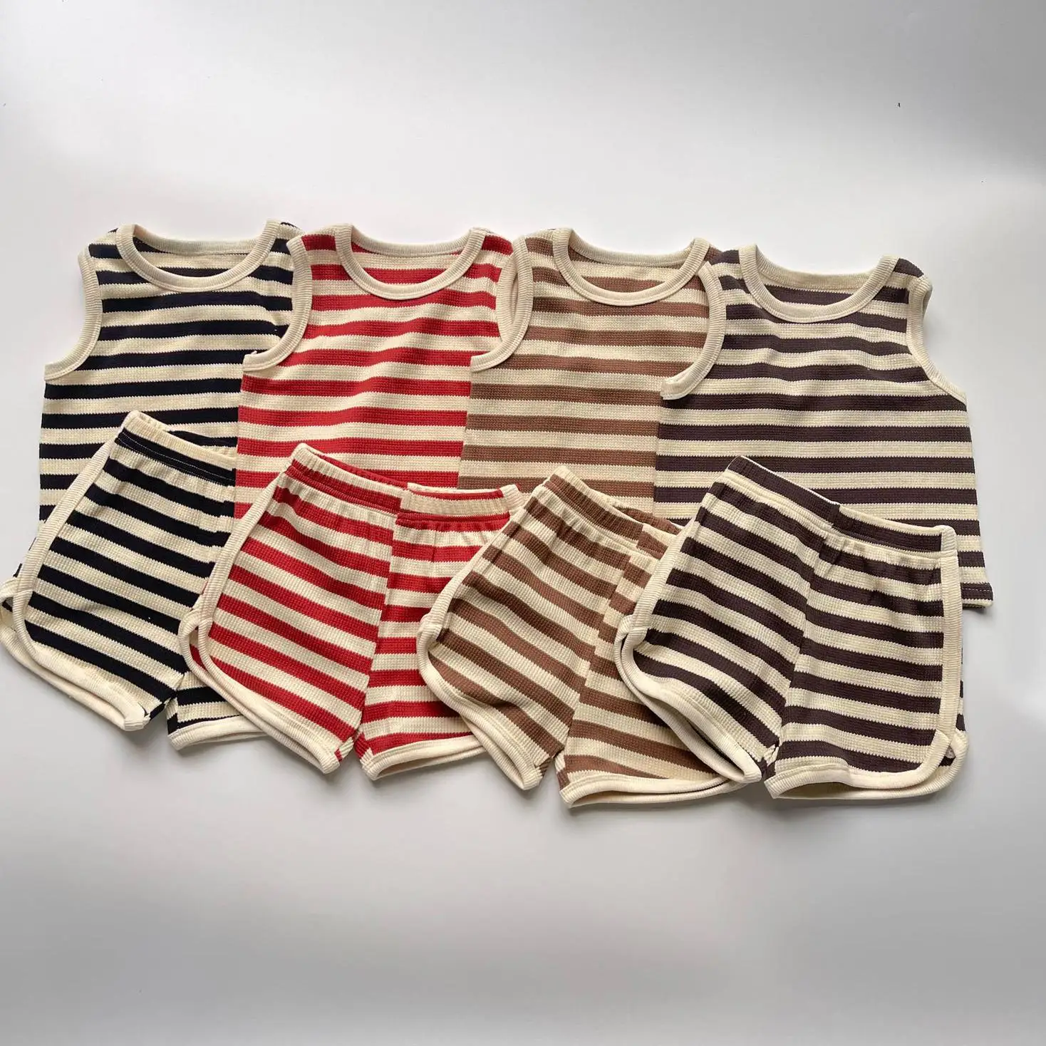 夏の暑い日にぴったりなベビーセットアップが登場しました。この2点セットには、ボーダーデザインのタンクトップとショートパンツが含まれています。涼しい肌触りの素材で作られ、ベビーの快適な着心地を保証します。ノースリーブのトップスと短パンの組み合わせは、活発な遊びやお出かけに最適です。お家でのリラックスタイムから外出先まで、様々なシーンでお使いいただけます。
