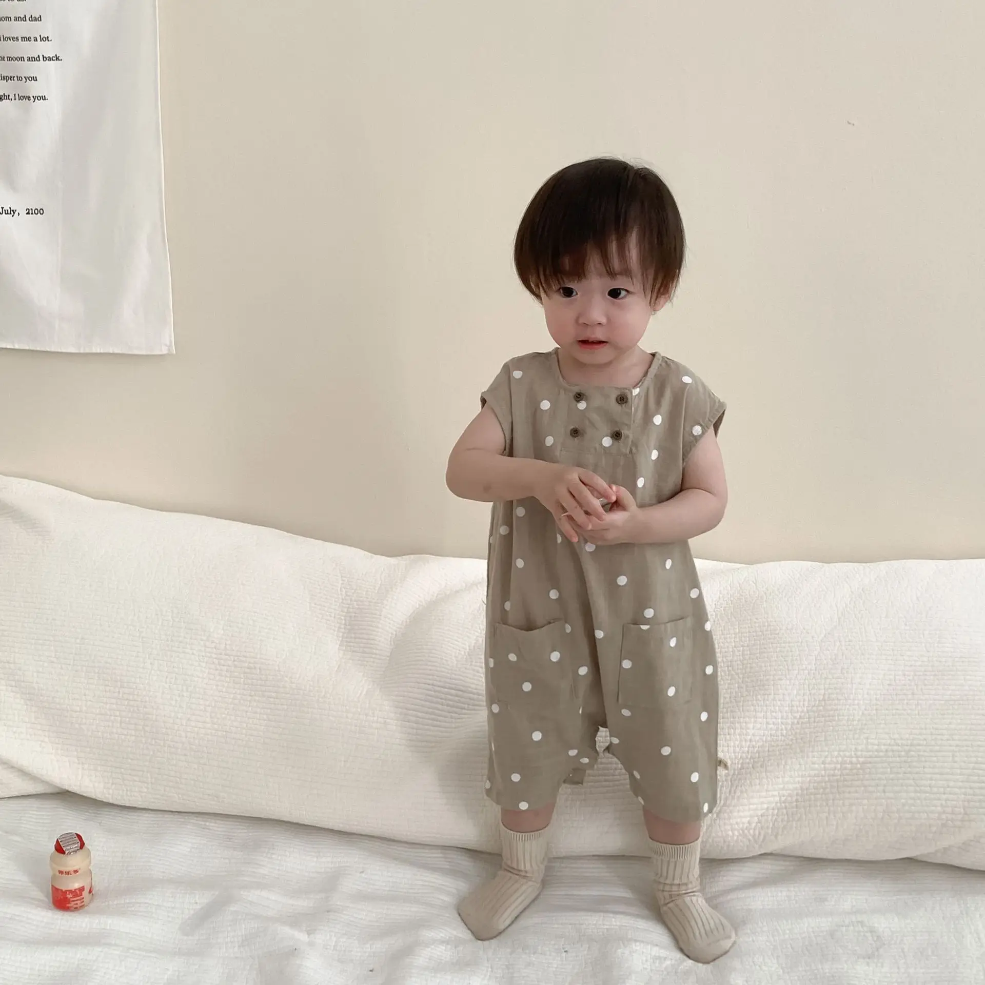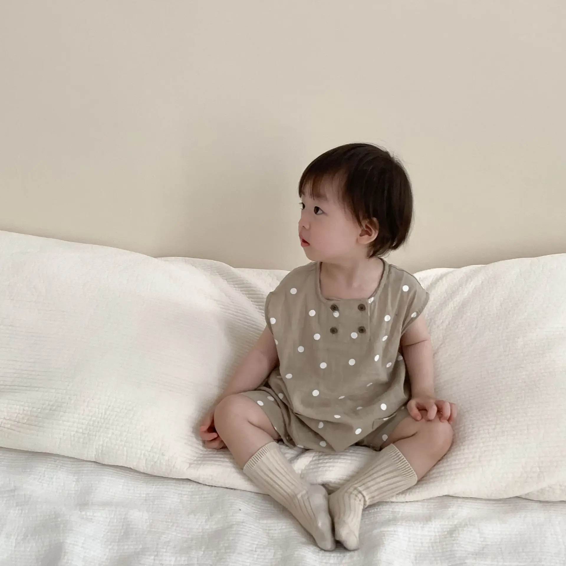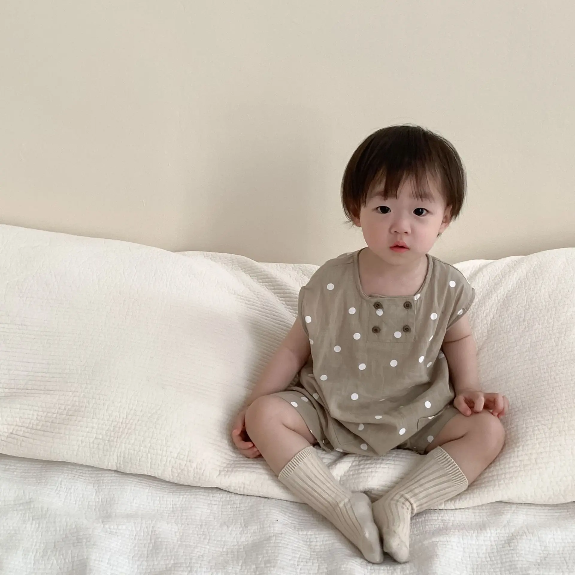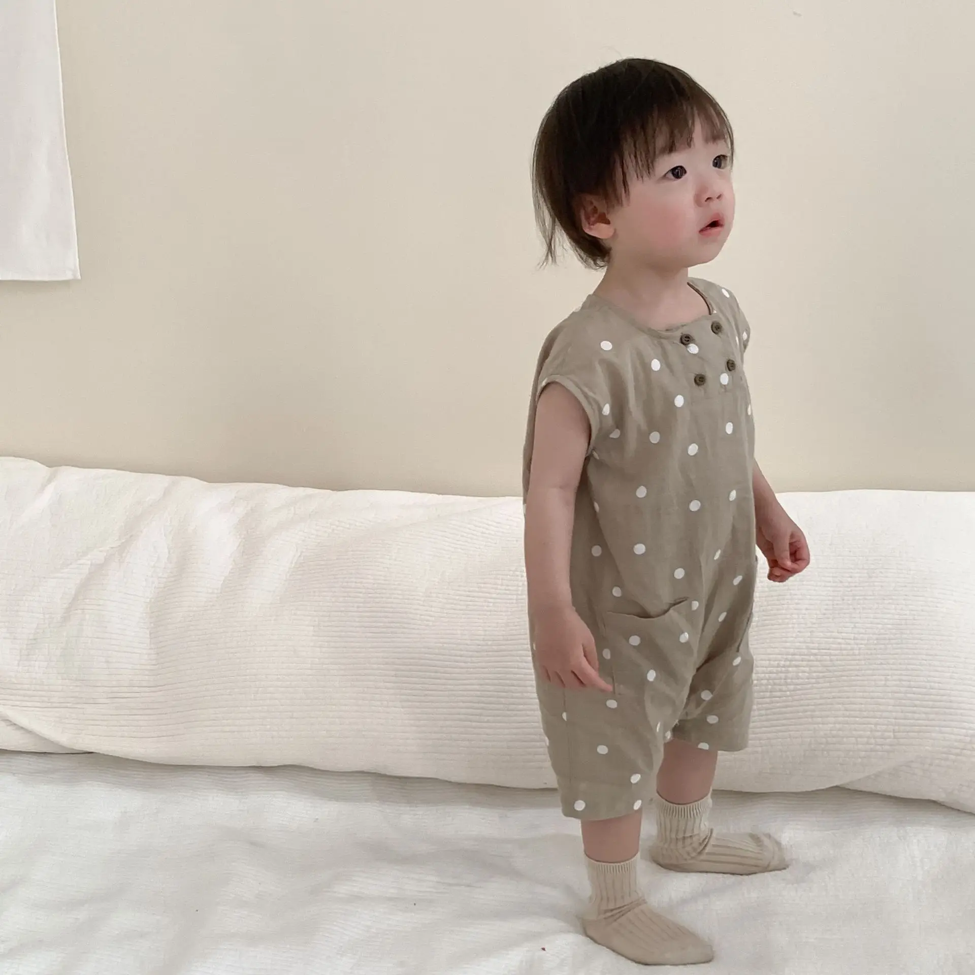 夏のお出かけに最適なベビーロンパースが登場しました。涼しげなショートスリーブと快適な水玉ドットプリントが特徴です。ベビーのデリケートな肌にやさしいコットン素材で作られており、快適な着心地を提供します。アプリコットとカーキの2色展開で、お子様の個性を引き立てます。新しい夏のおしゃれを楽しむための1着です。