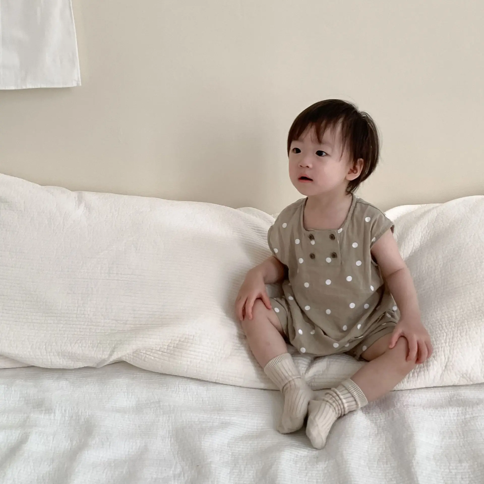ベビーロンパース ショートスリーブジャンプスーツ 水玉ドットプリント 2カラー【mh0004998】