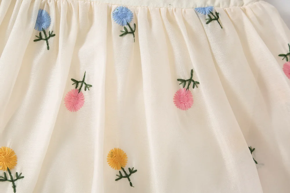 ベビーロンパース 半袖フレアスリーブスカートボディスーツ フラワー花柄刺繍 リボンヘアバンドセット【mh0005533】