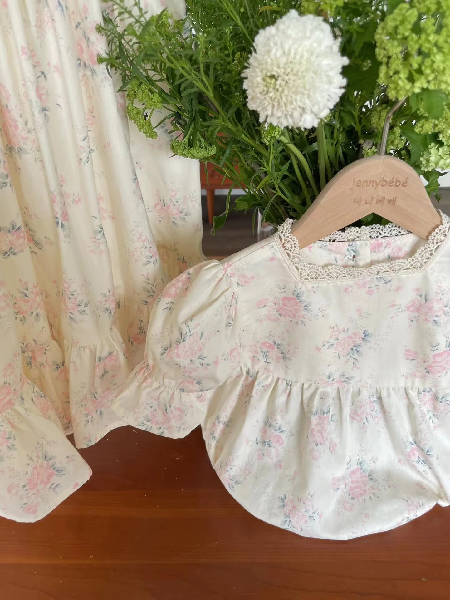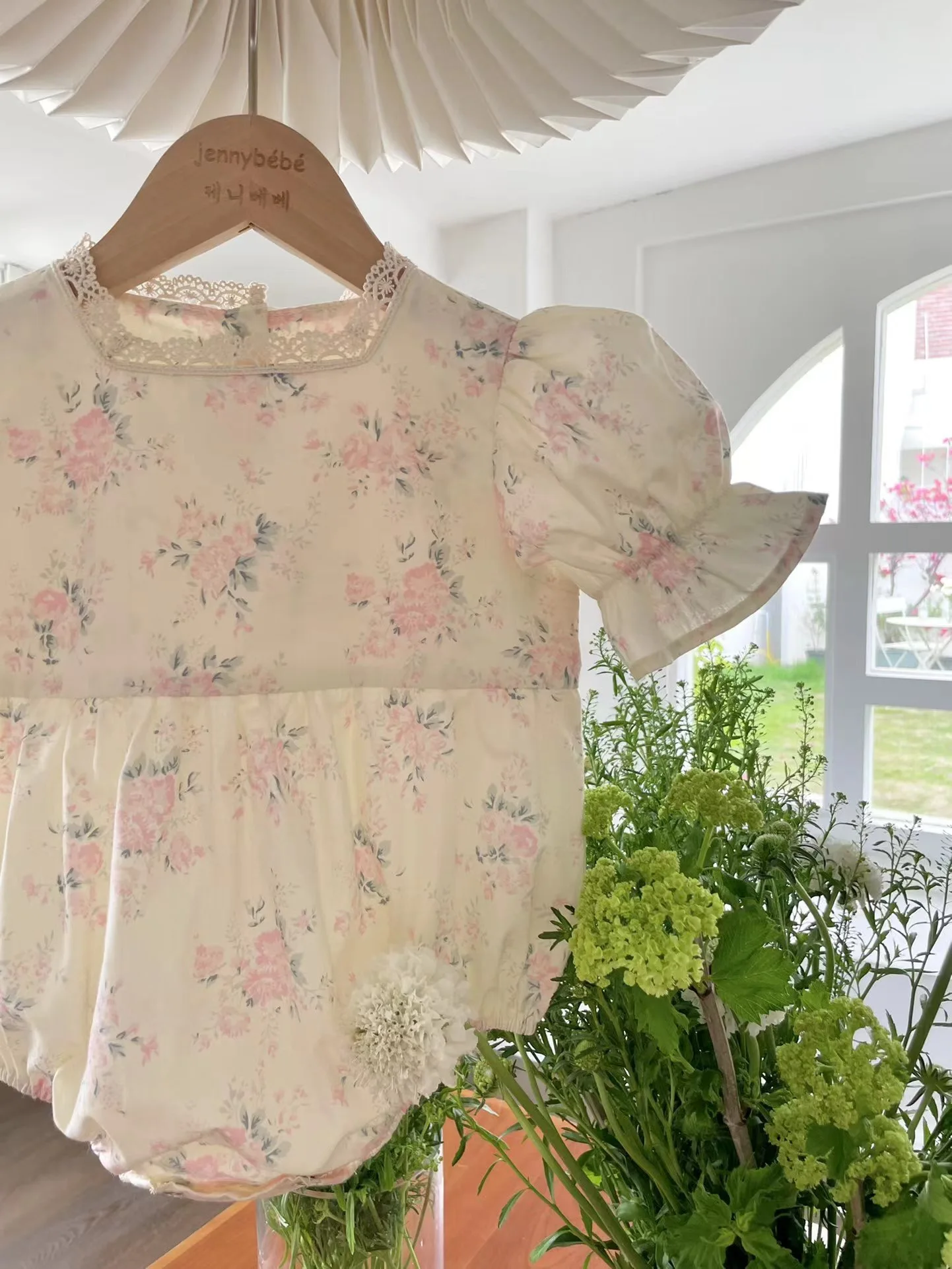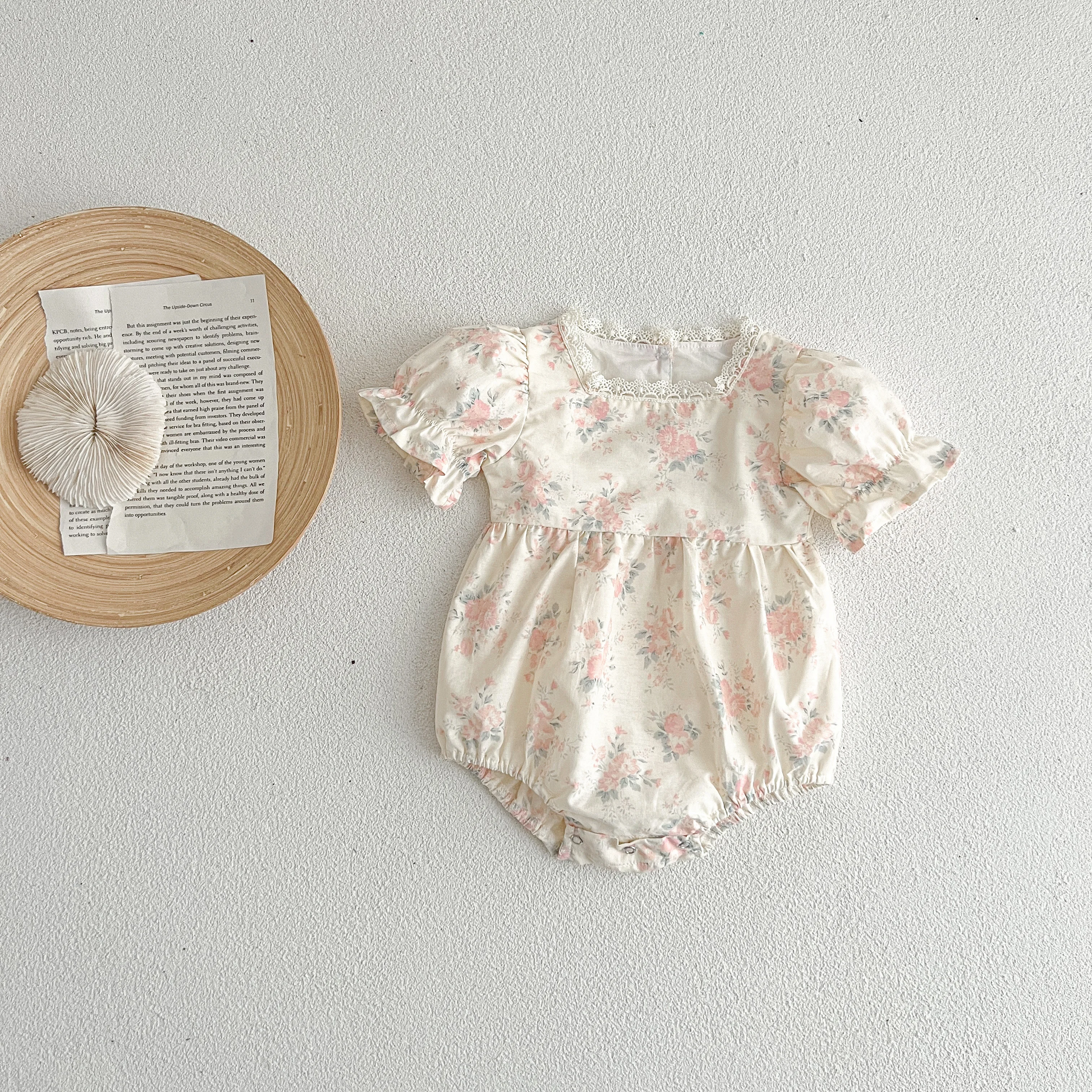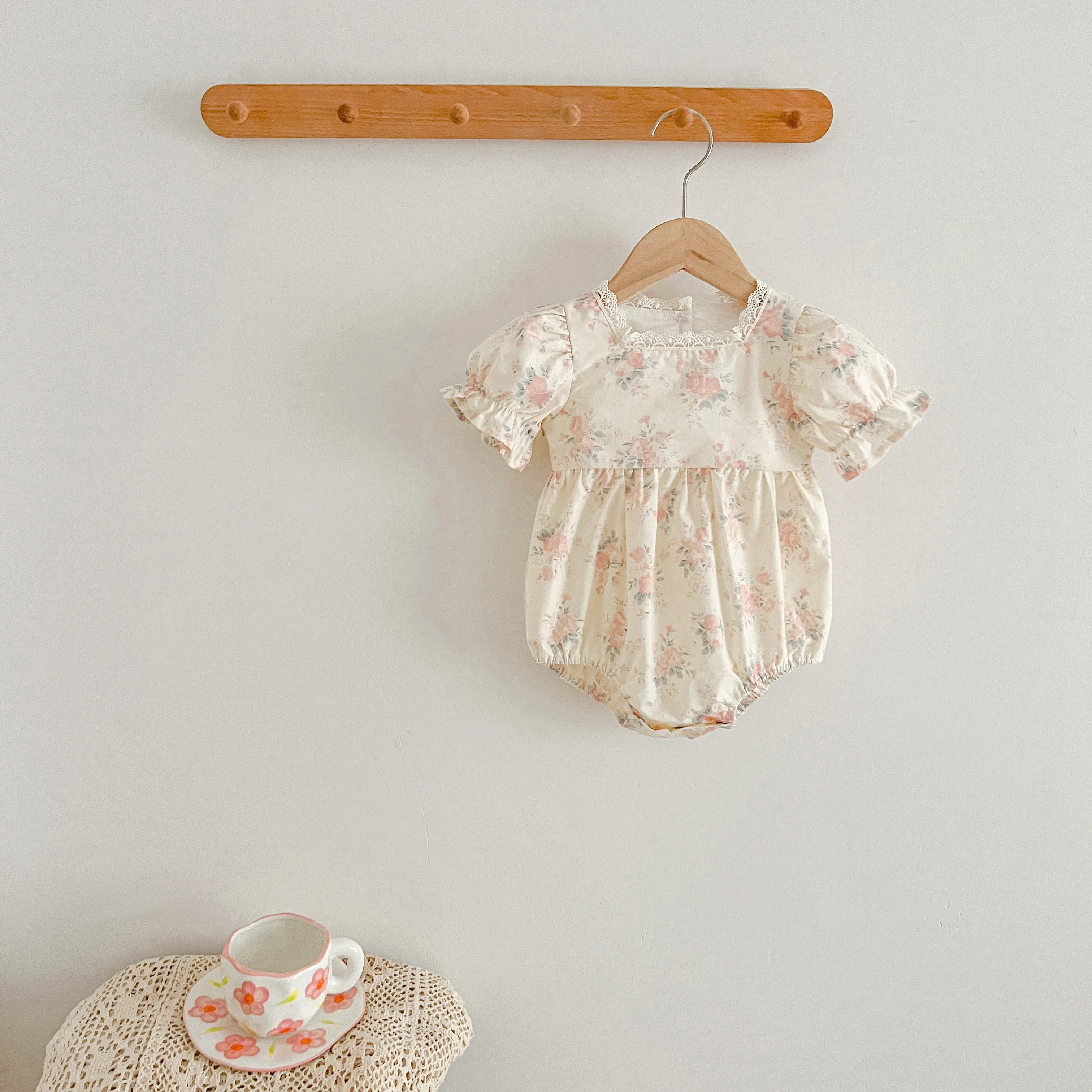 ベビーロンパース 半袖パフスリーブボディスーツ フラワー花柄プリント【mh0006062】