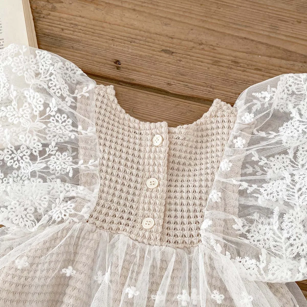 ベビーロンパース 半袖レースエプロンドッキングボディスーツ チェック【mh0006253】