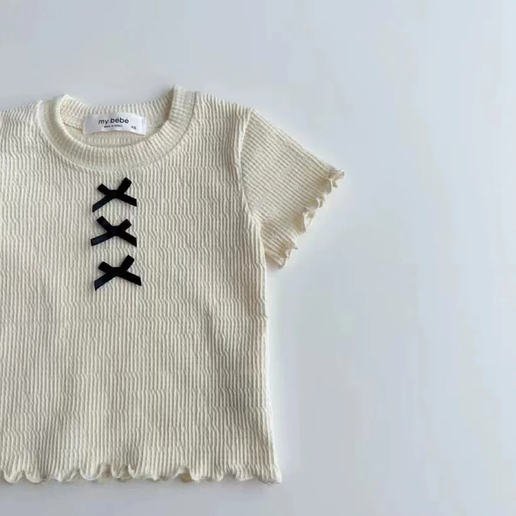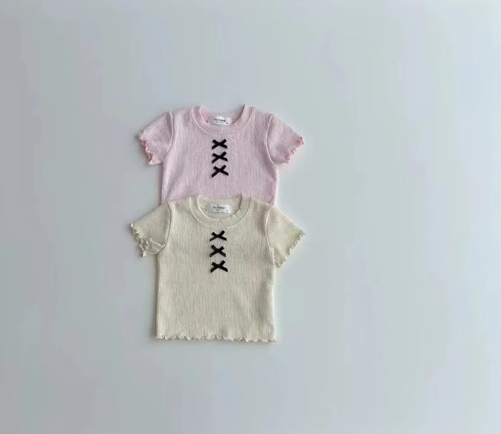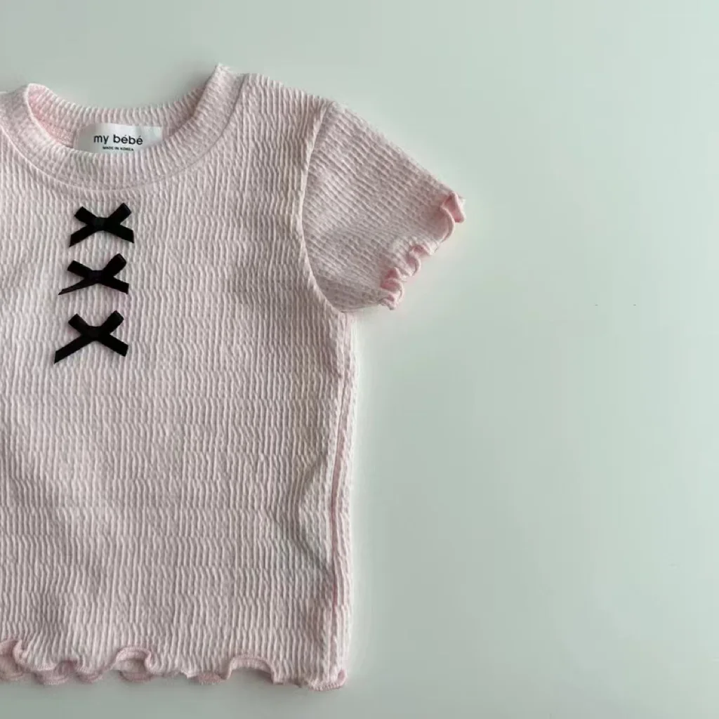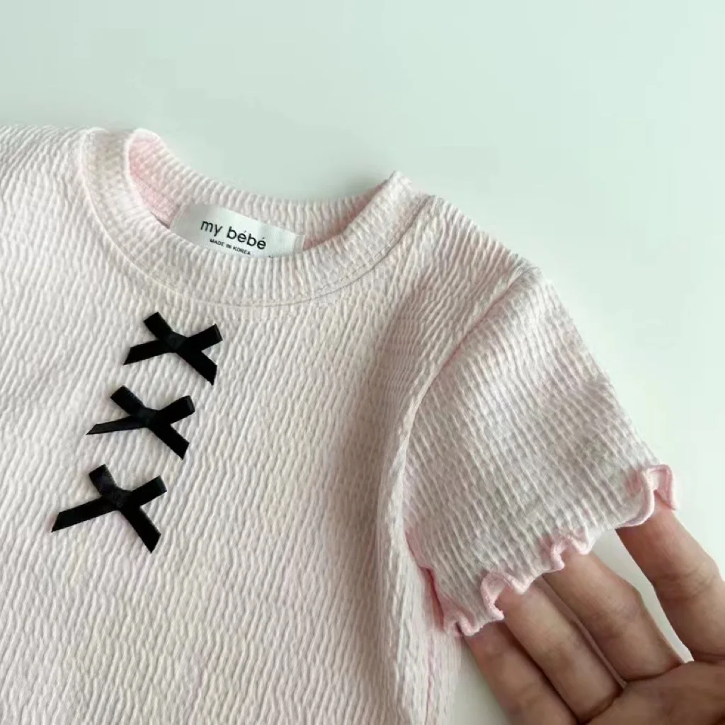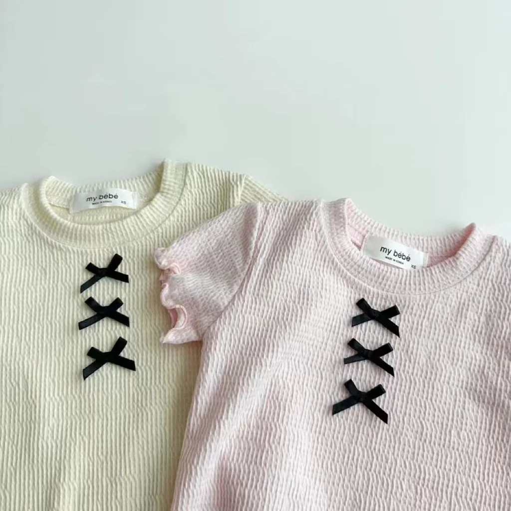 キッズトップス 半袖Tシャツ カットソー リボン 2カラー【mh0006308】