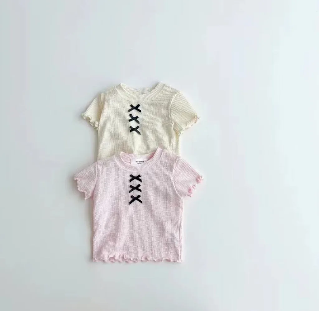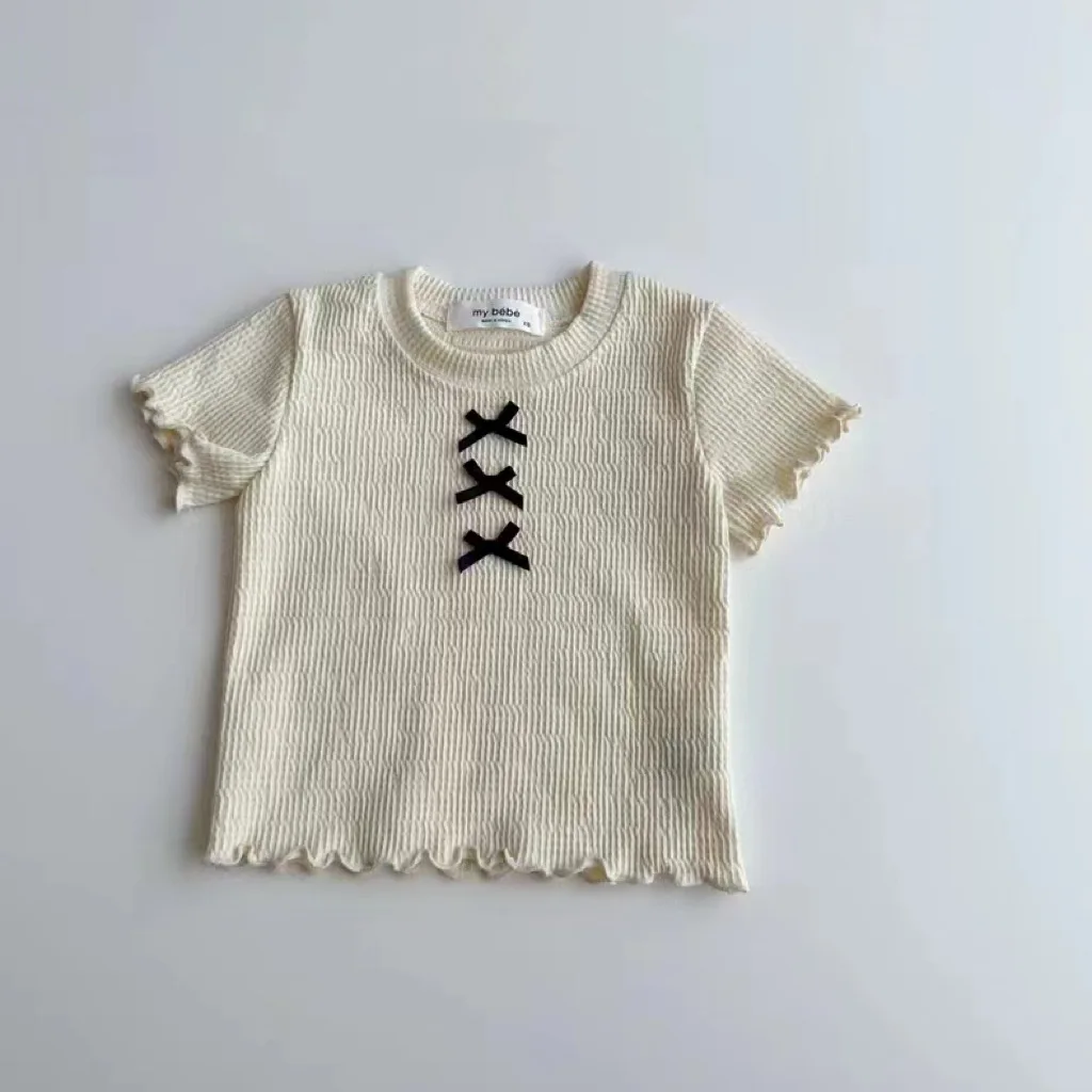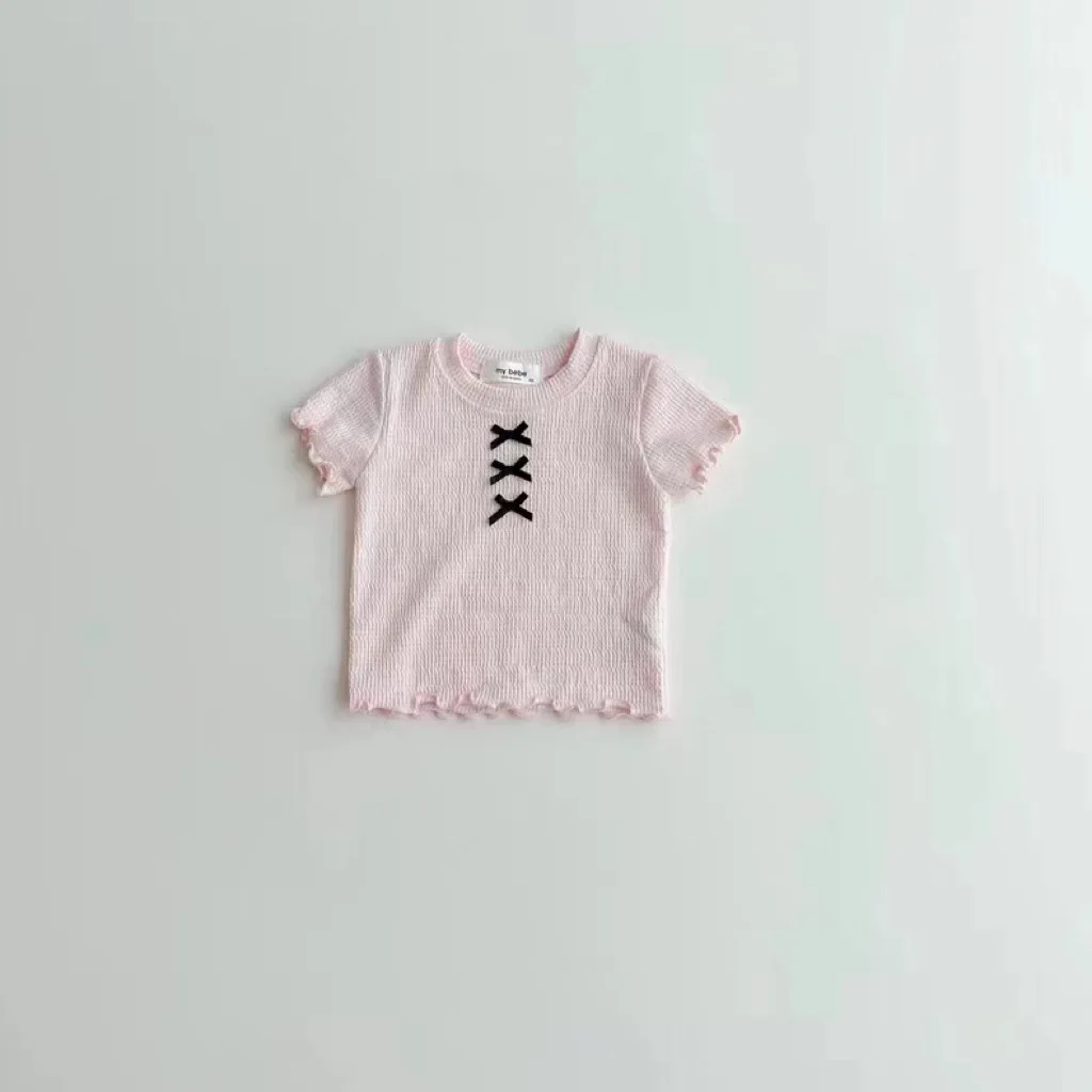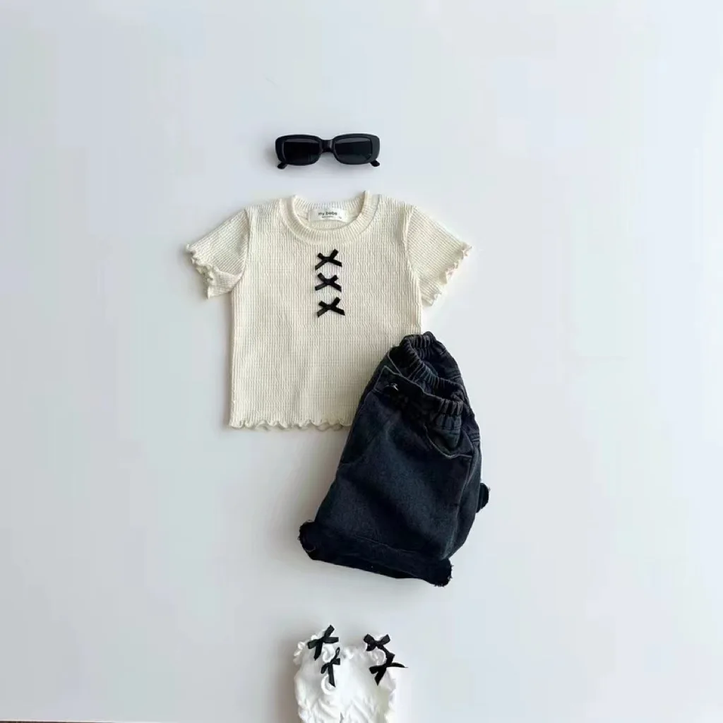 キッズトップス 半袖Tシャツ カットソー リボン 2カラー【mh0006308】