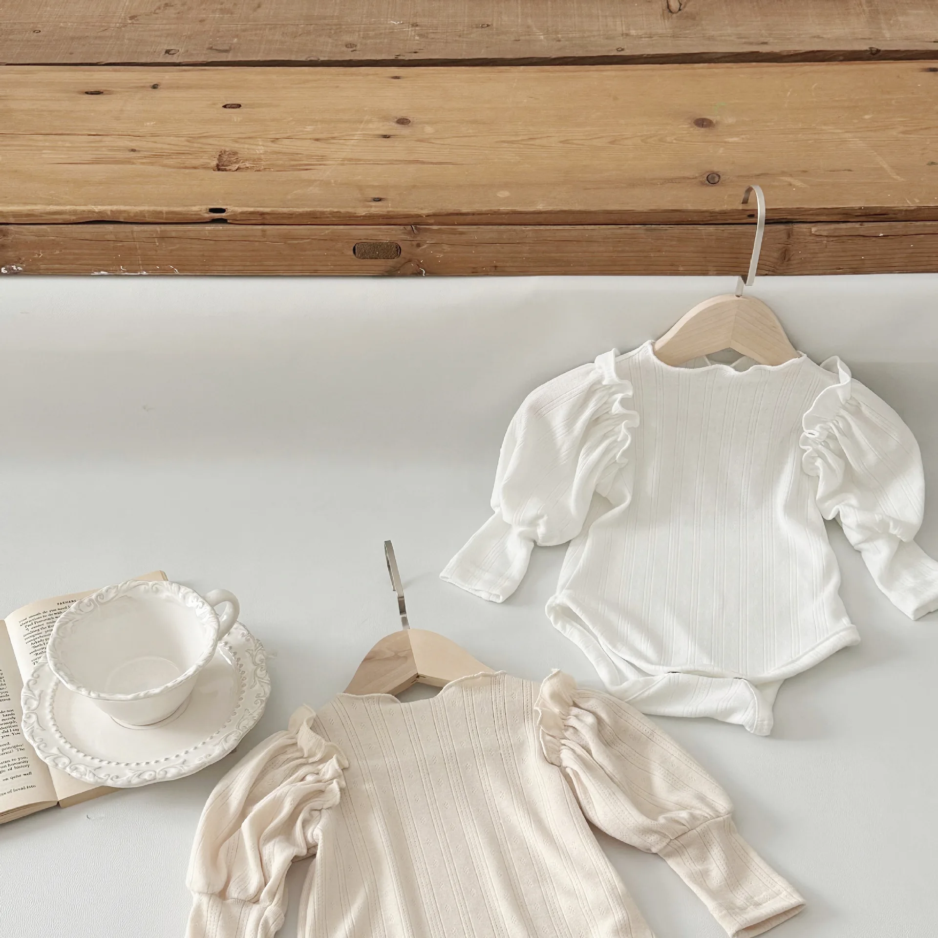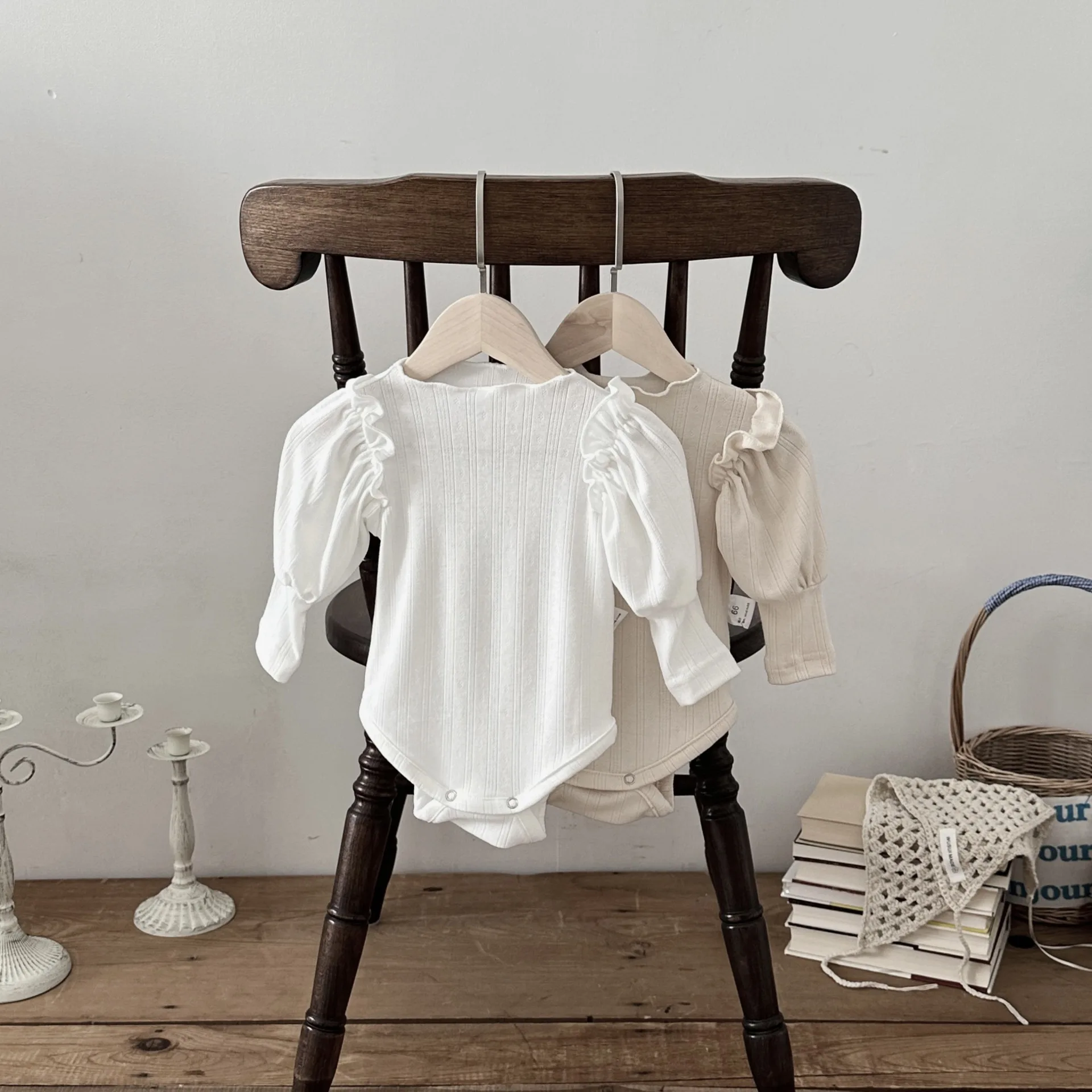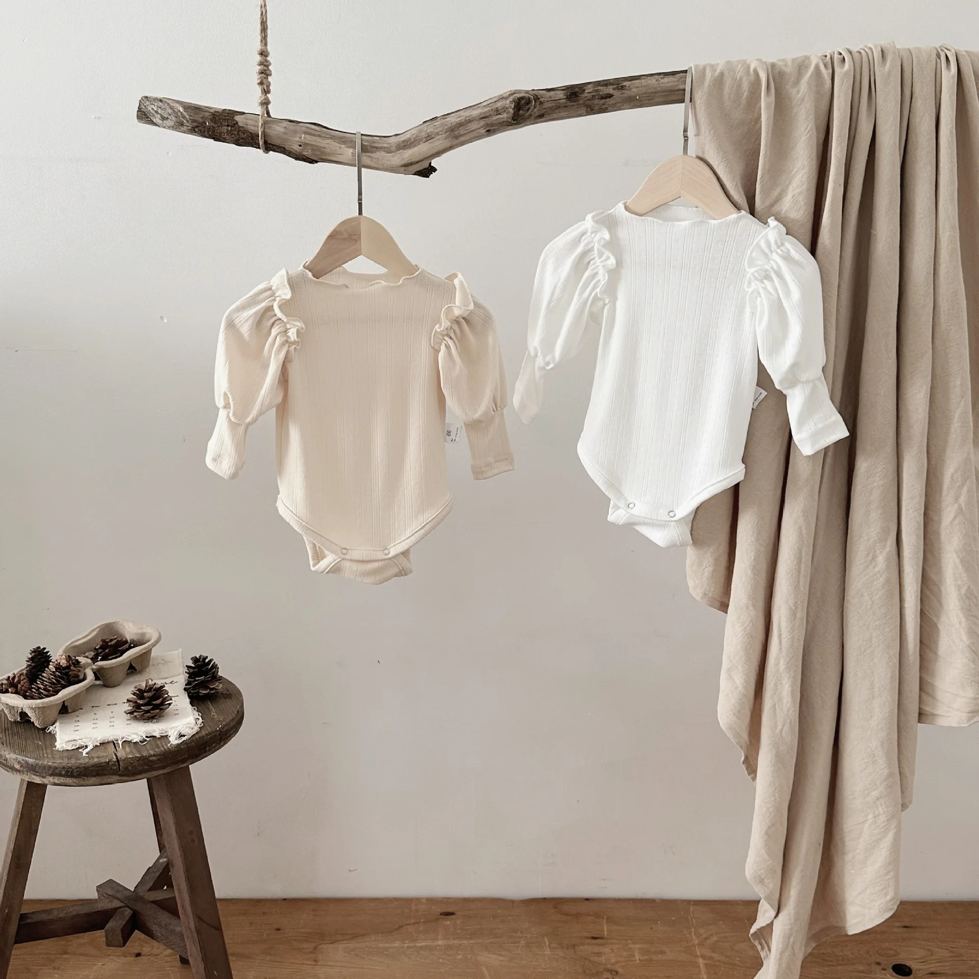 ベビーロンパース 長袖パフスリーブボディスーツ ショルダーフリル 2カラー【mh0006393】