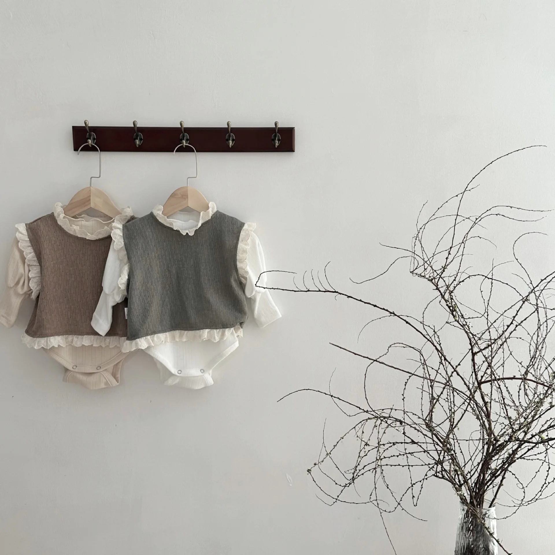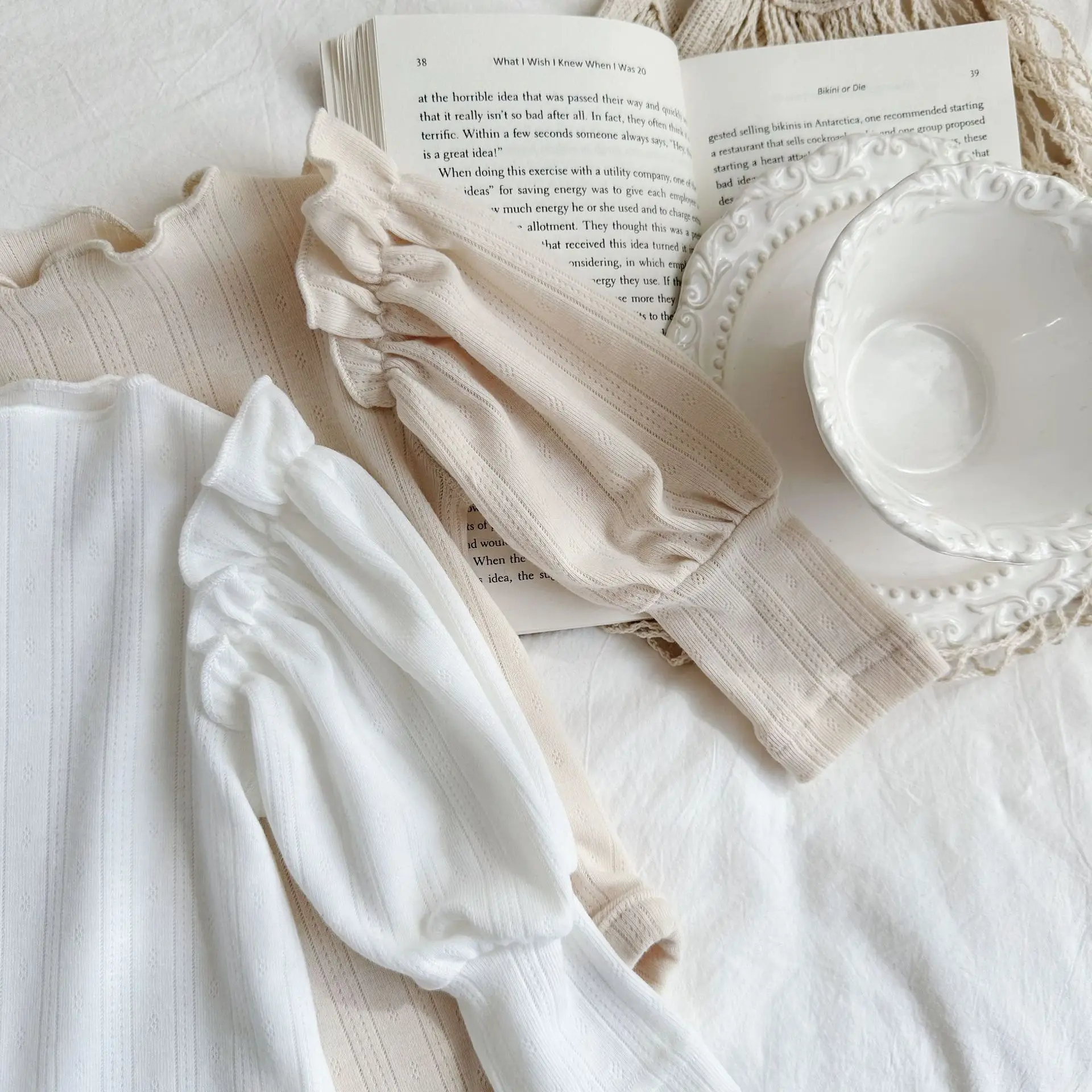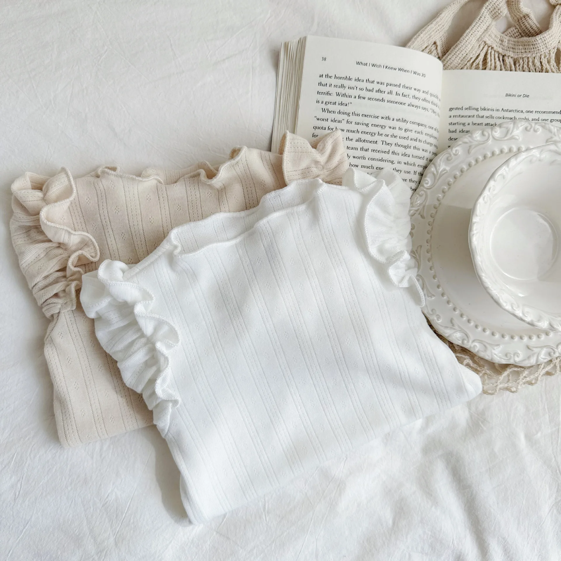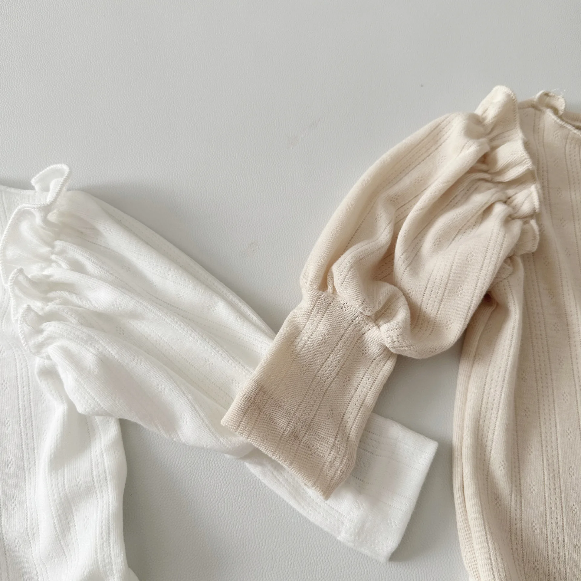 ベビーロンパース 長袖パフスリーブボディスーツ ショルダーフリル 2カラー【mh0006393】