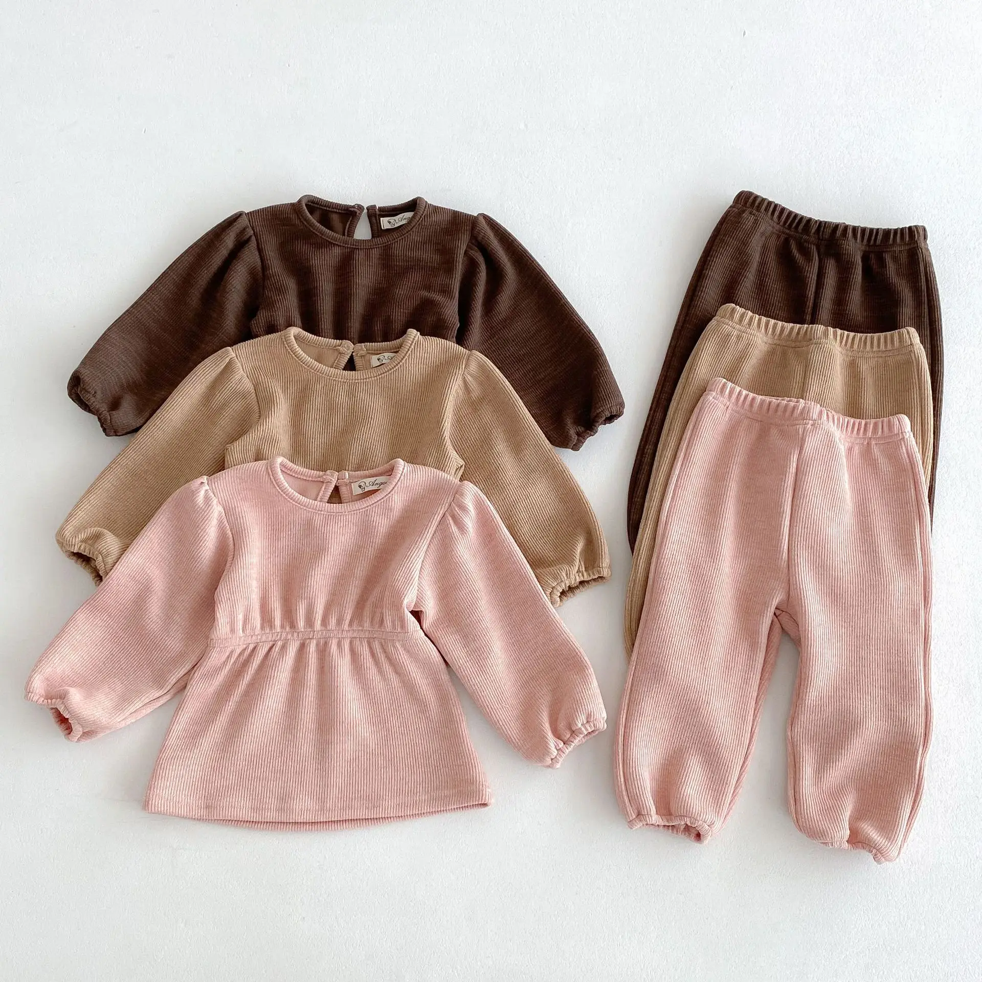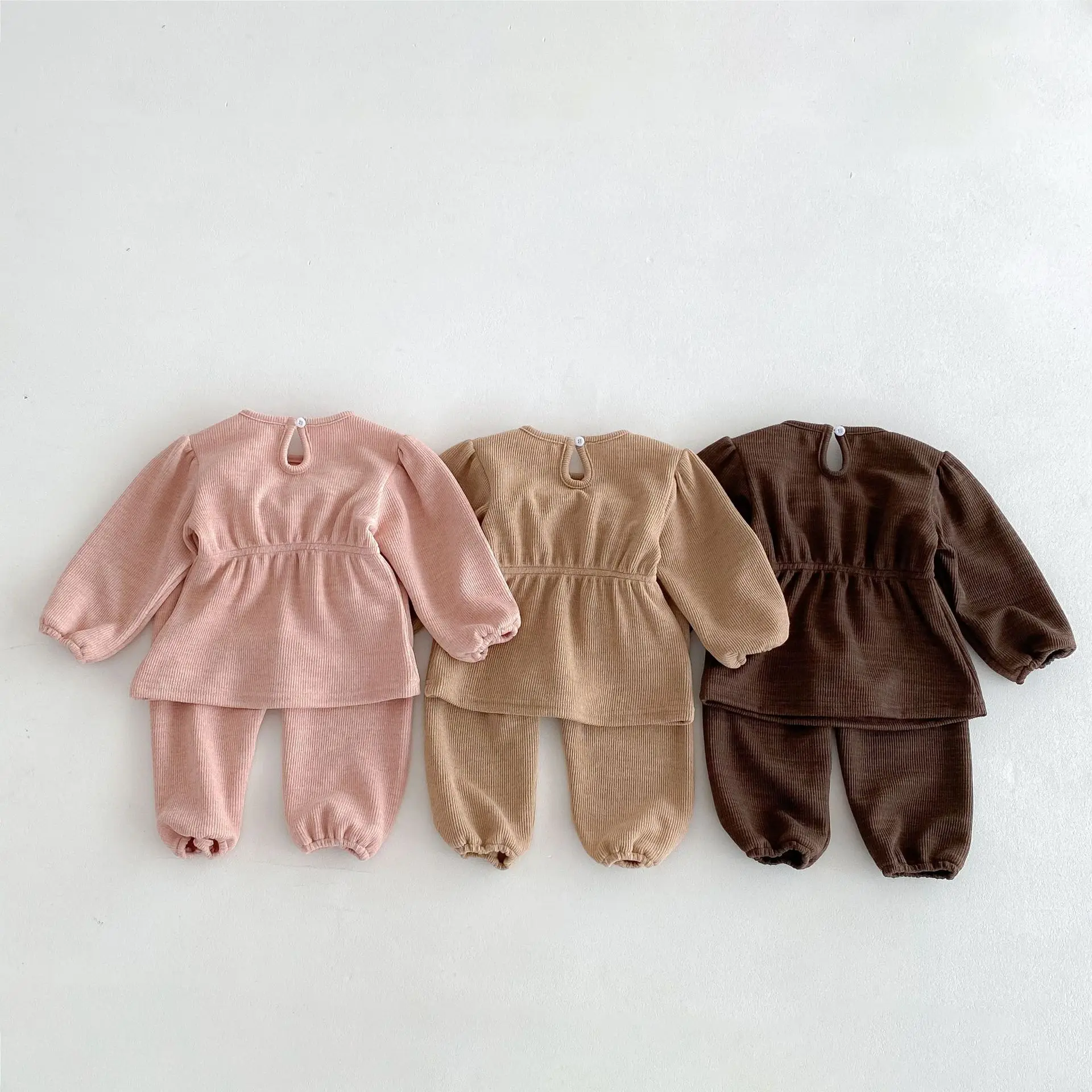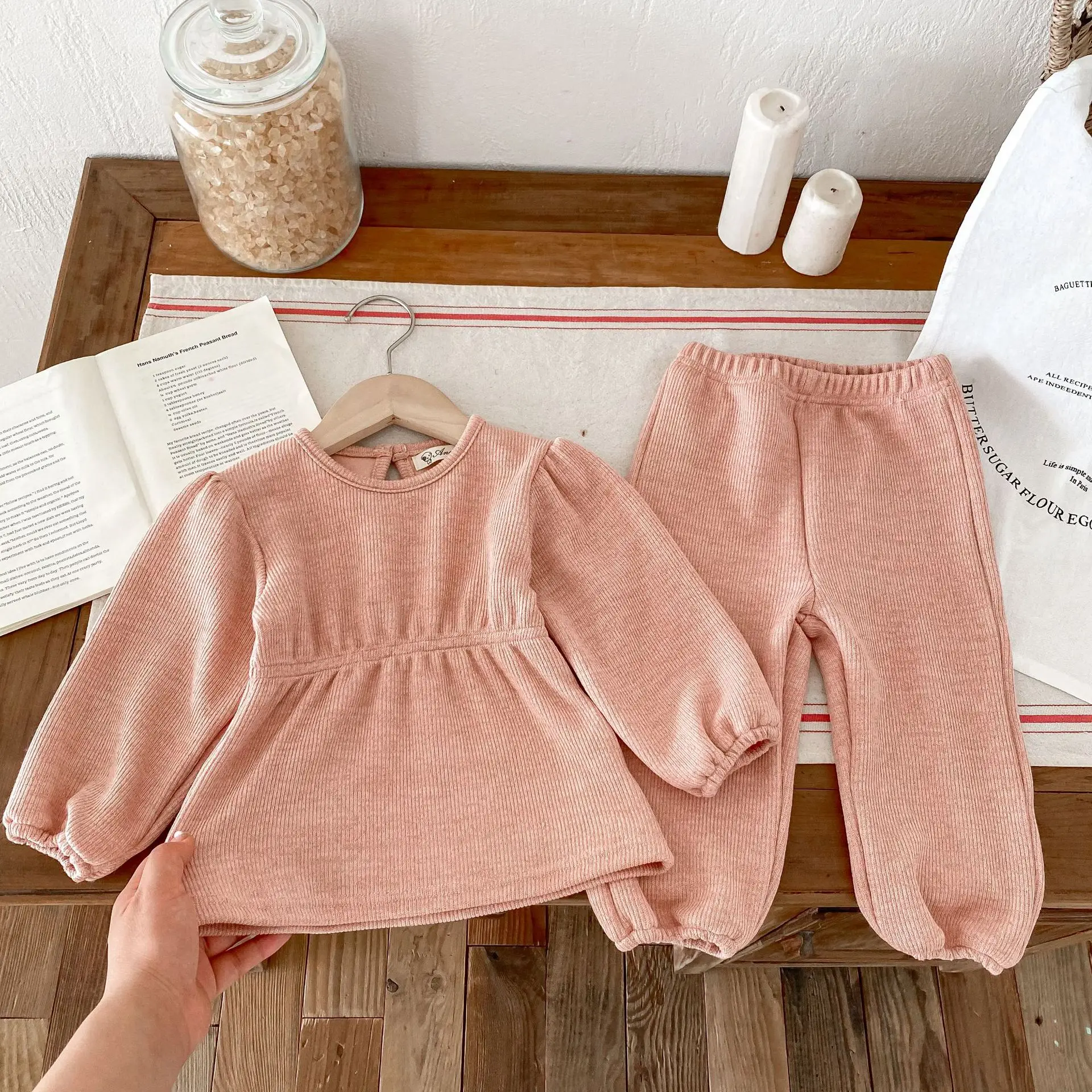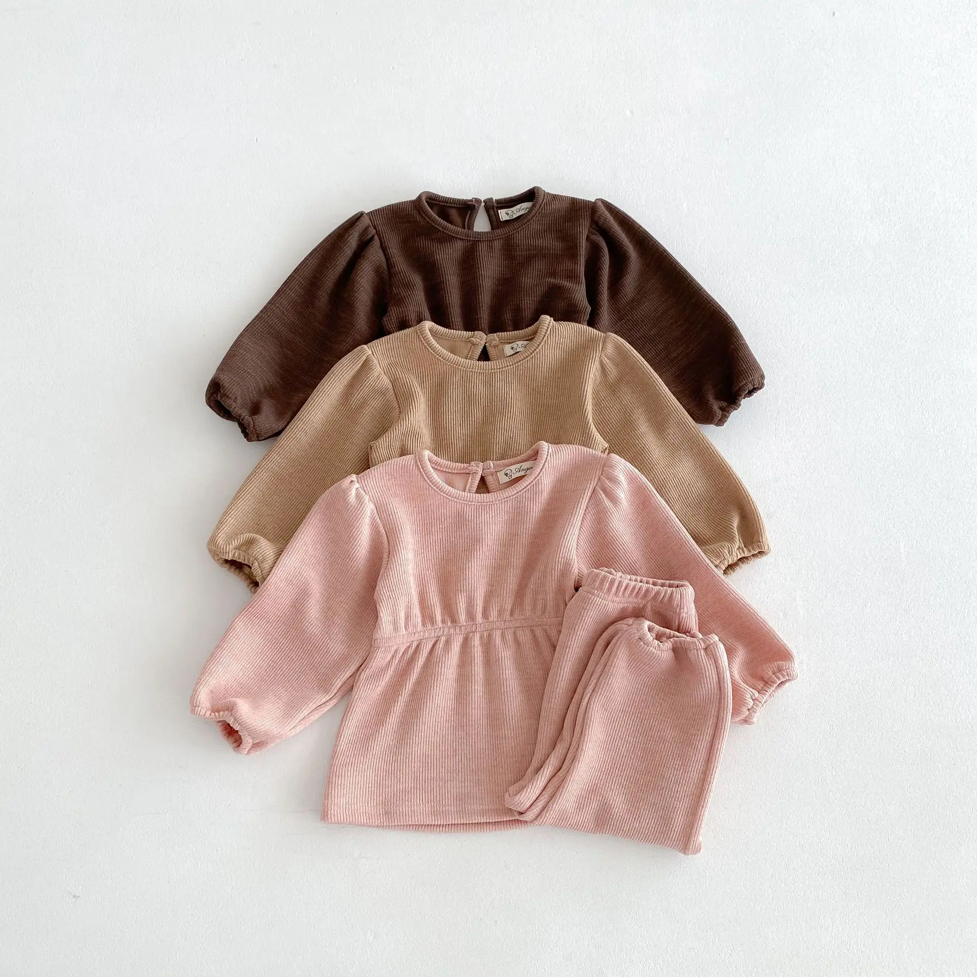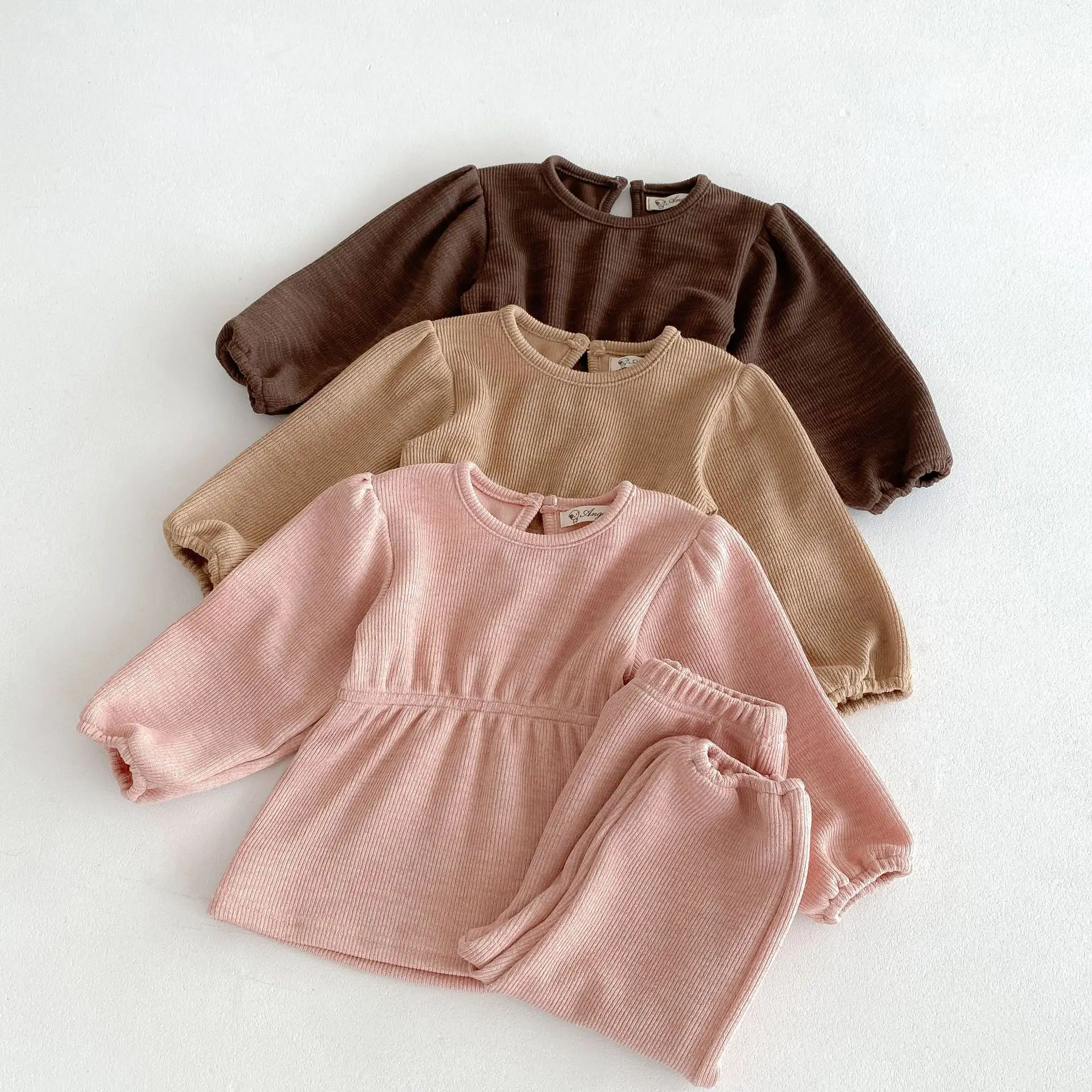 キッズセットアップ 2点セット 長袖パフスリーブチュニックTシャツ+ロングパンツ 3カラー【mh0006638】