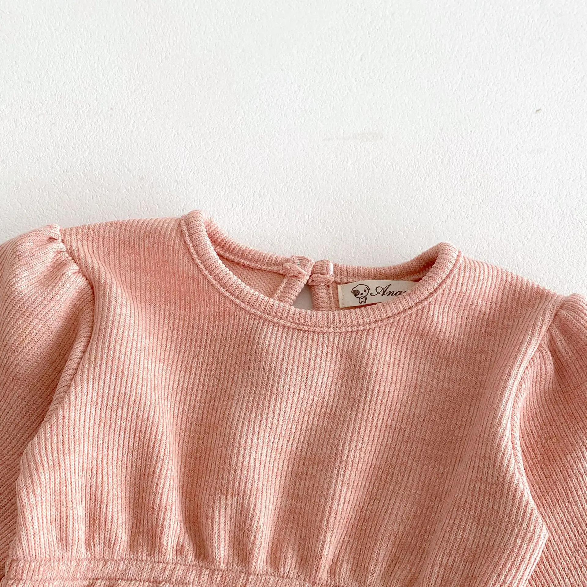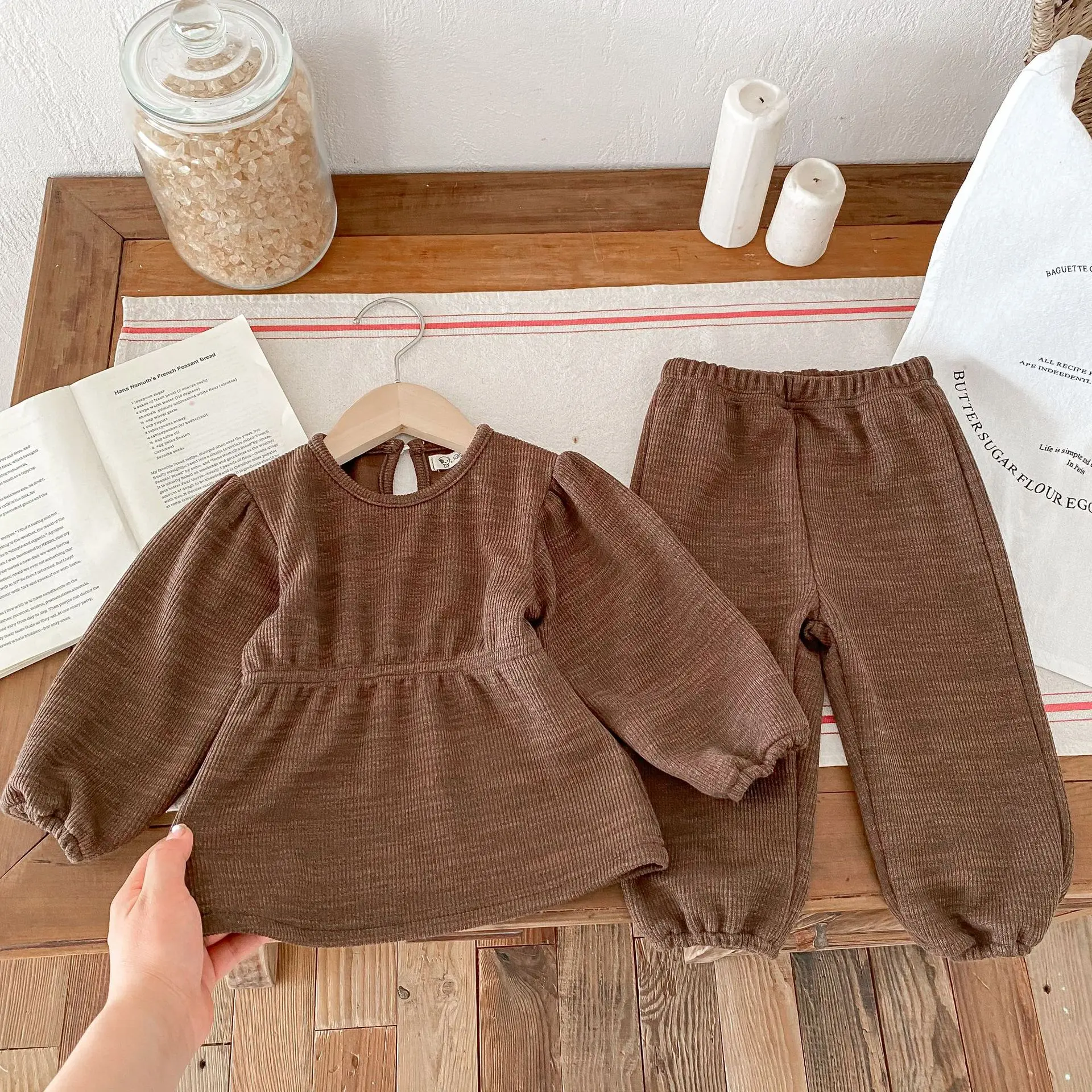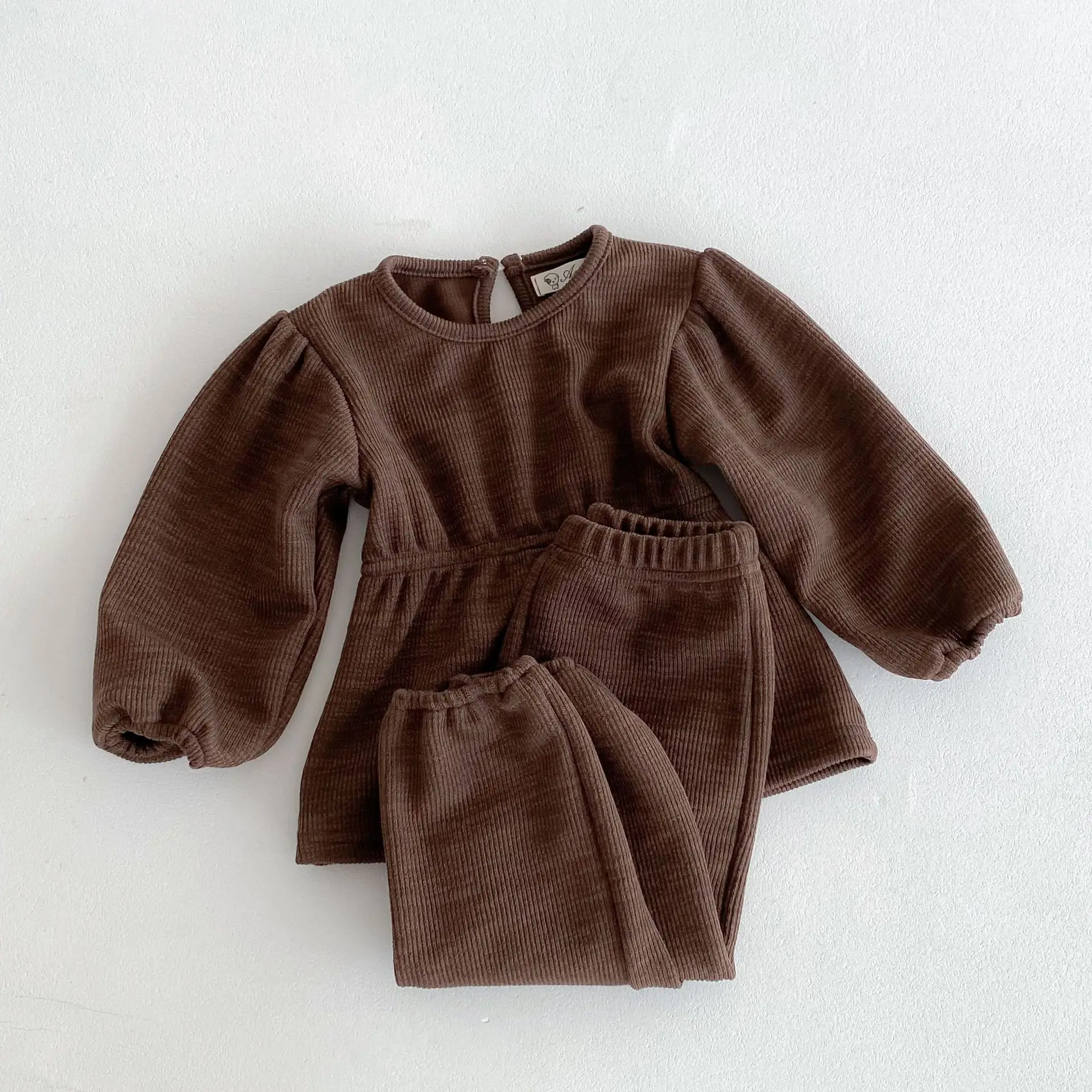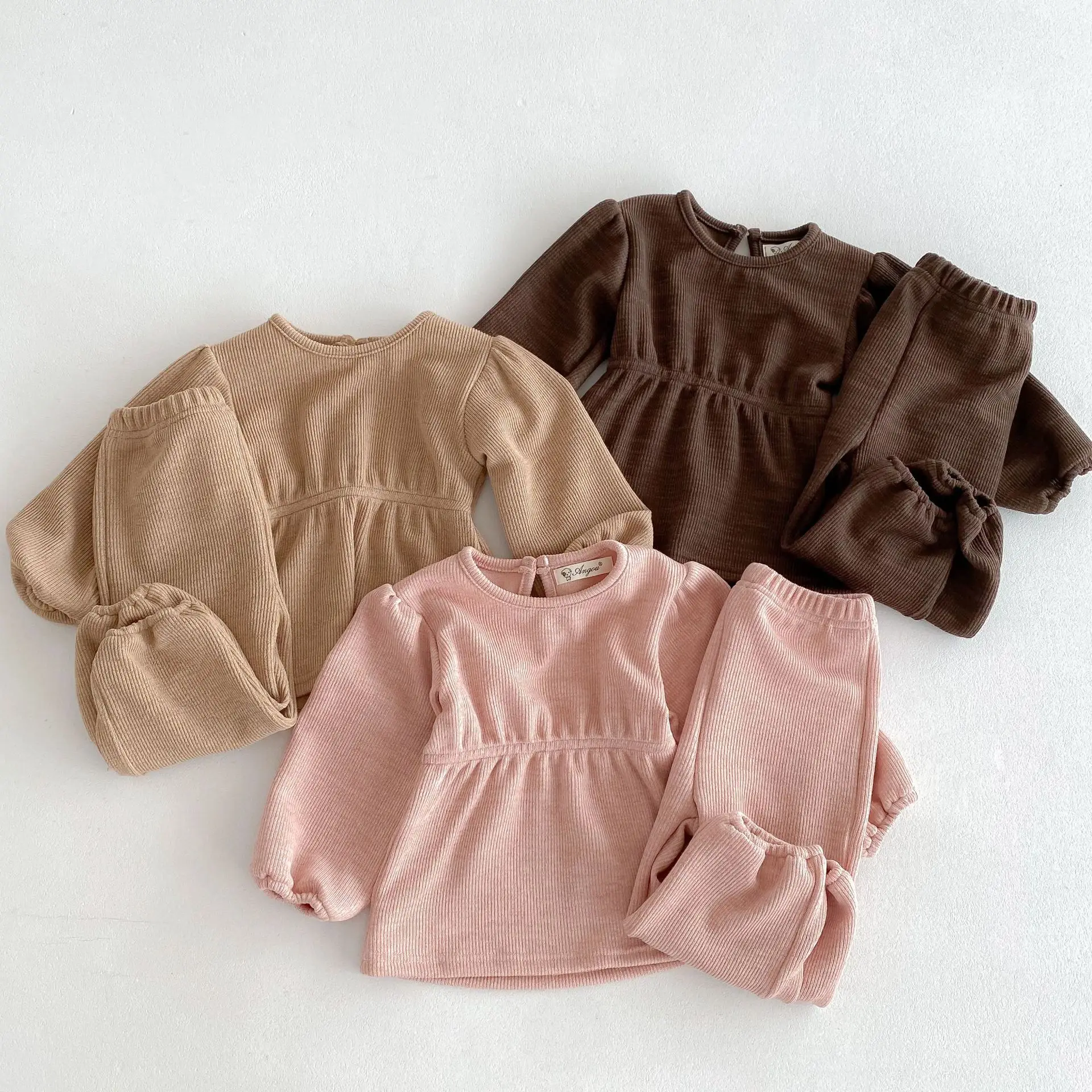 キッズセットアップ 2点セット 長袖パフスリーブチュニックTシャツ+ロングパンツ 3カラー【mh0006638】
