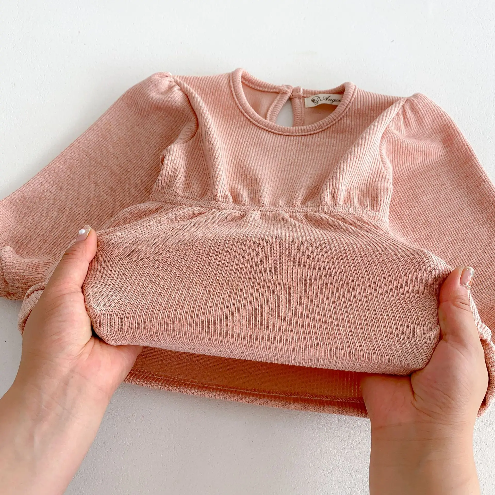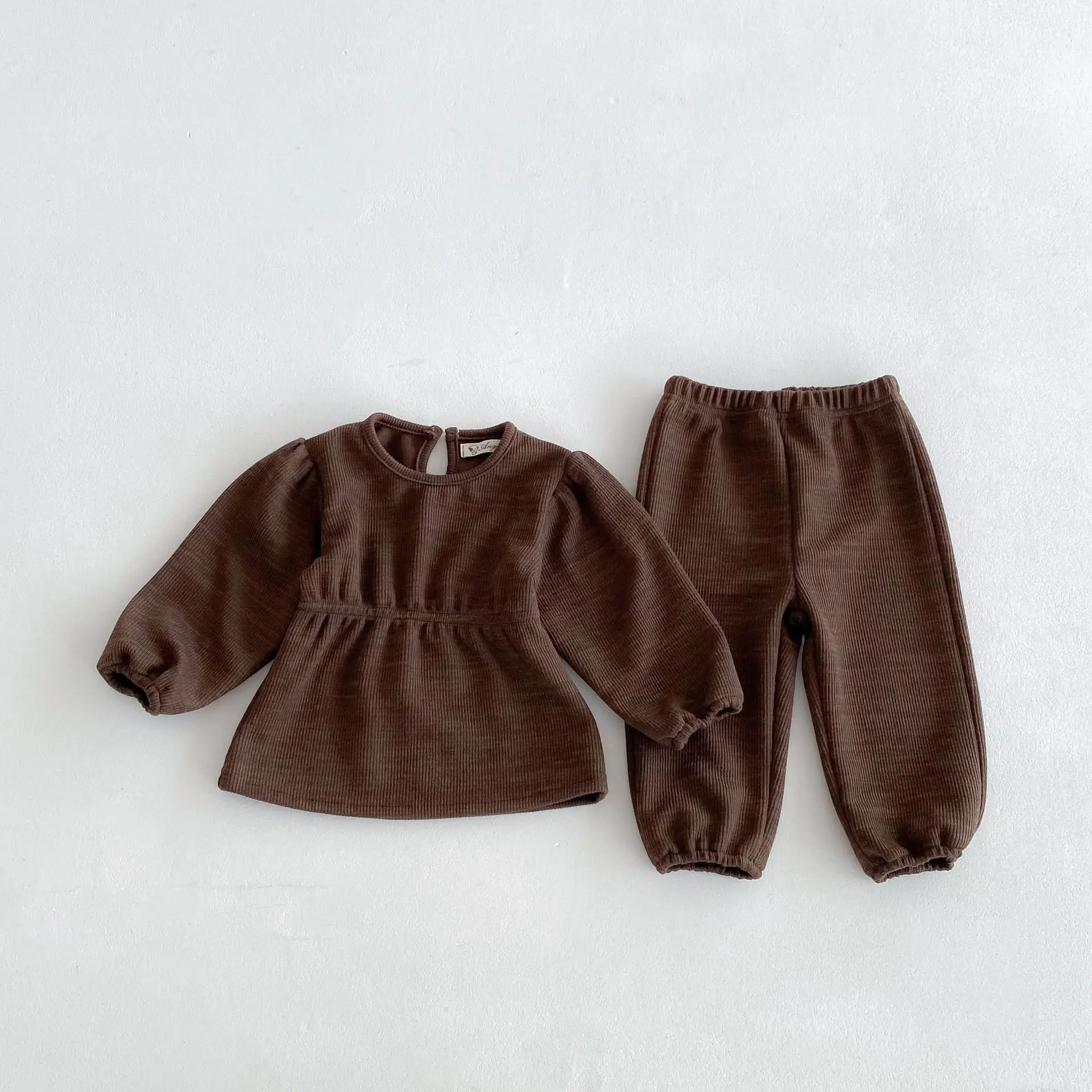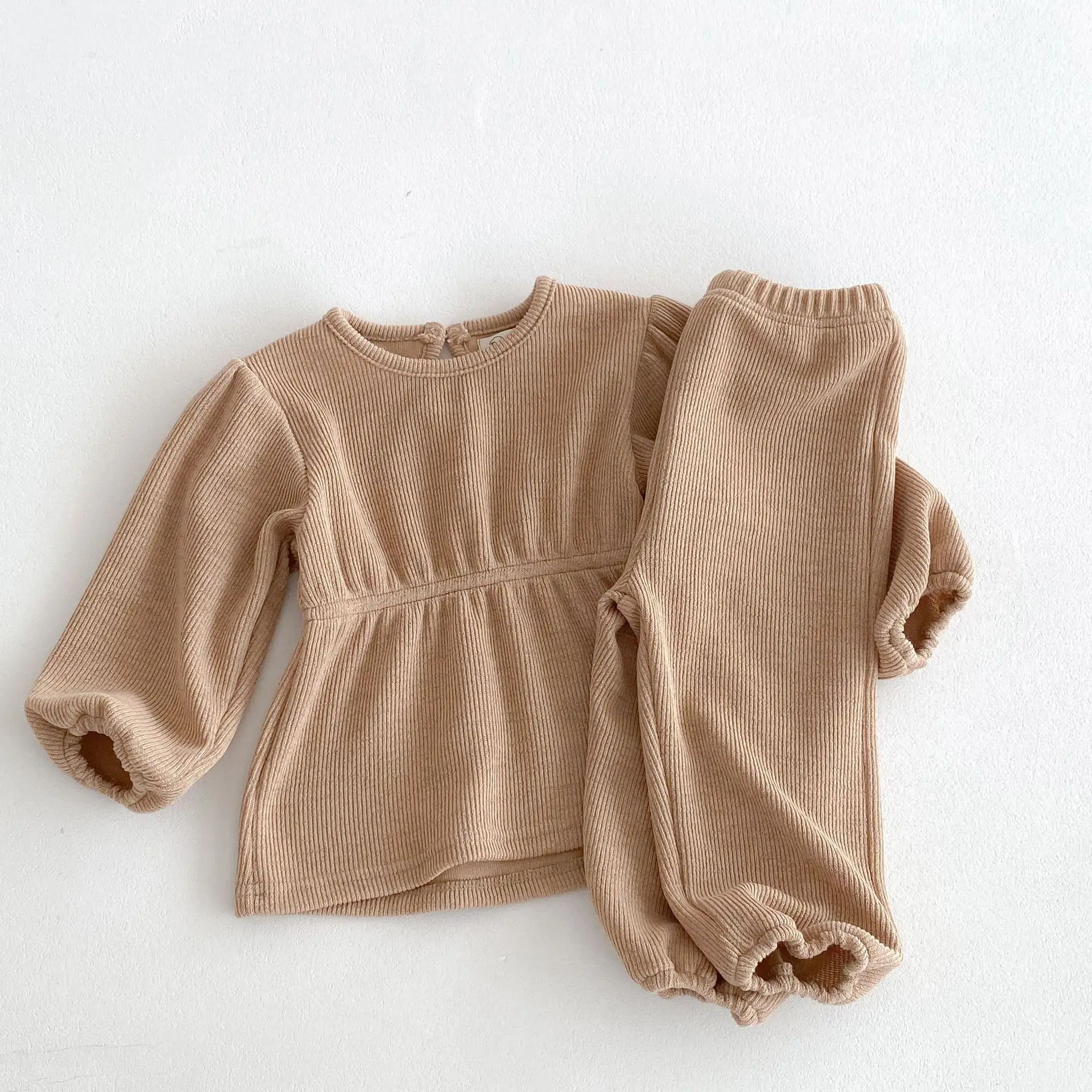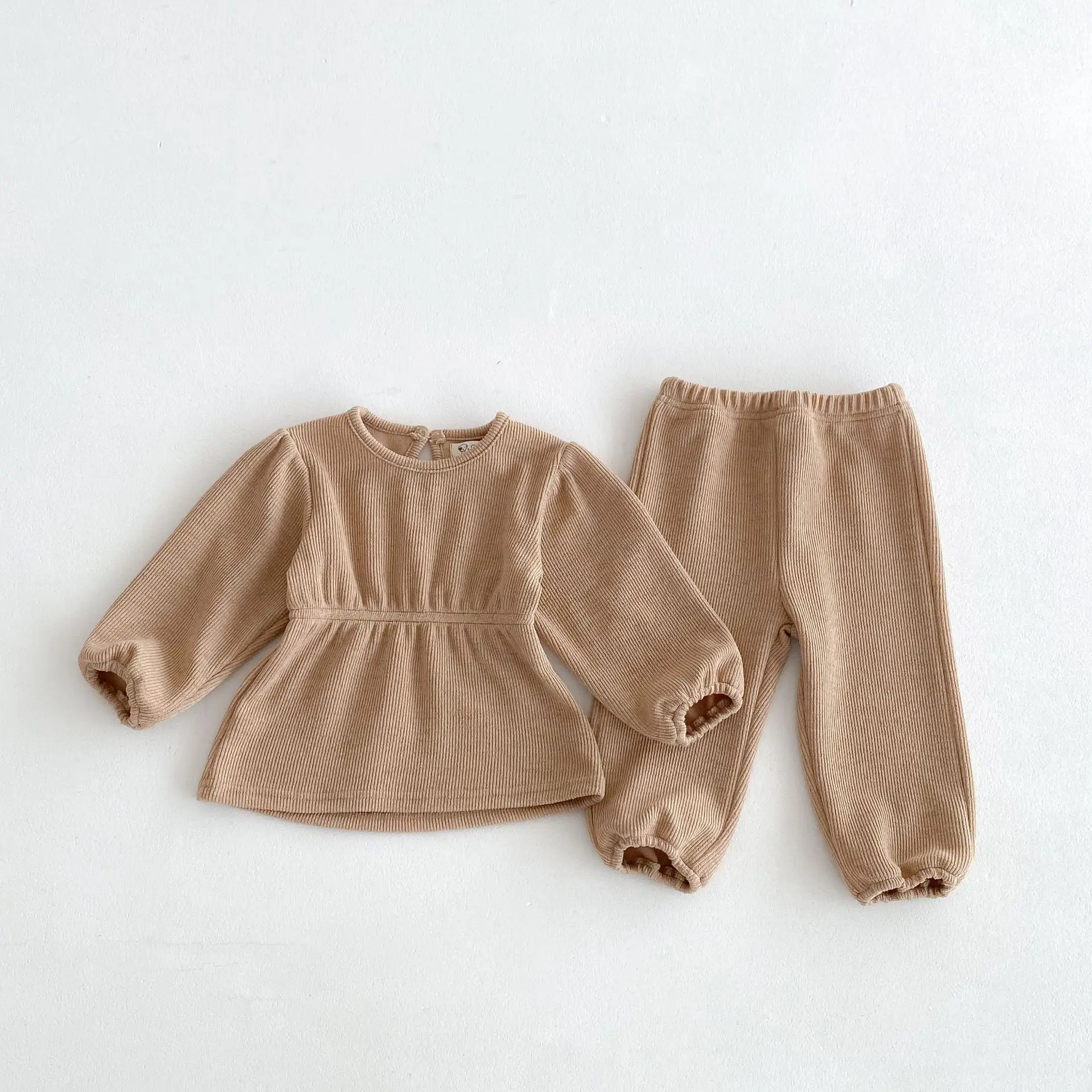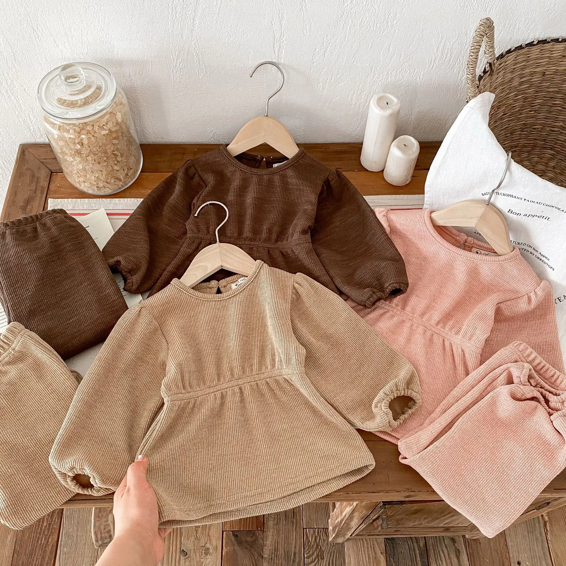 キッズセットアップ 2点セット 長袖パフスリーブチュニックTシャツ+ロングパンツ 3カラー【mh0006638】