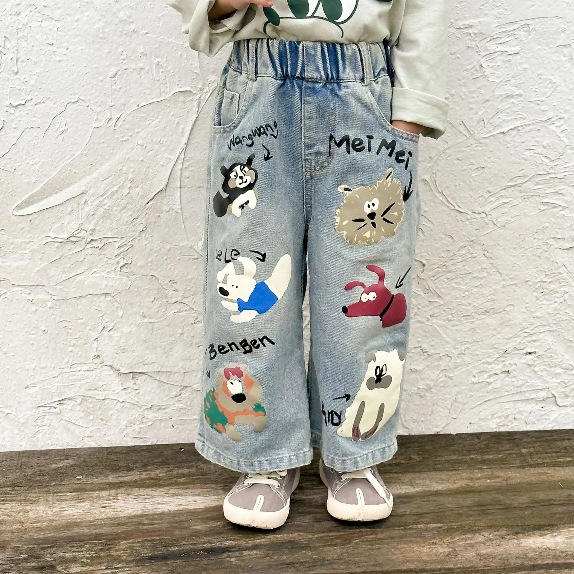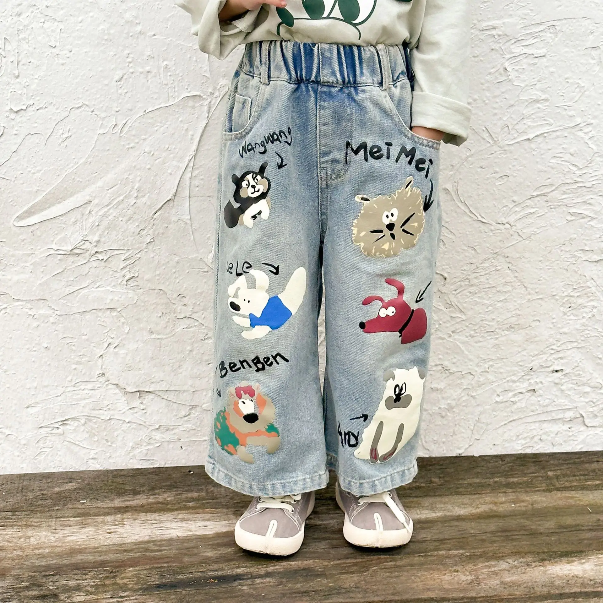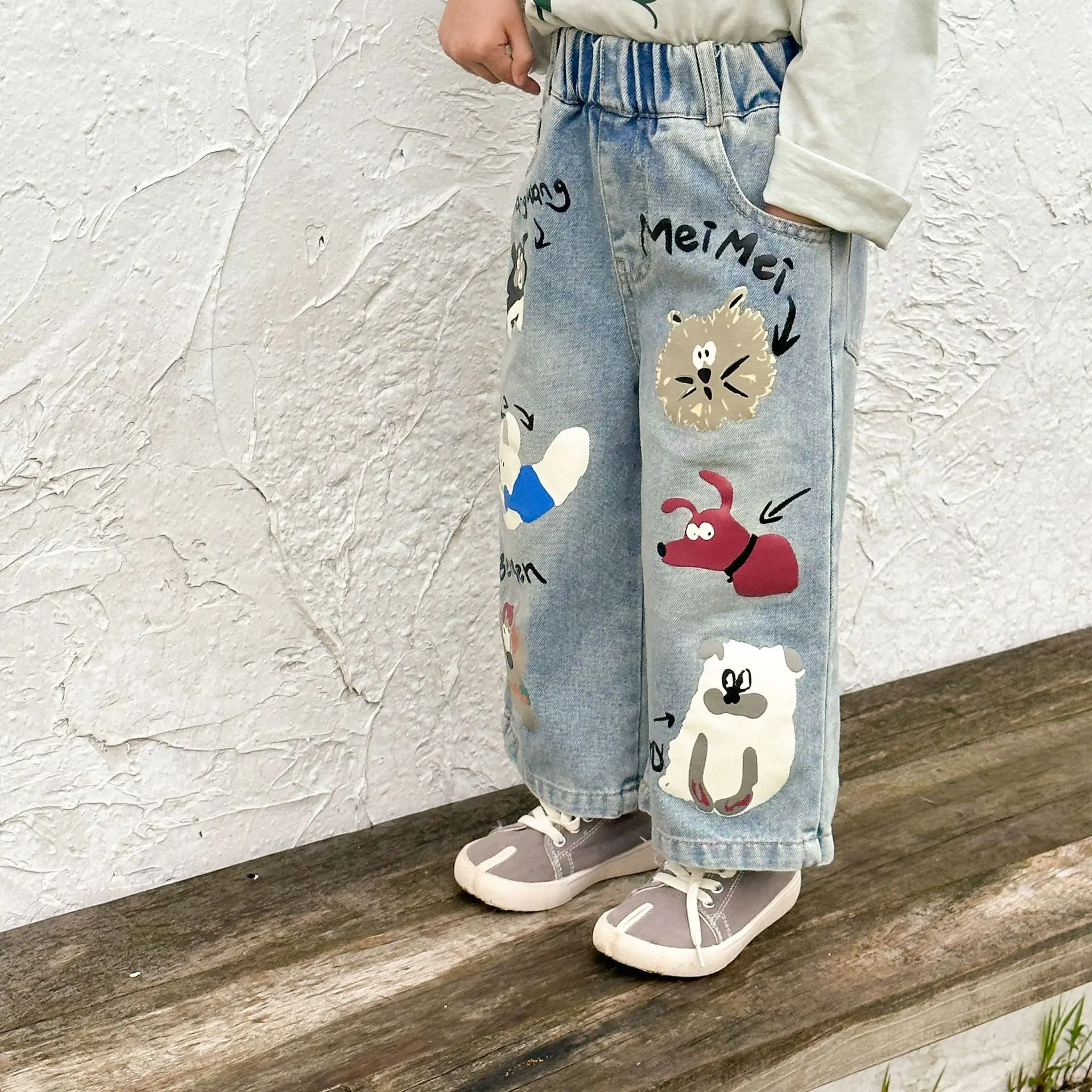 キッズパンツ アニマルプリントルーズストレートデニムパンツ ジーンズ【mh0006885】