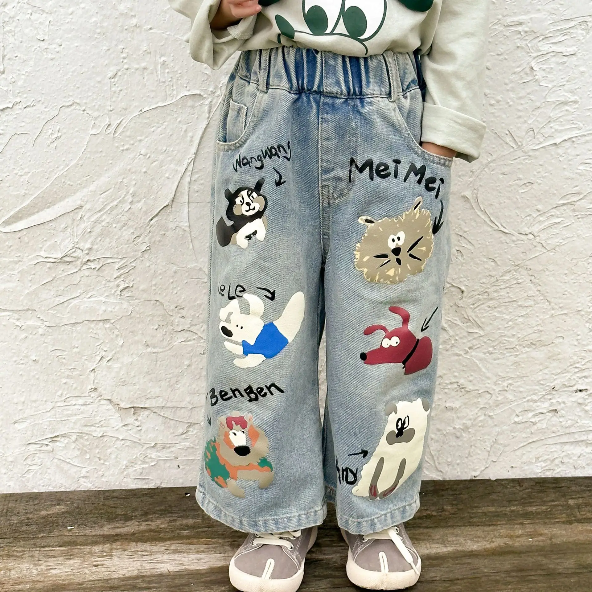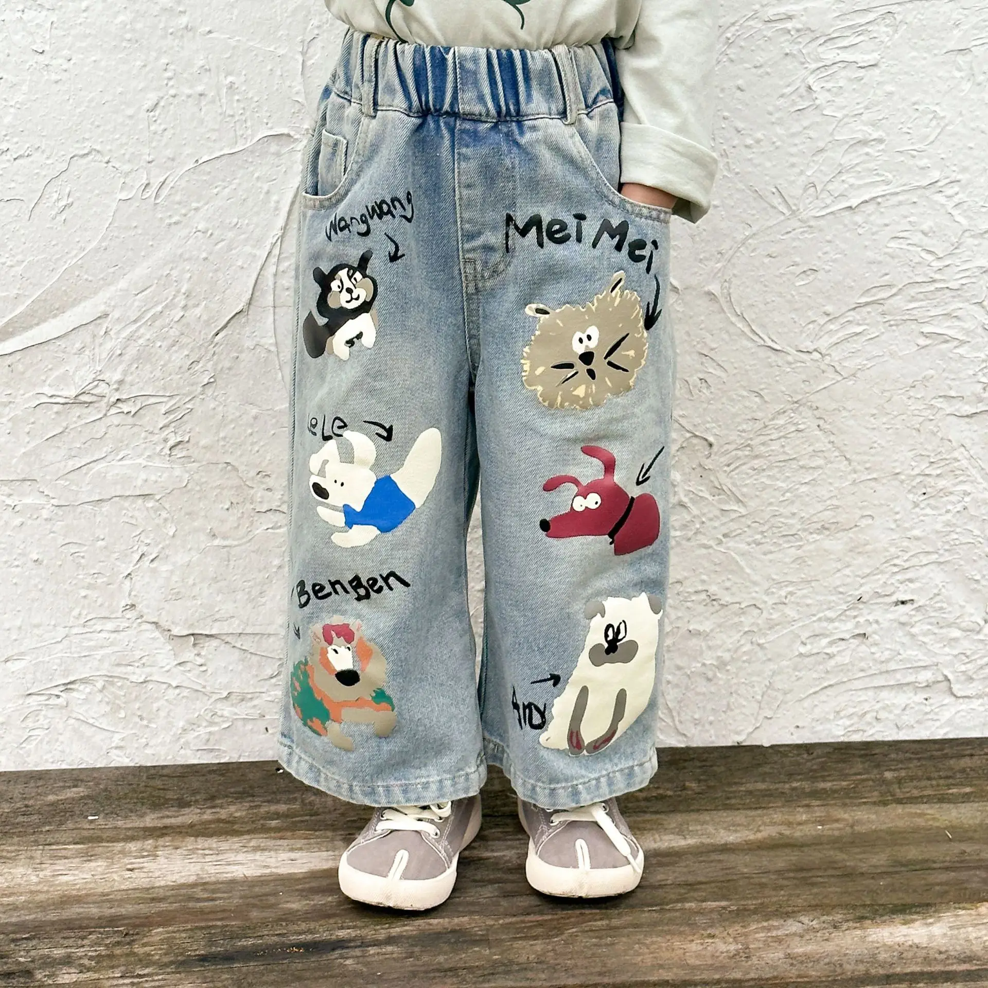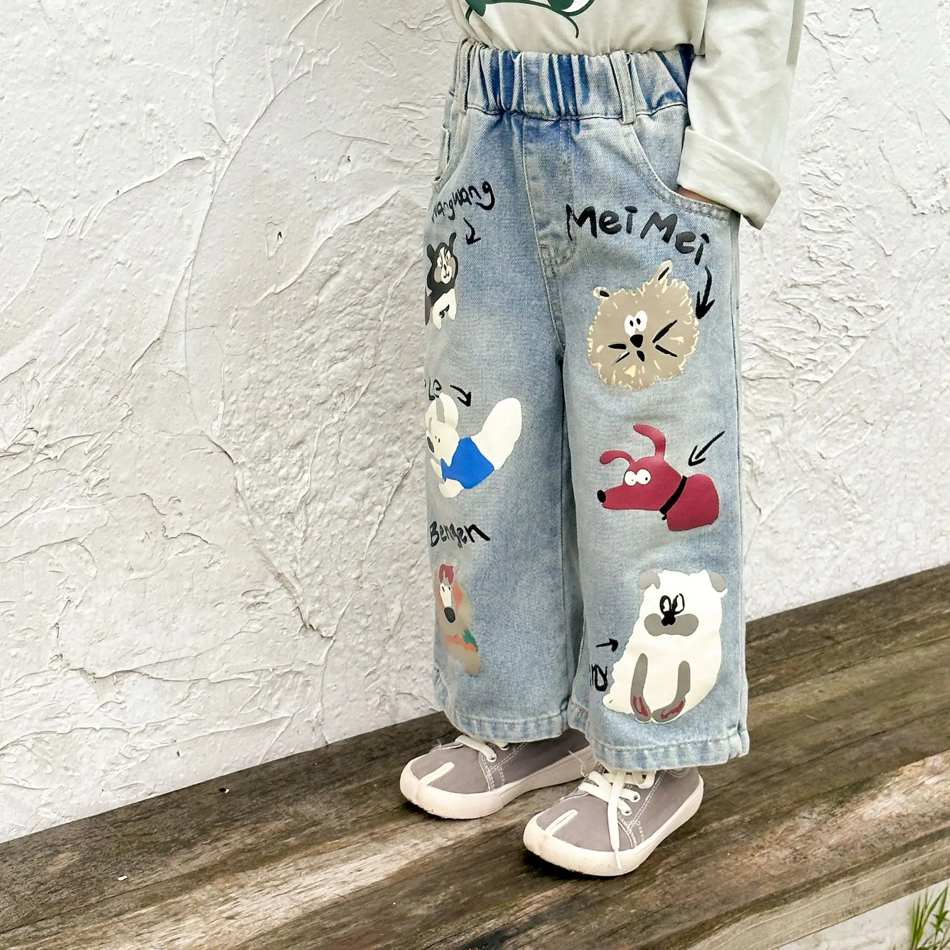 キッズパンツ アニマルプリントルーズストレートデニムパンツ ジーンズ【mh0006885】