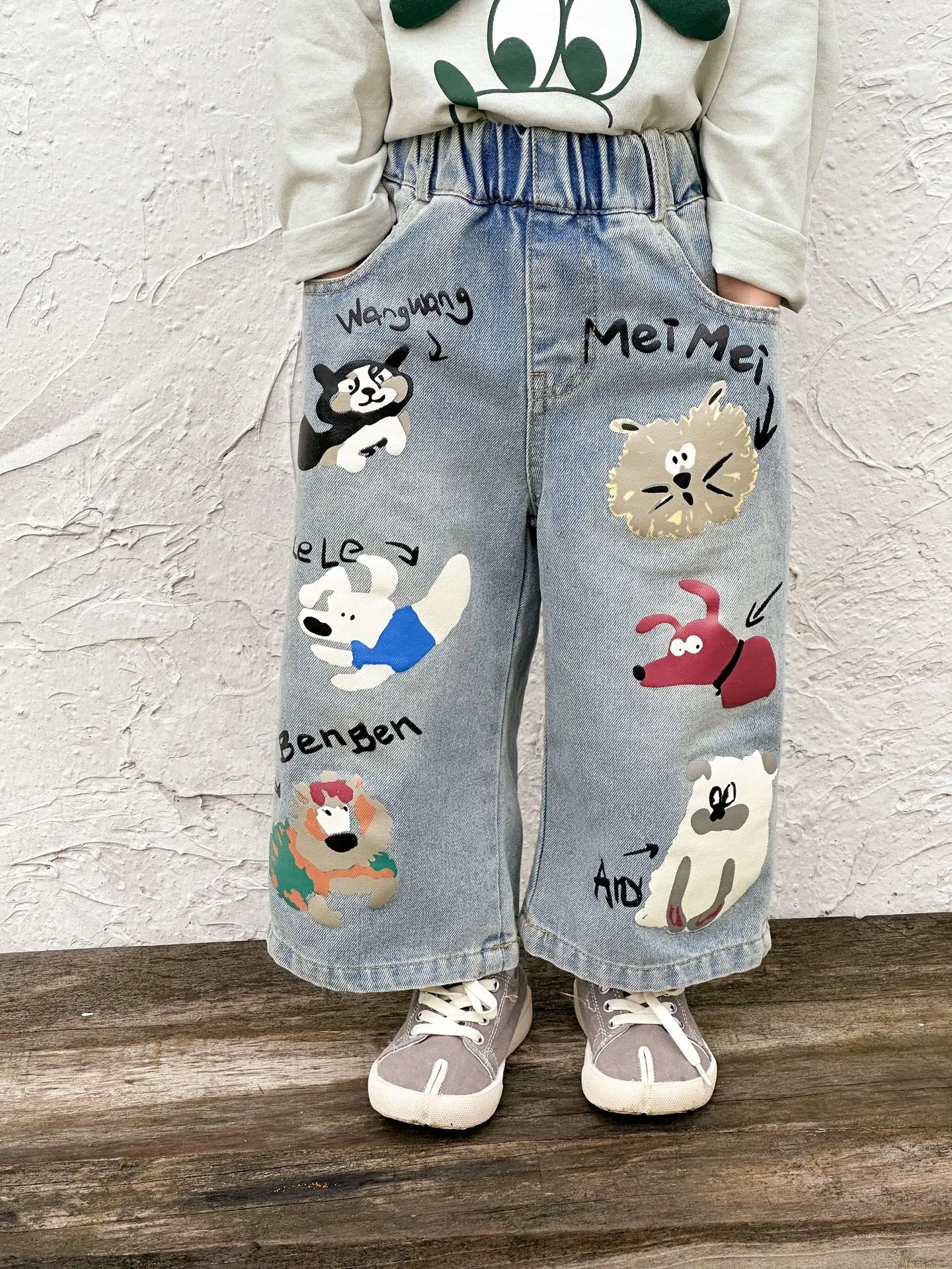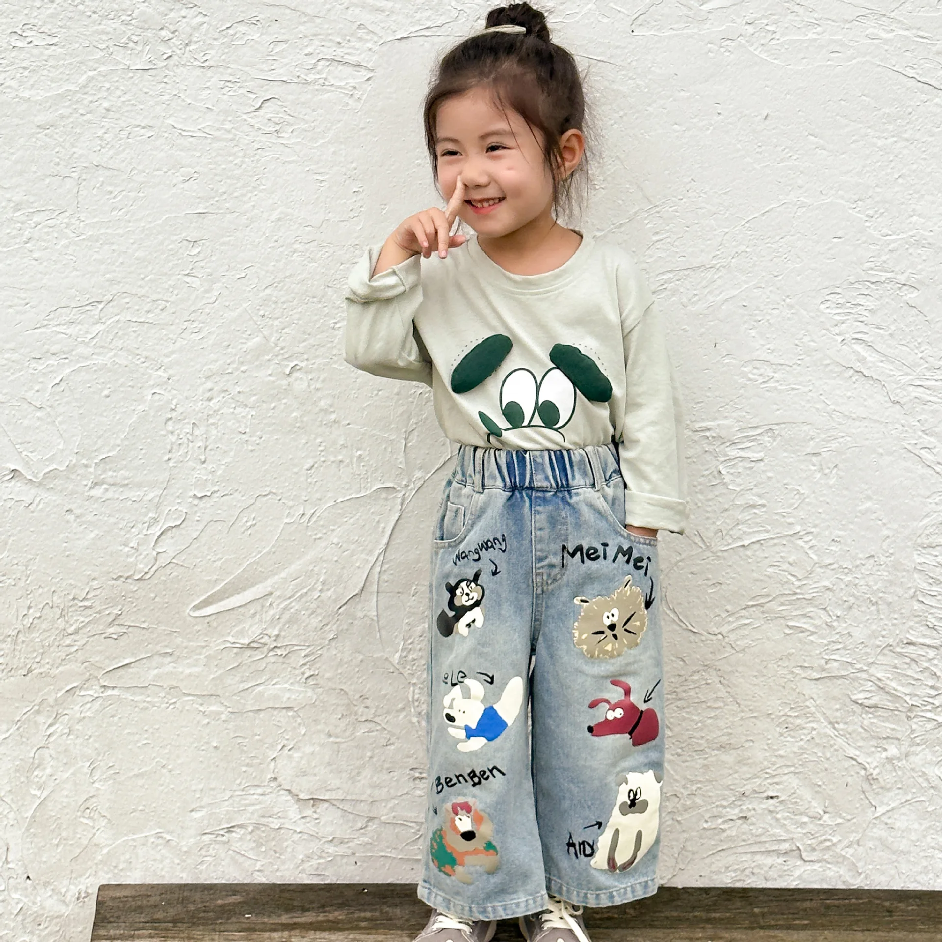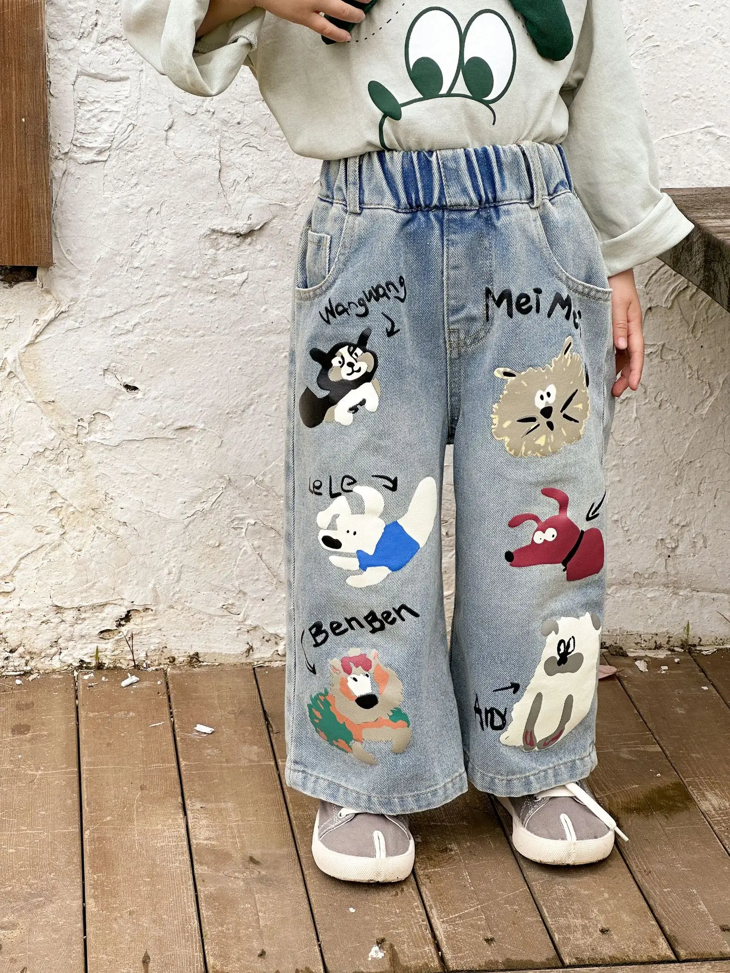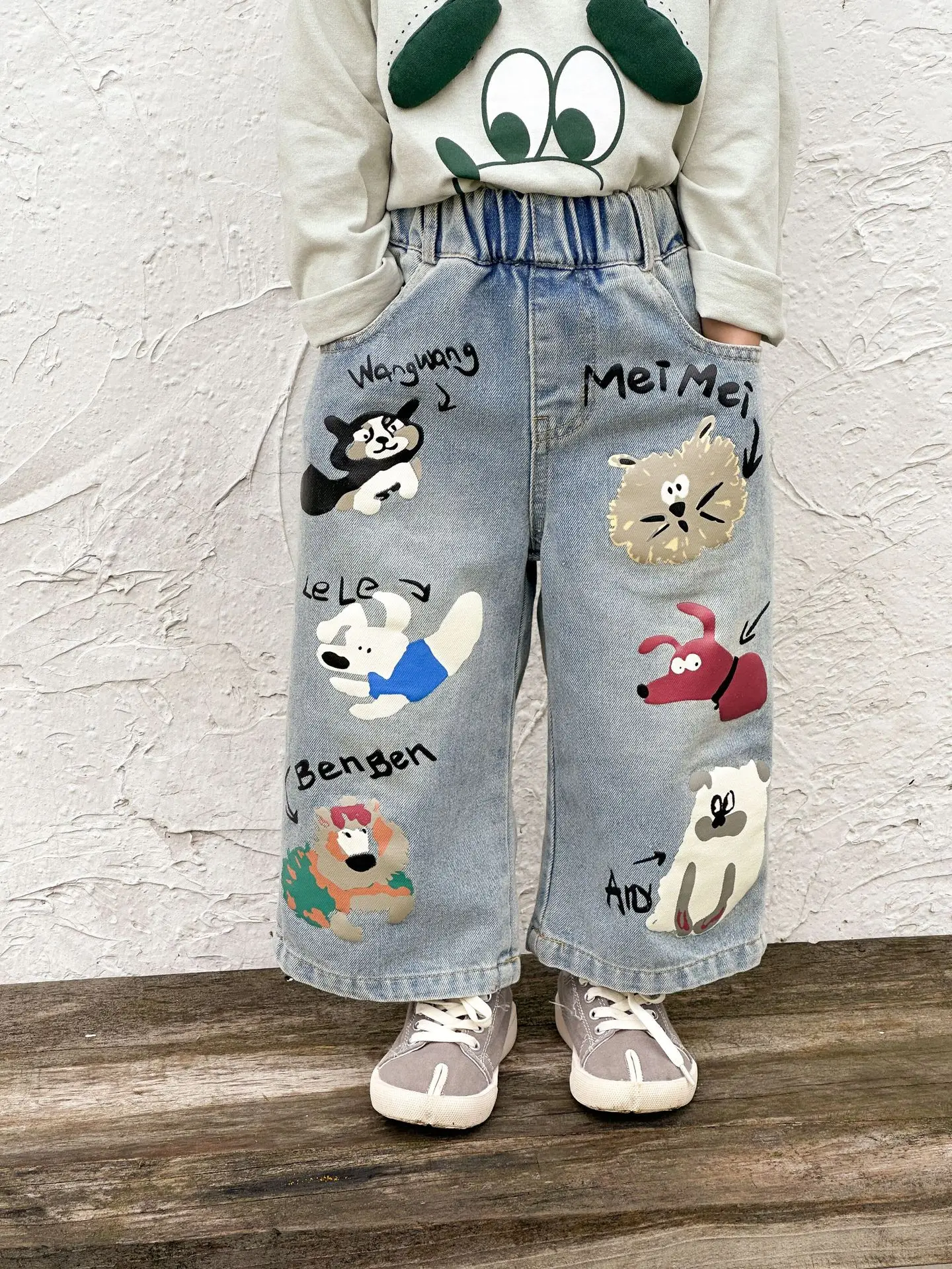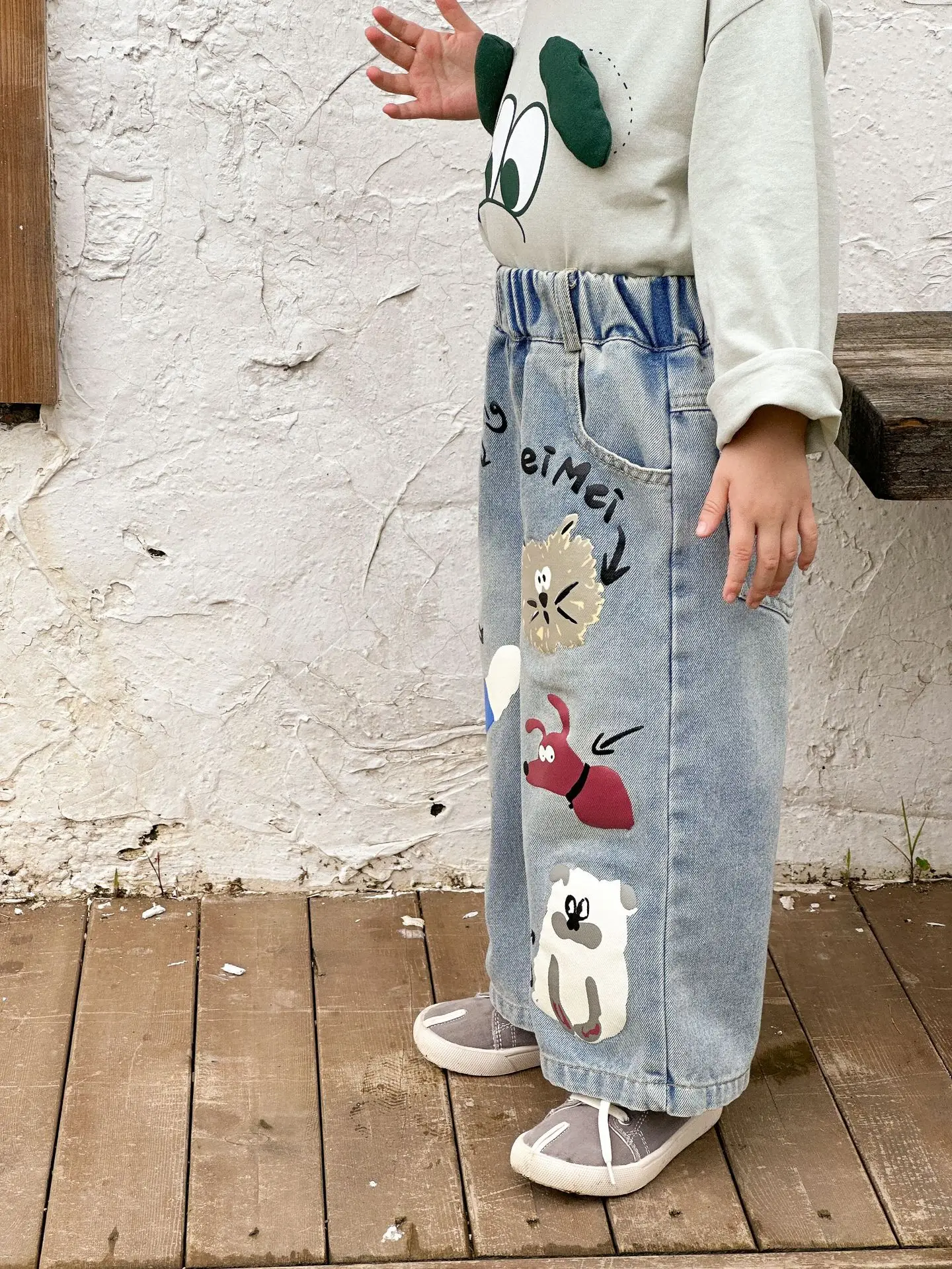 #キッズパンツ #アニマルプリント #デニムパンツ #ルーズシルエット #カジュアルファッション #子供服