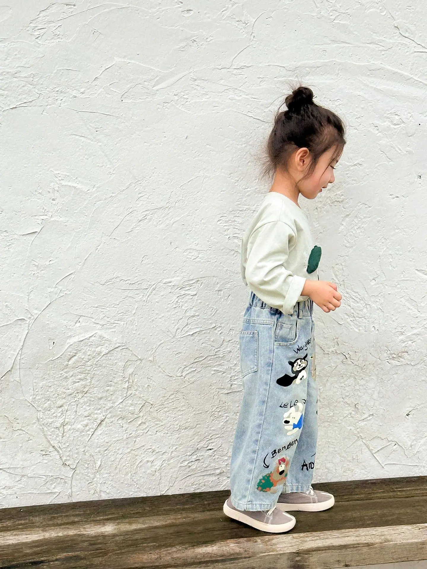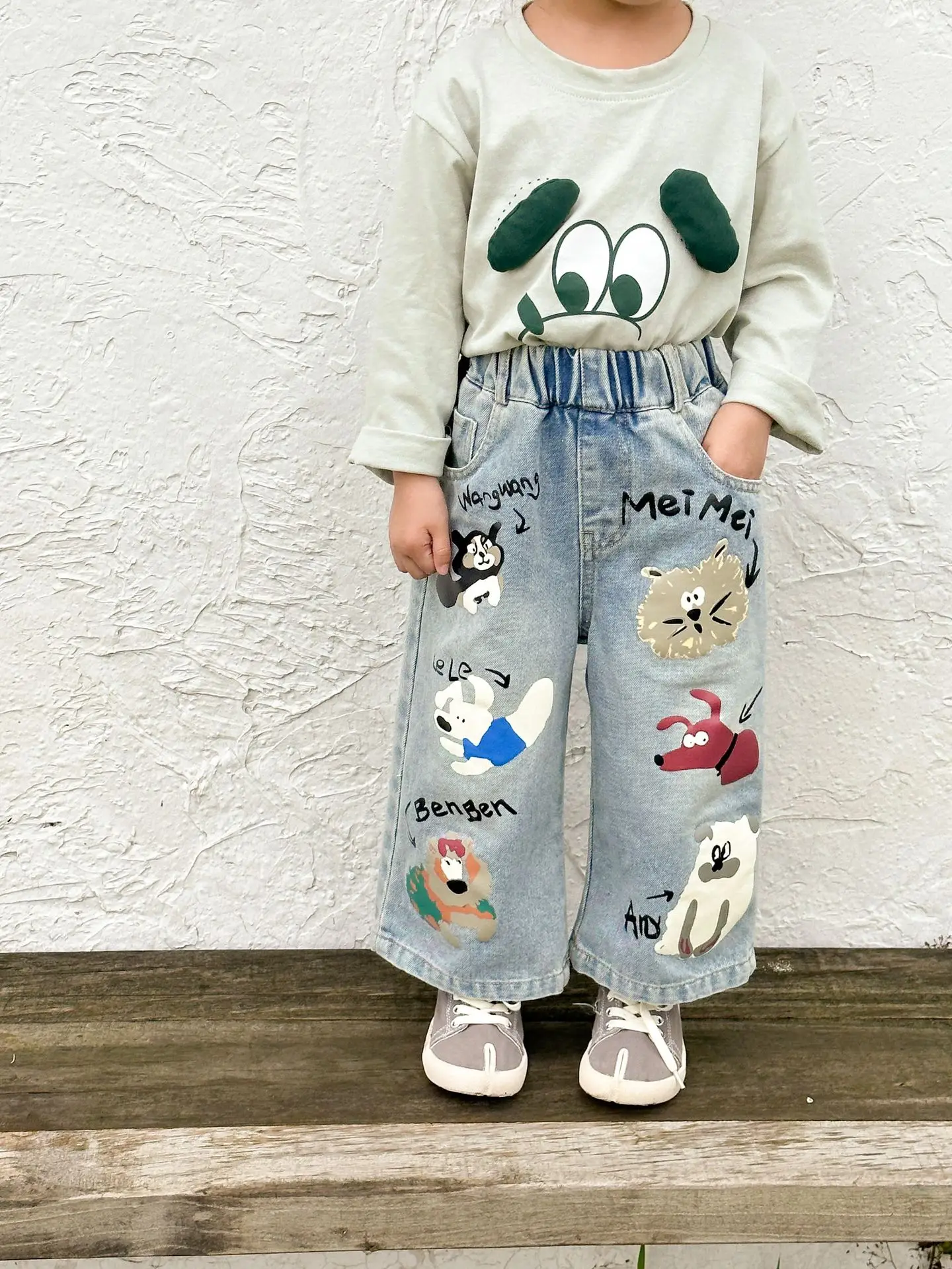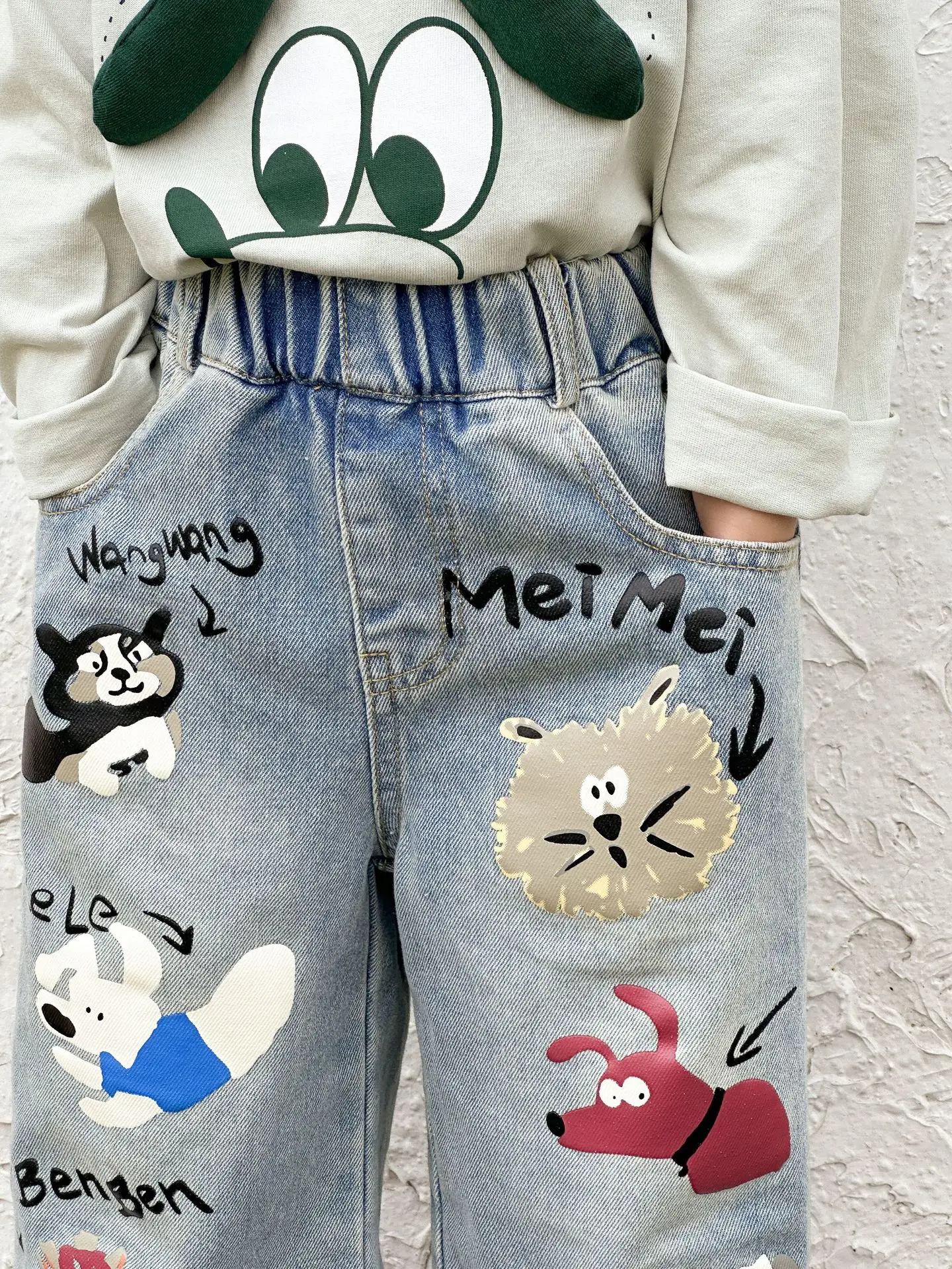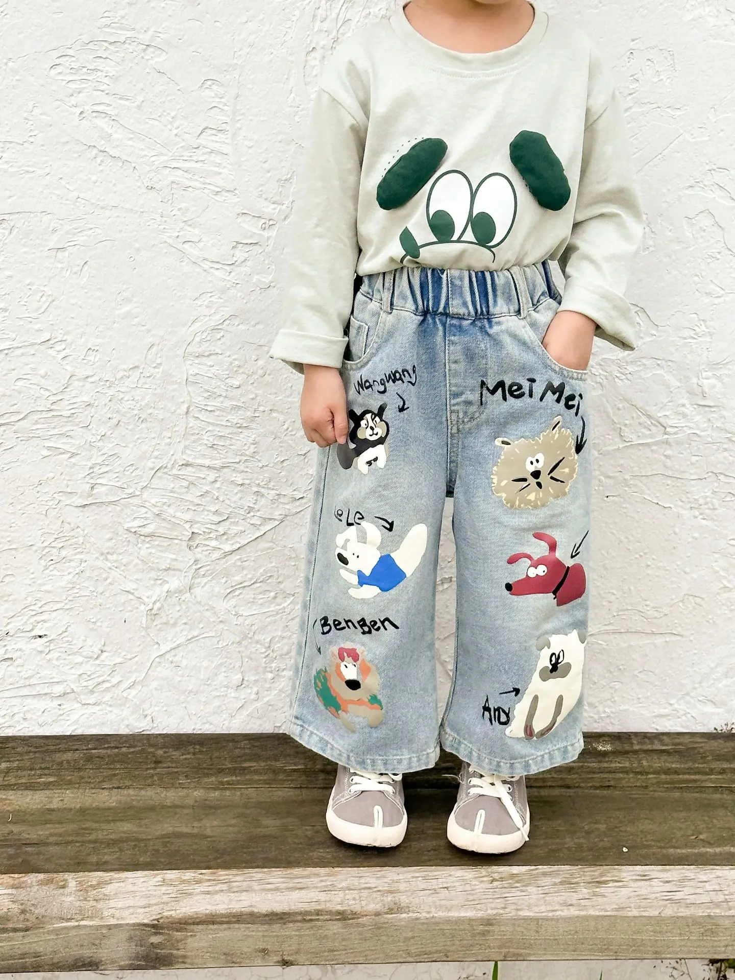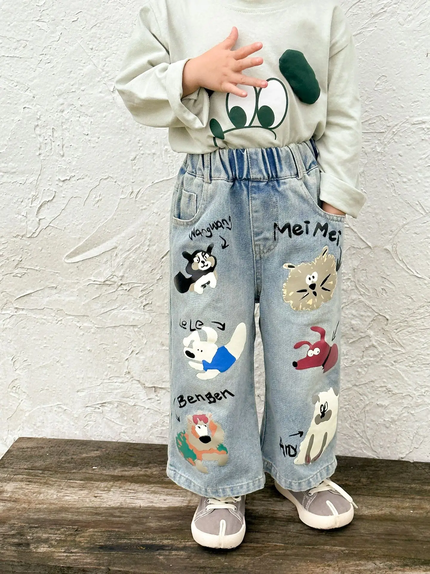 #キッズパンツ #アニマルプリント #デニムパンツ #ルーズシルエット #カジュアルファッション #子供服