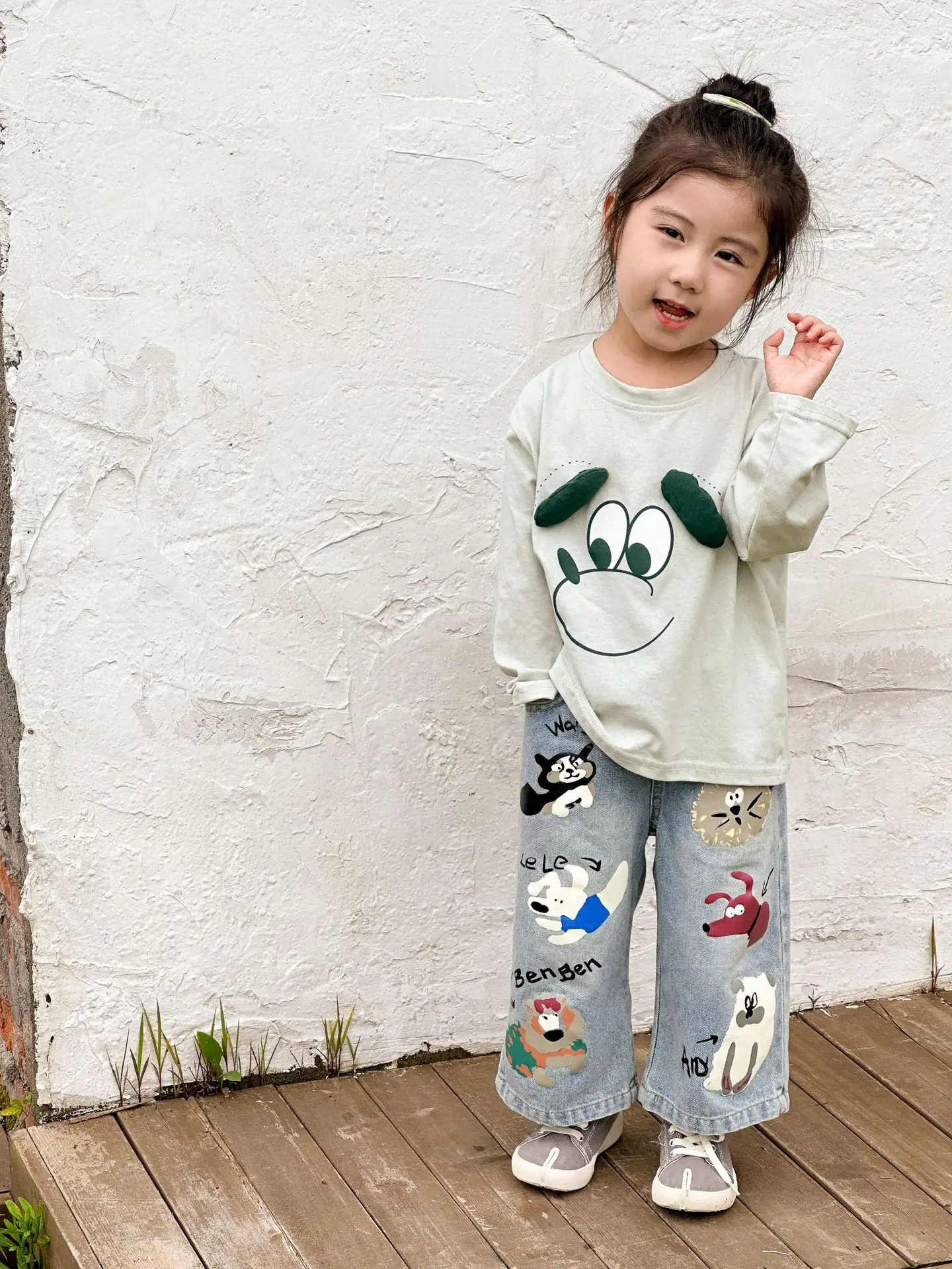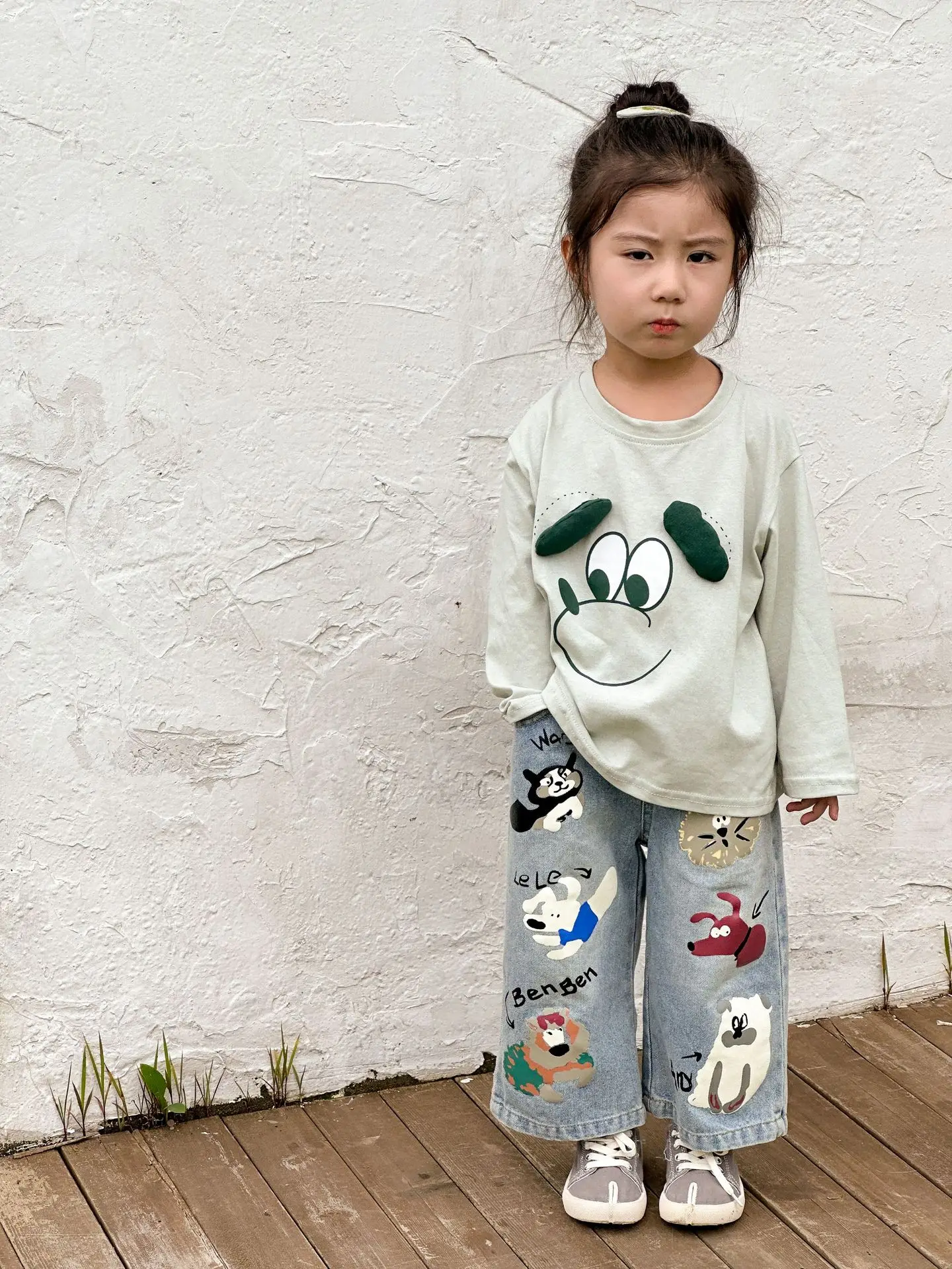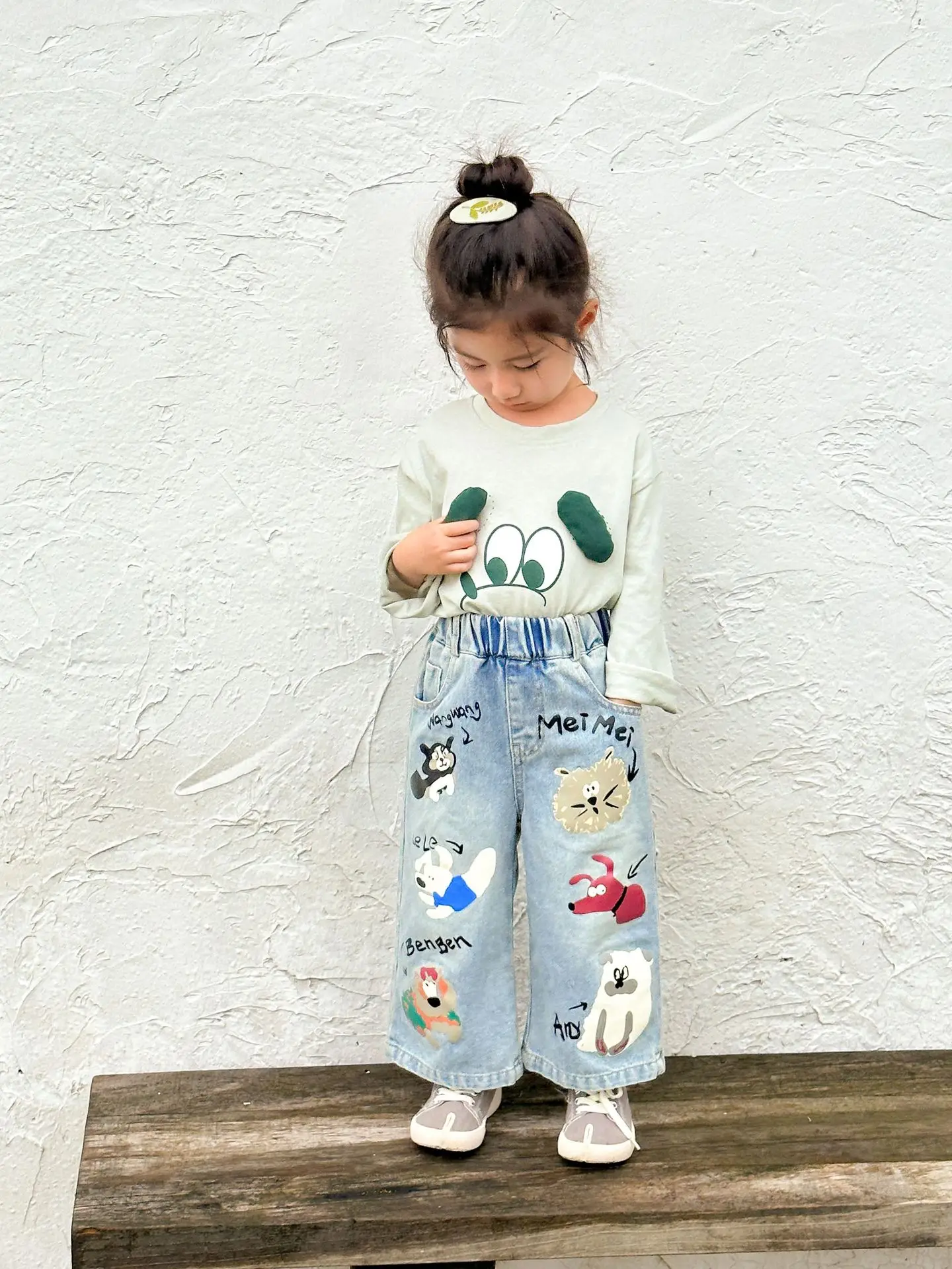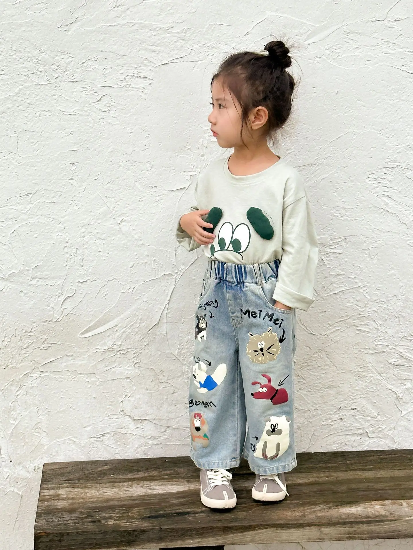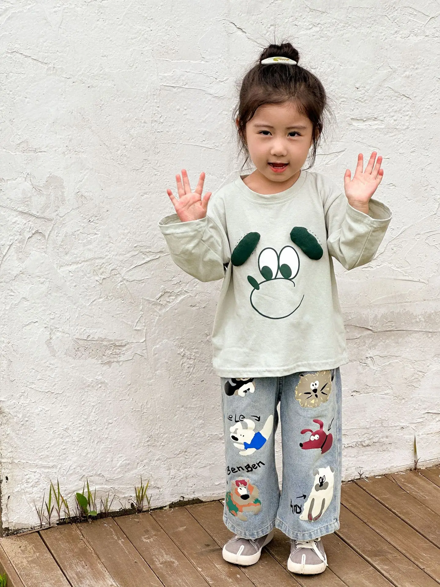 #キッズパンツ #アニマルプリント #デニムパンツ #ルーズシルエット #カジュアルファッション #子供服
