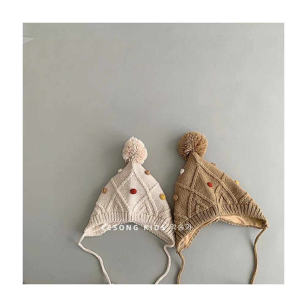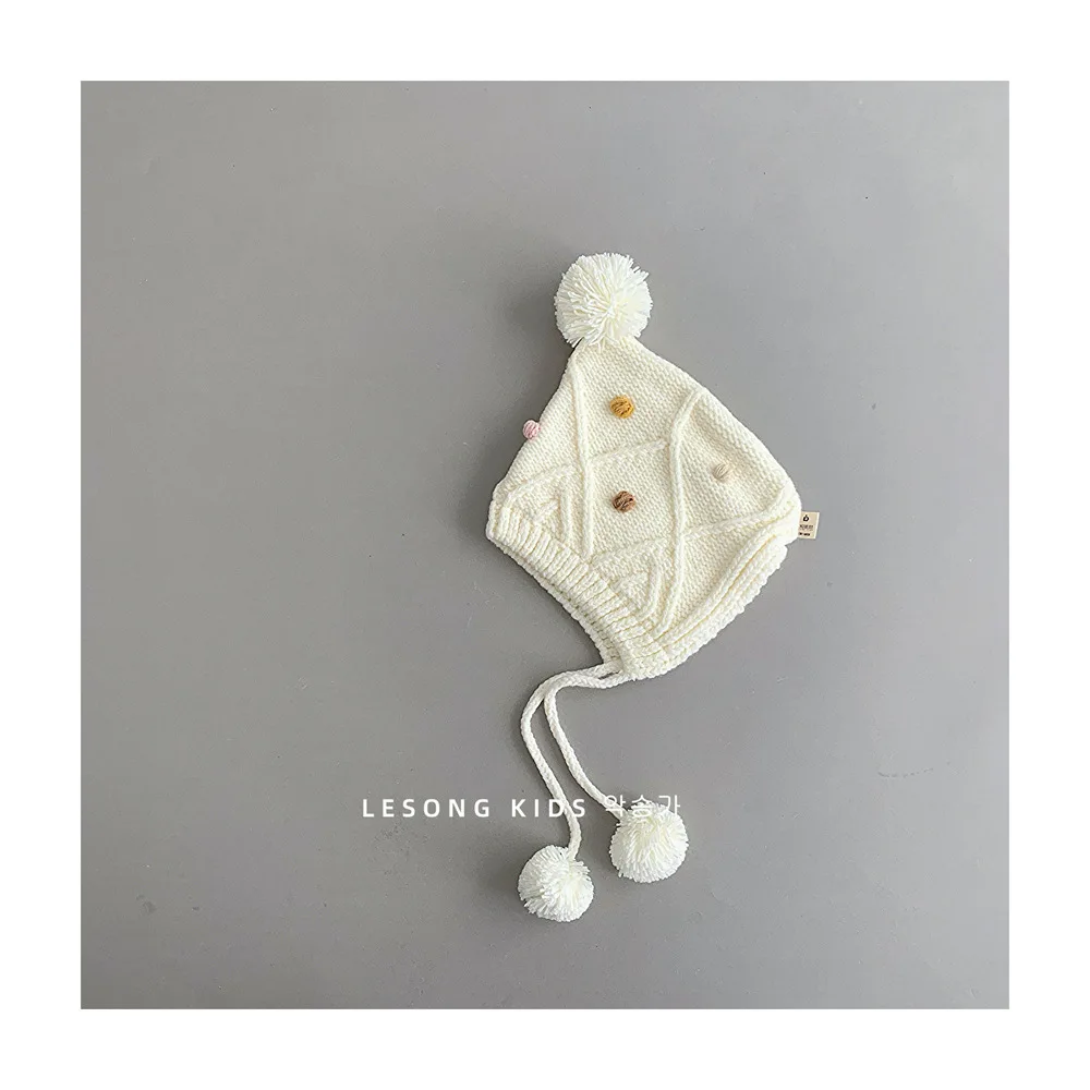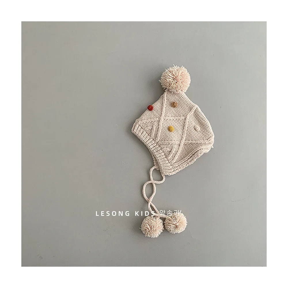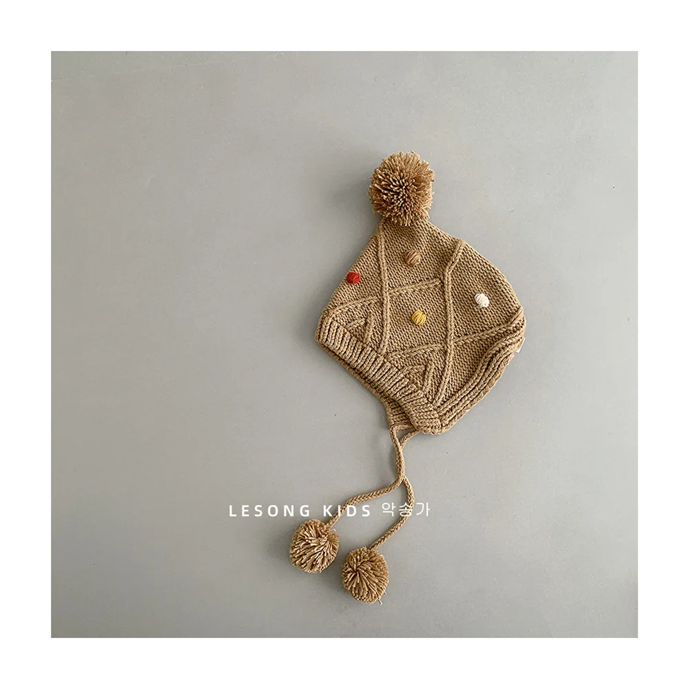 ベビー帽子 ポンポン付きニットキャップボンネット 5カラー【mh0006952】
