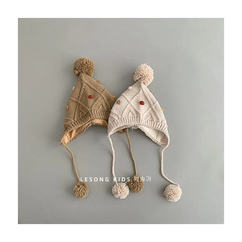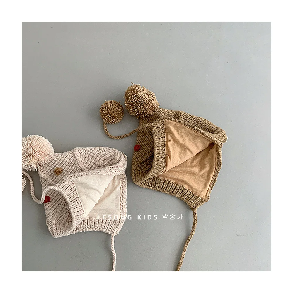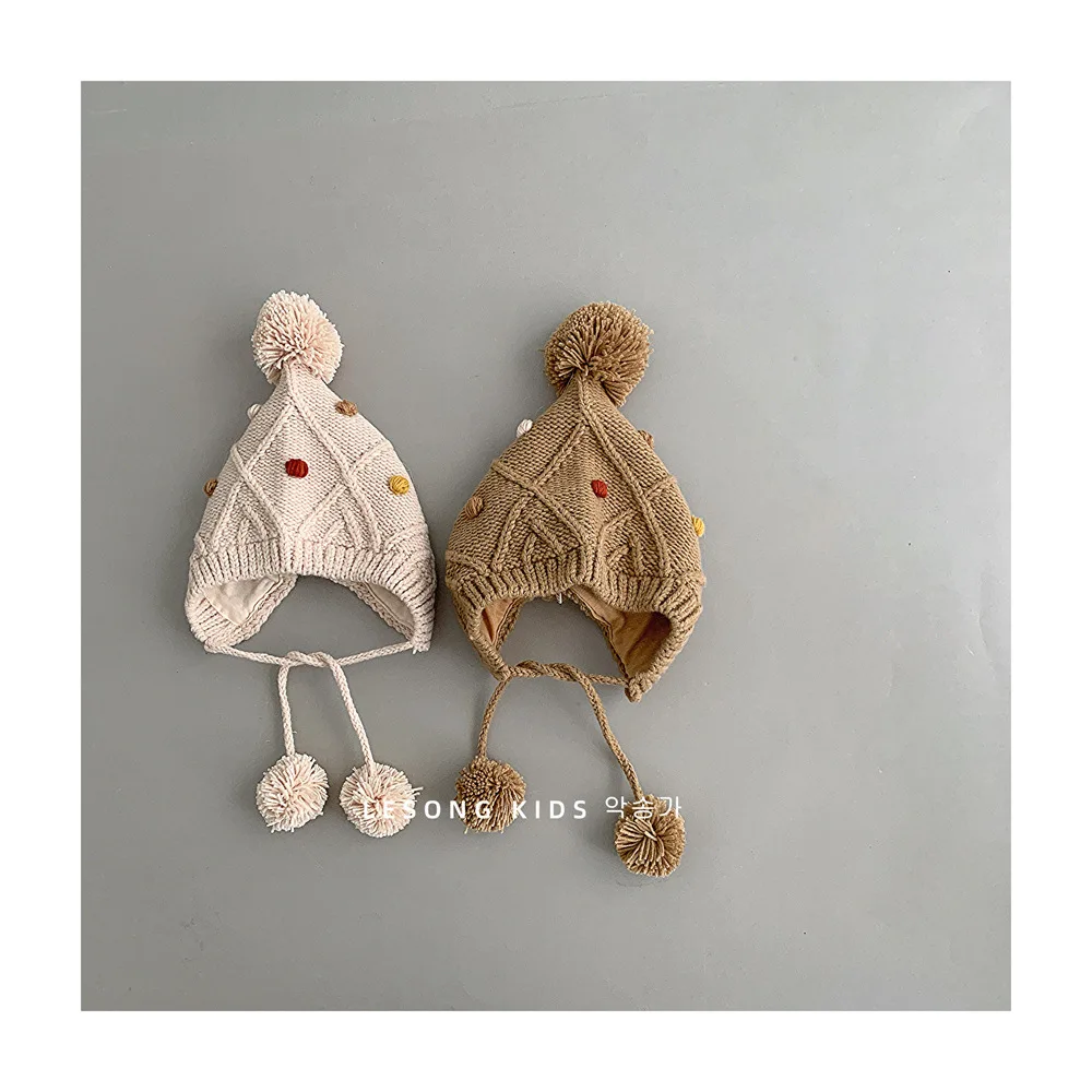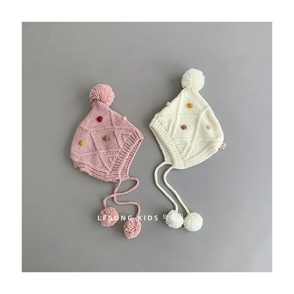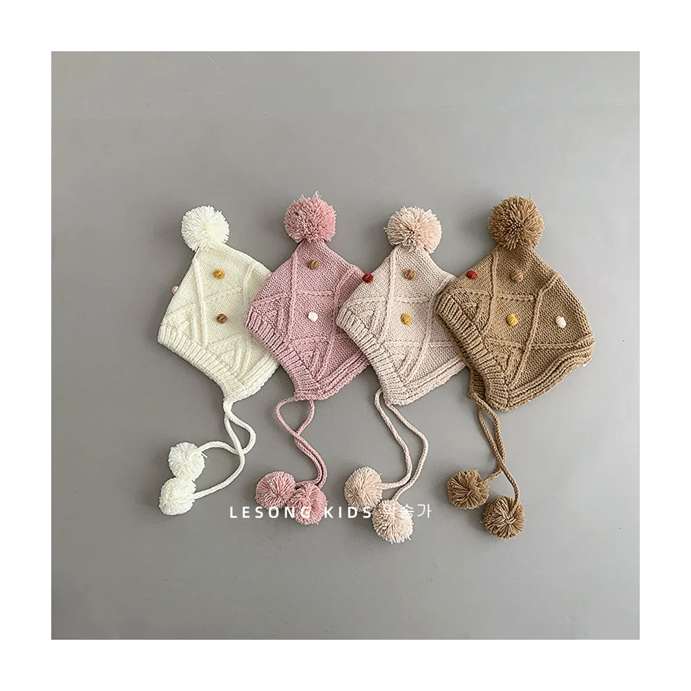 ベビー帽子 ポンポン付きニットキャップボンネット 5カラー【mh0006952】