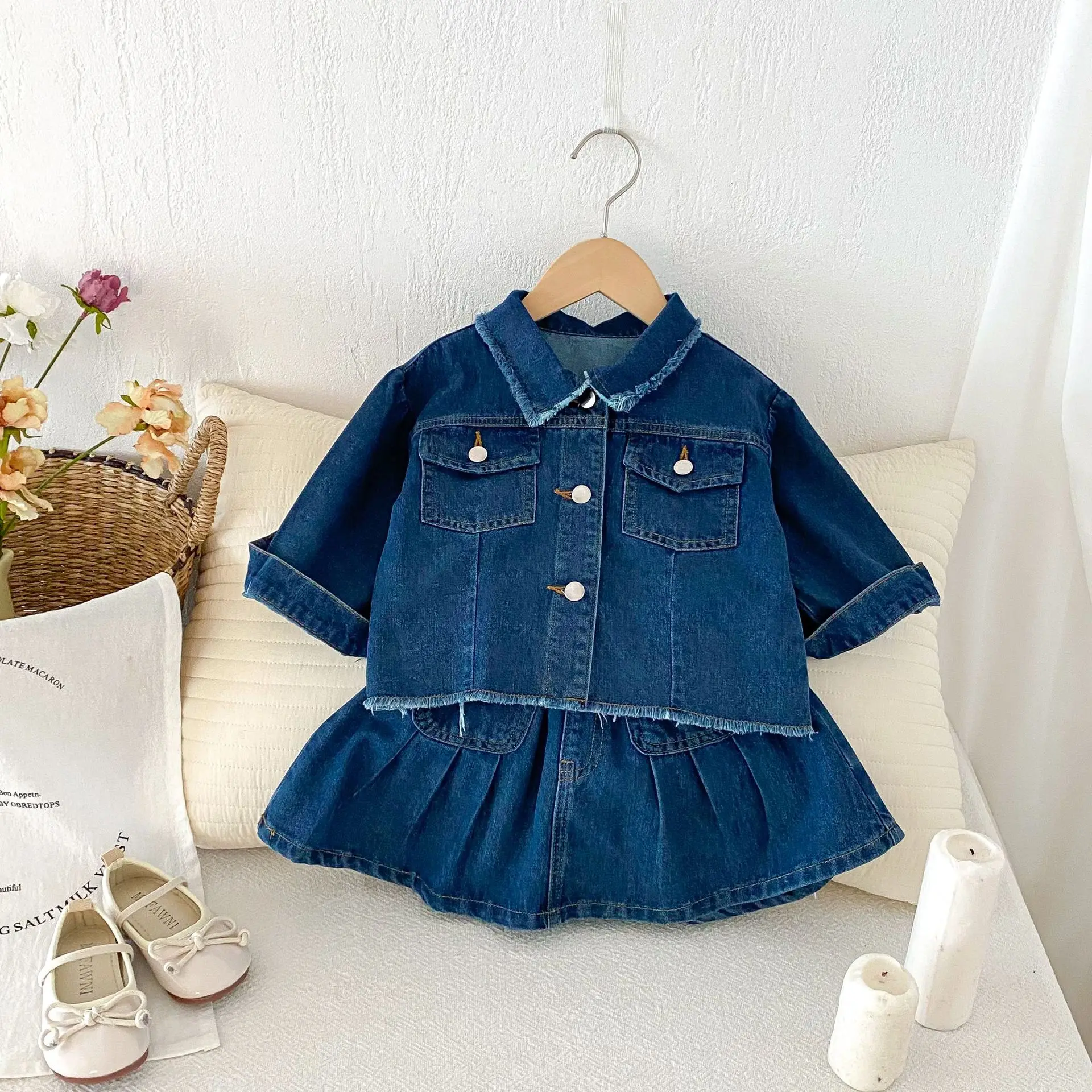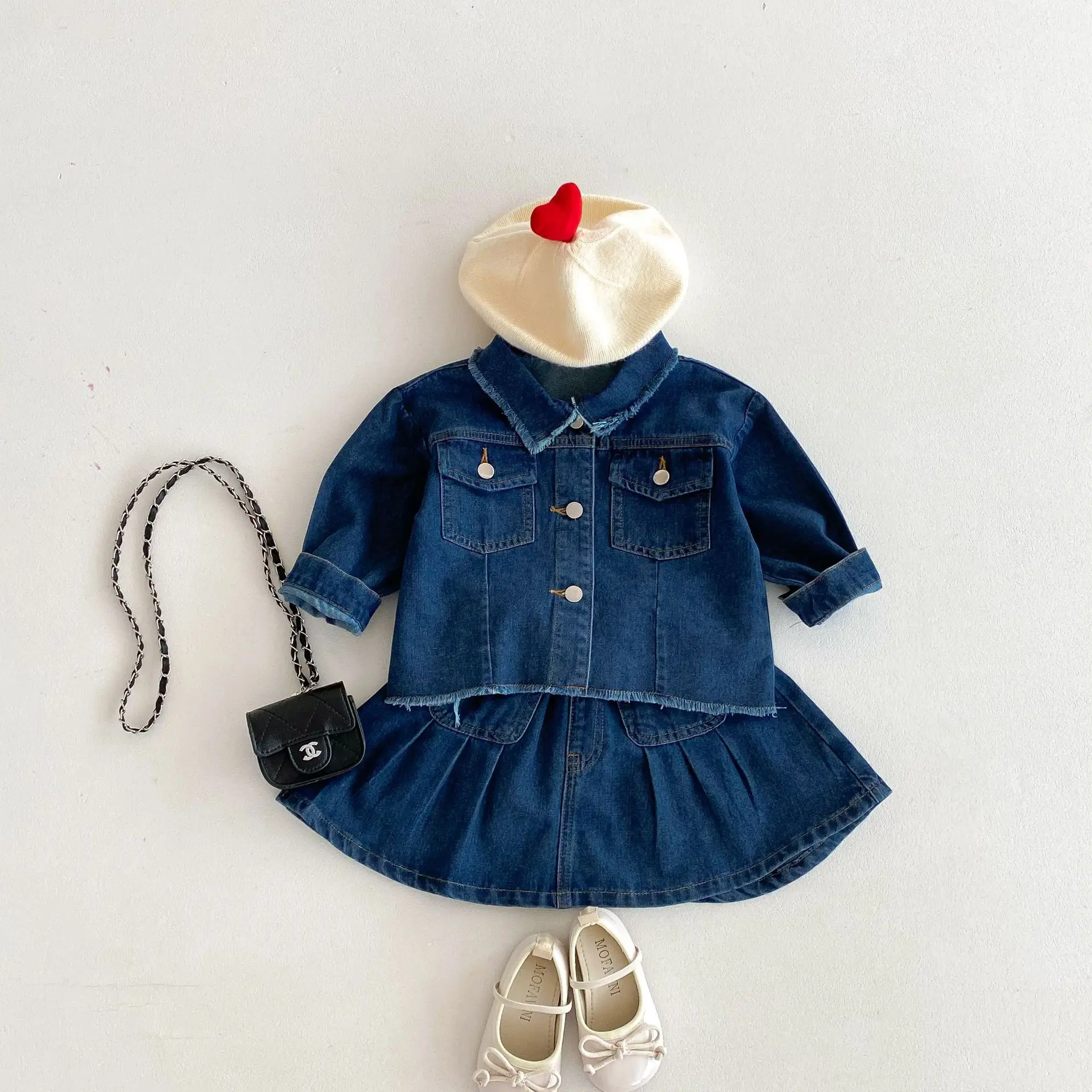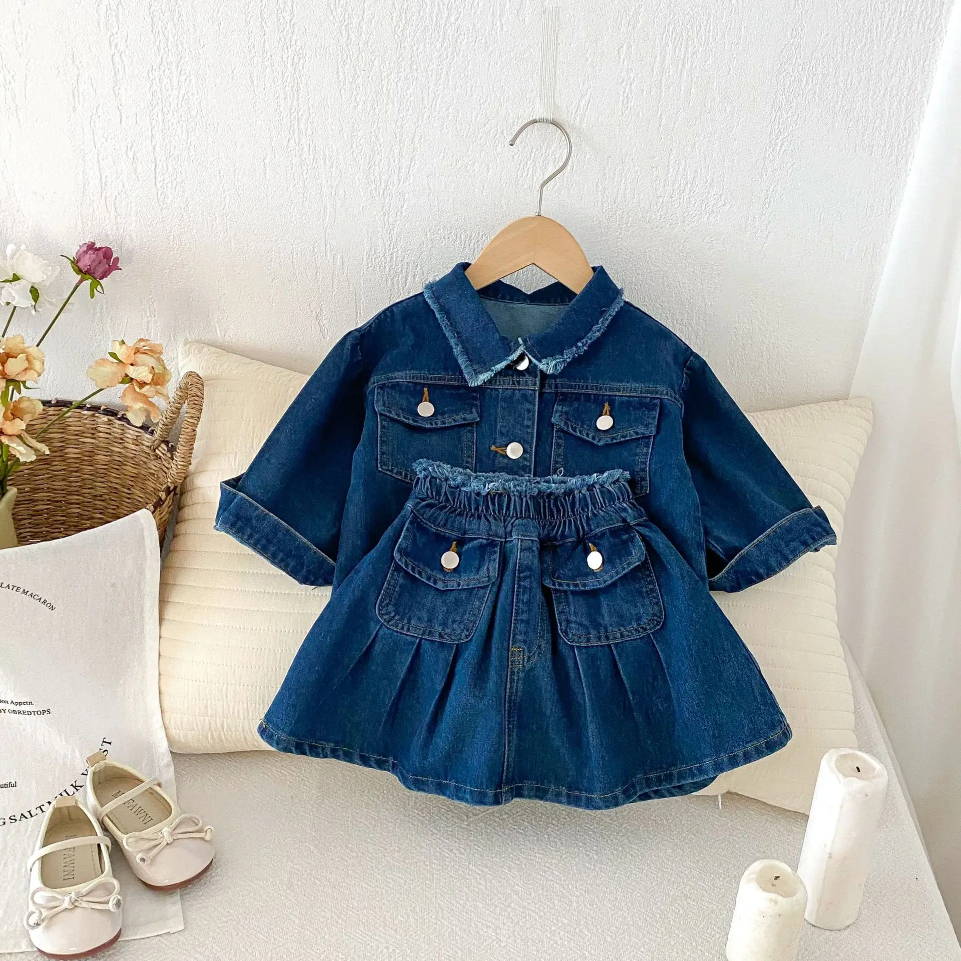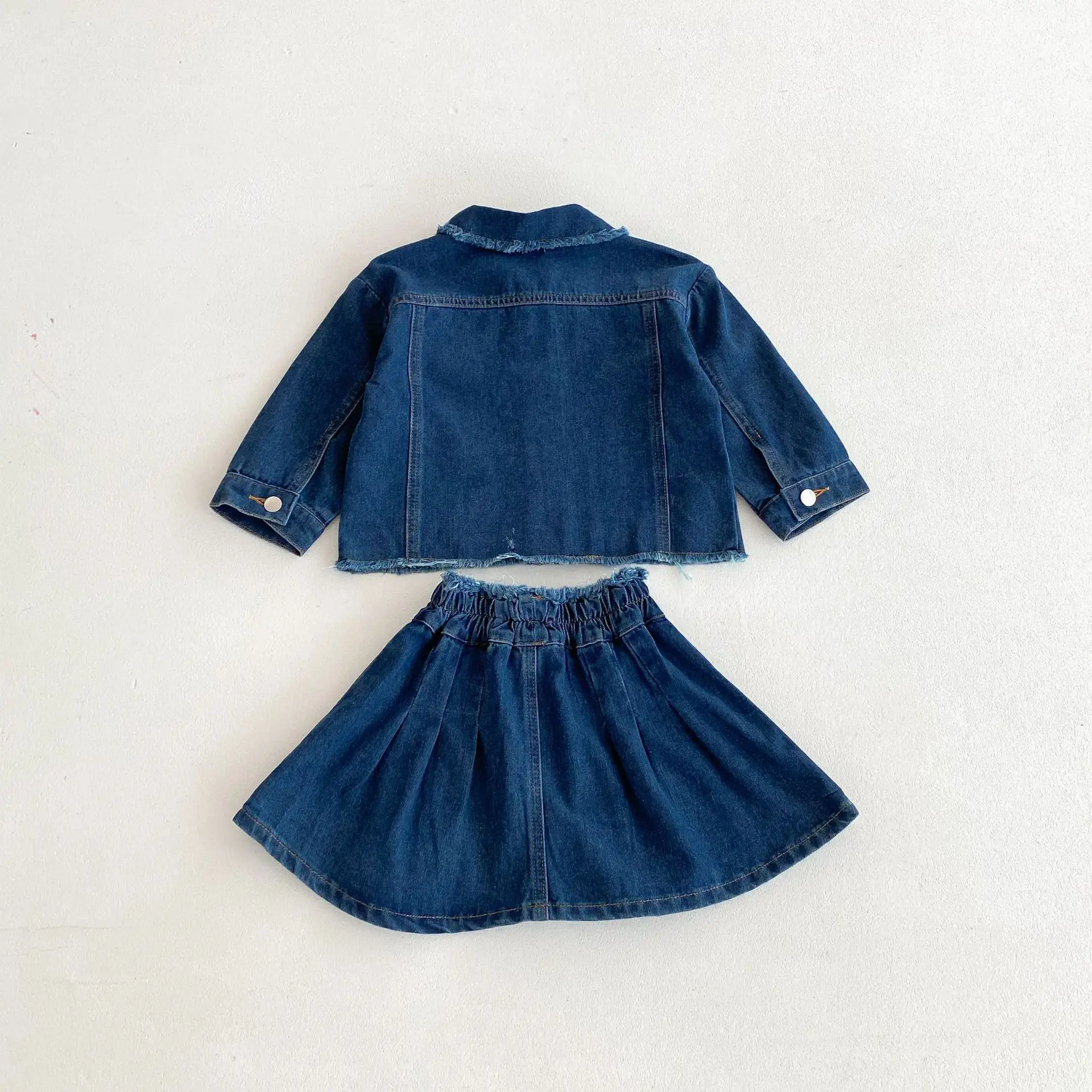 キッズセットアップ 2点セット デニム長袖シャツ+ポケットアクセントデニムスカート【mh0006981】
