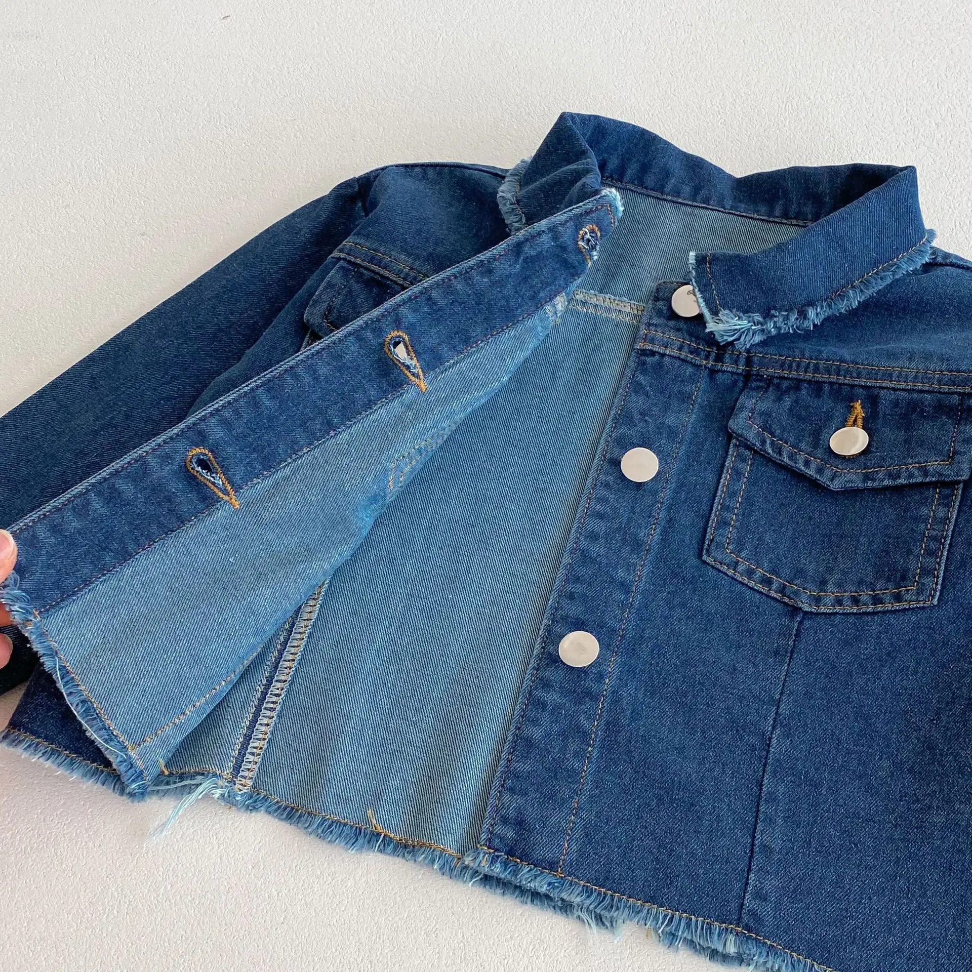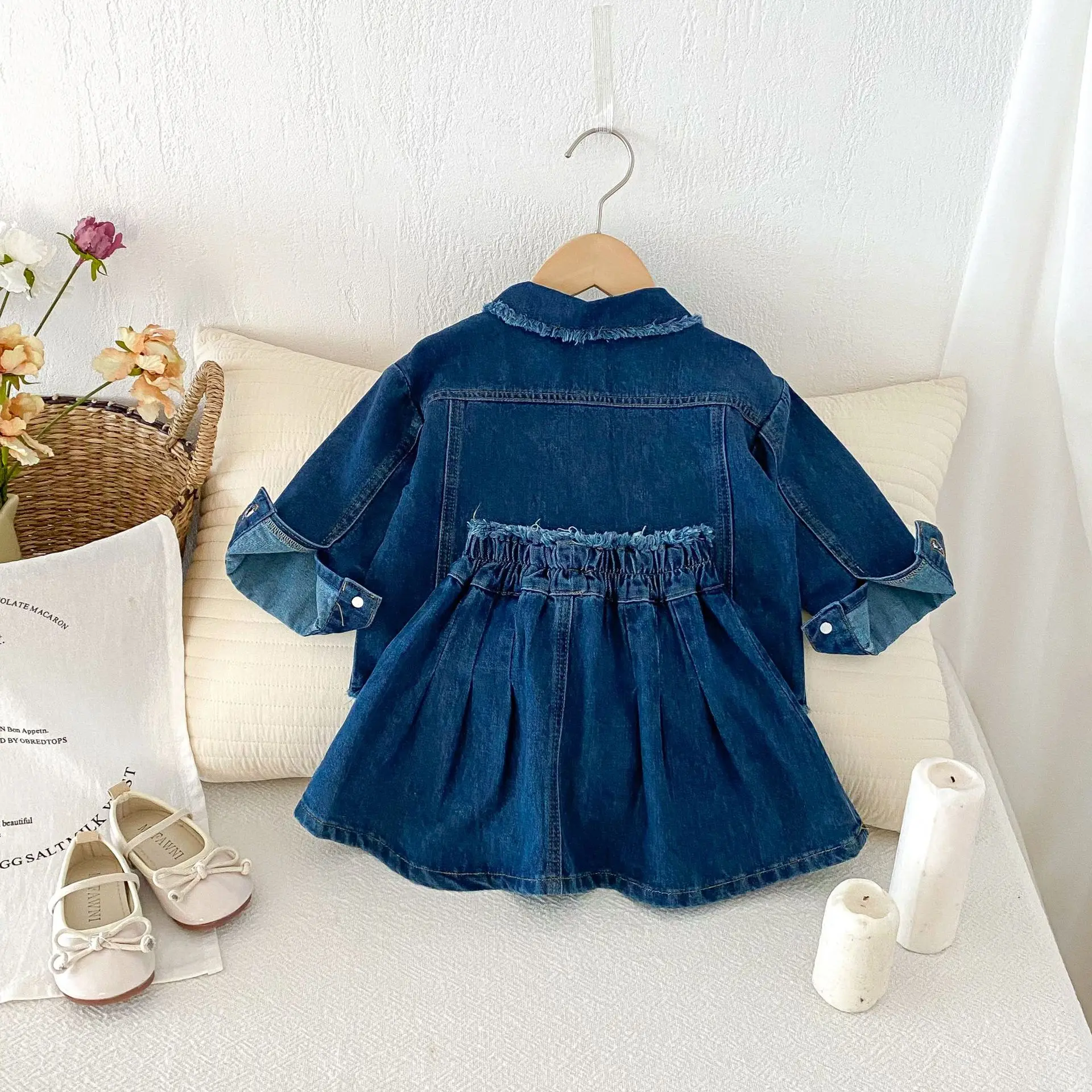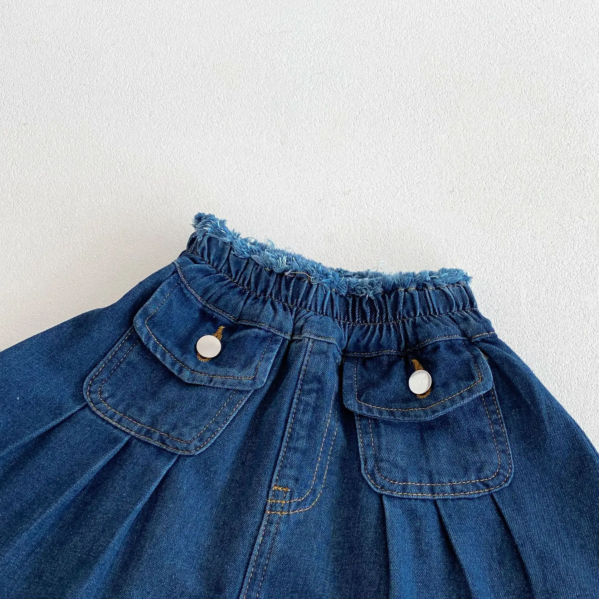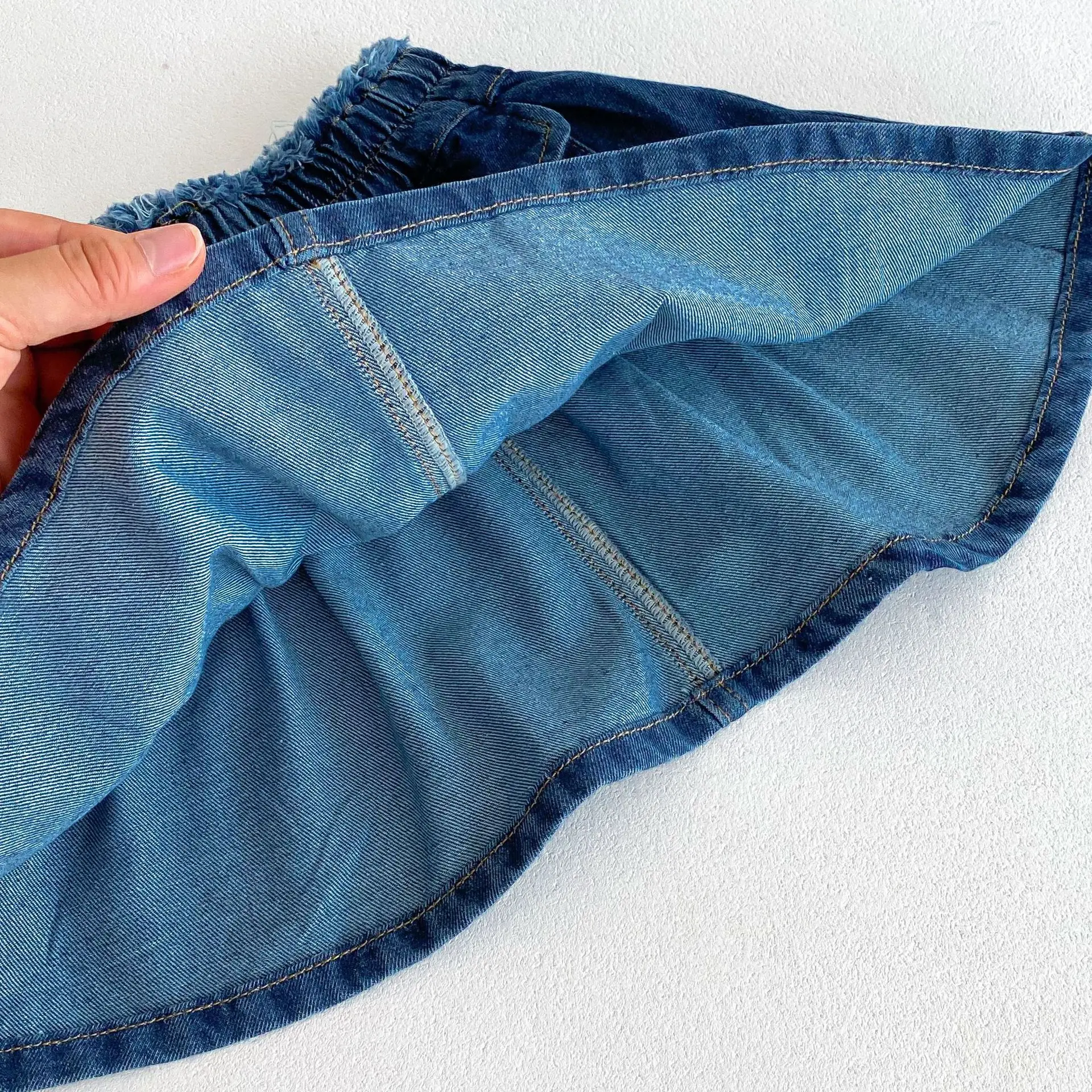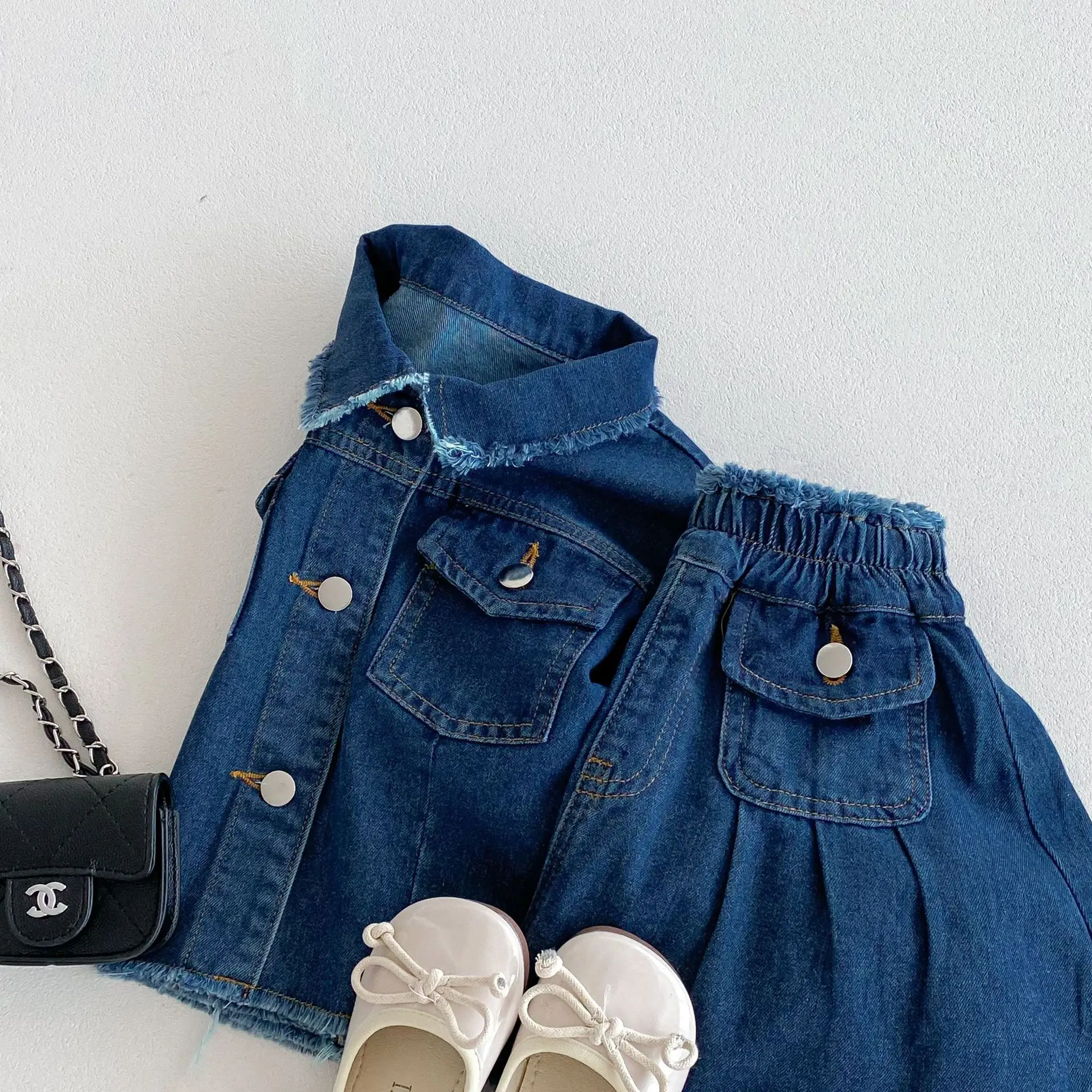 キッズセットアップ 2点セット デニム長袖シャツ+ポケットアクセントデニムスカート【mh0006981】