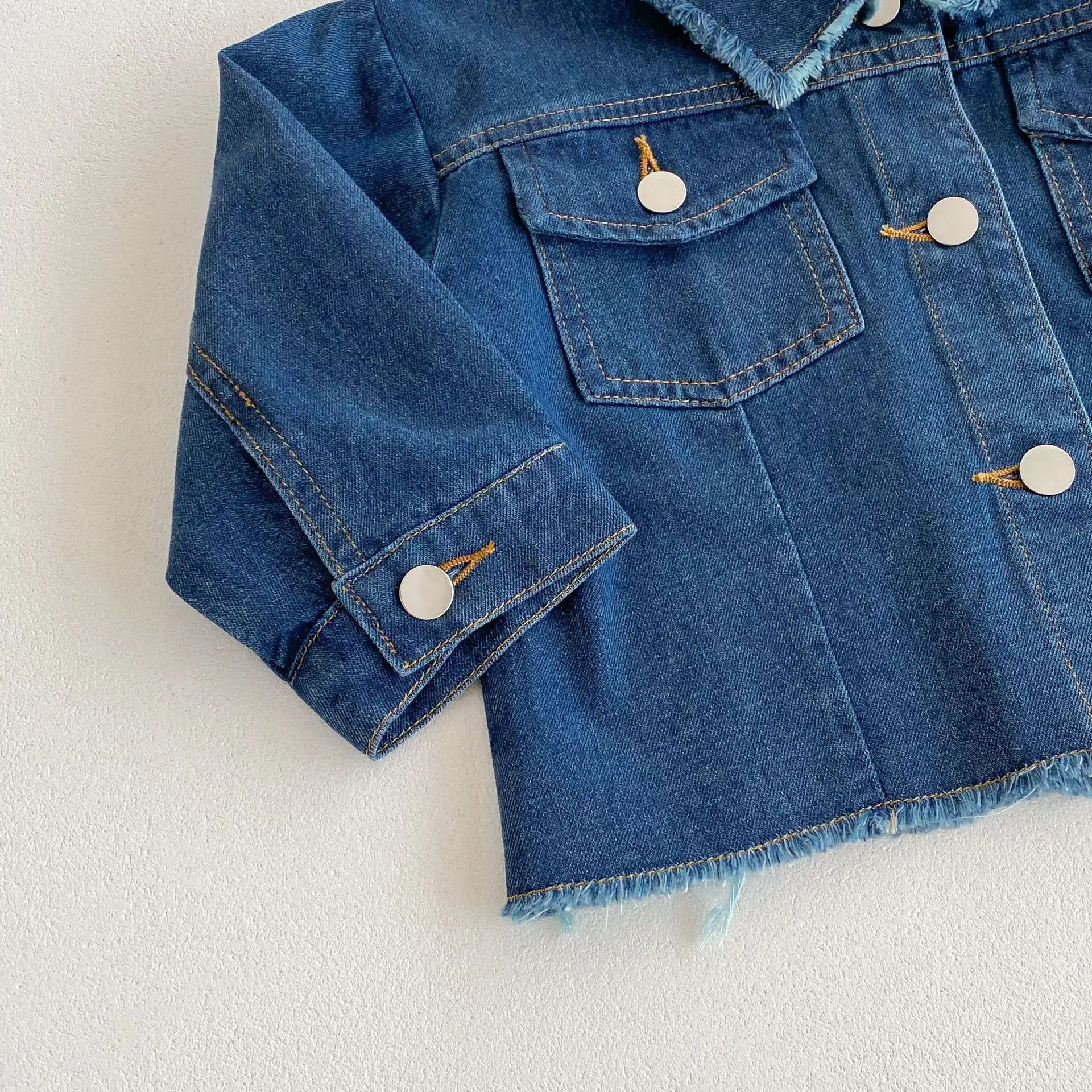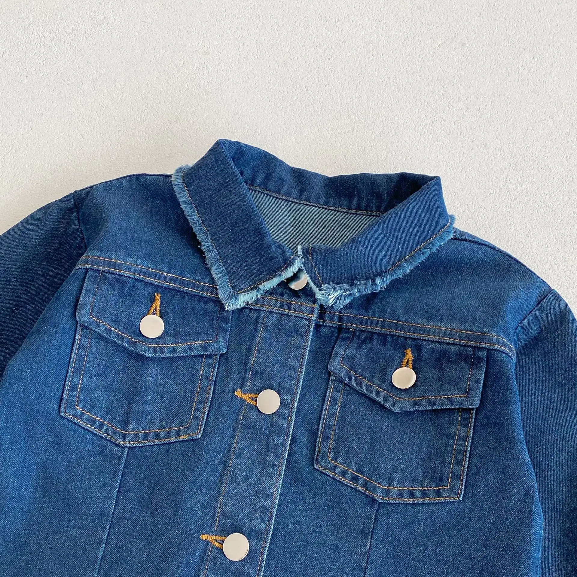 #キッズセットアップ #デニムシャツ #デニムスカート #ポケットデザイン #長袖シャツ #子供服