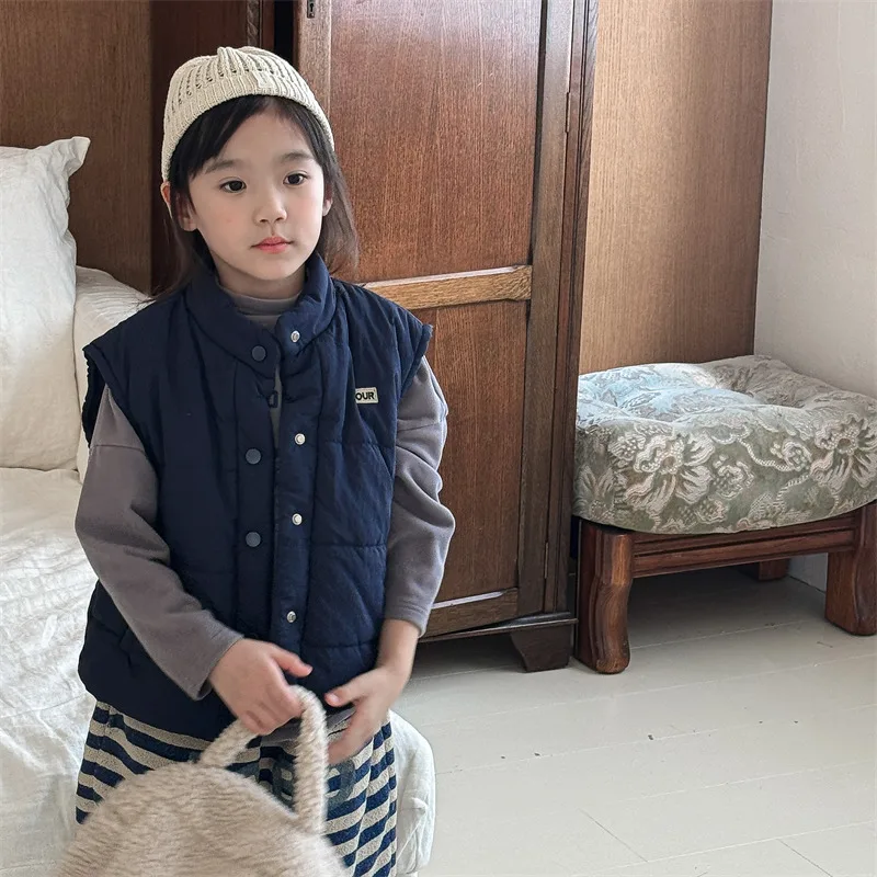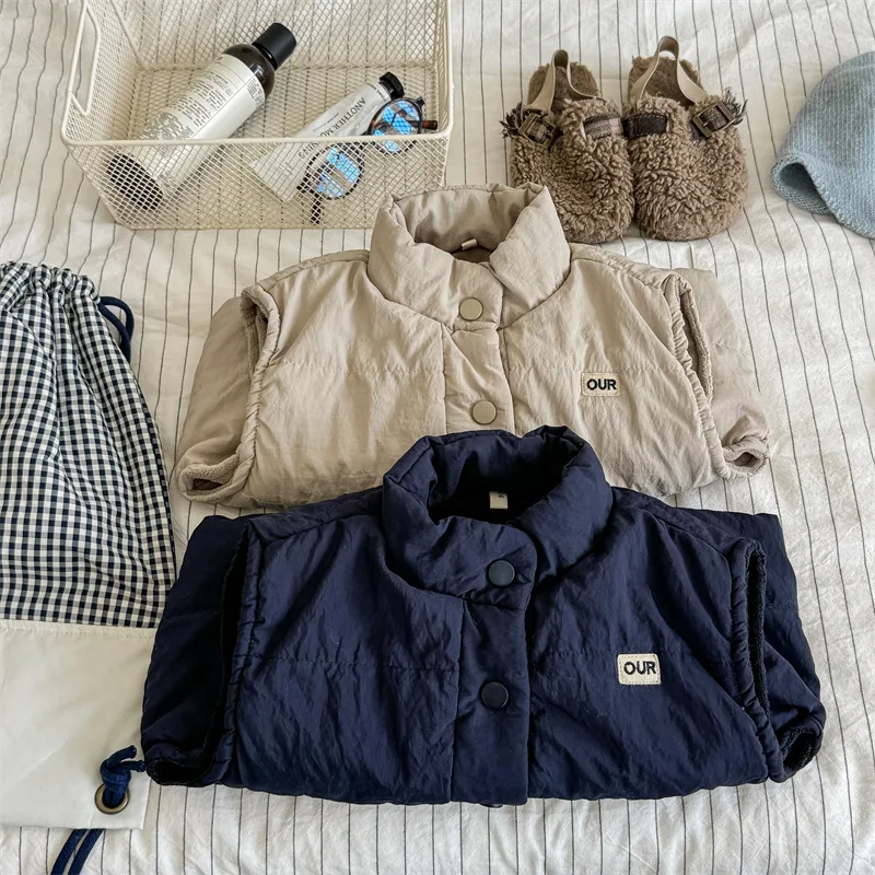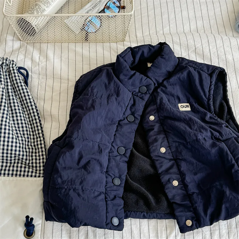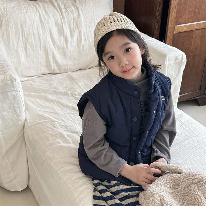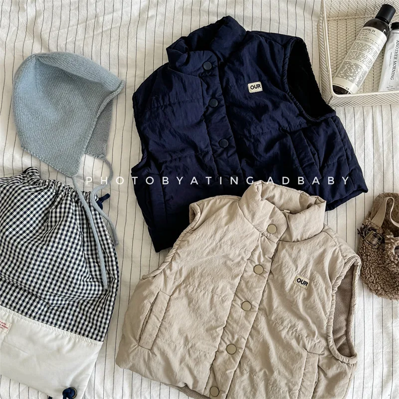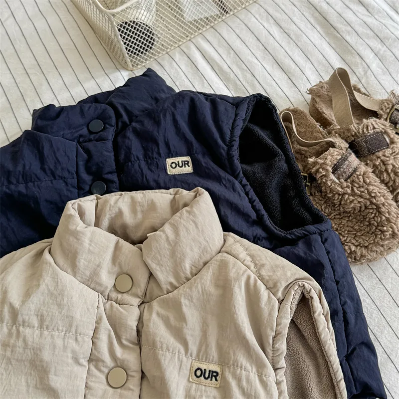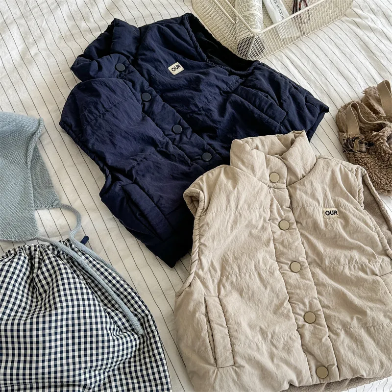 #キッズファッション #ベビー服 #裏フリース #スタンドカラー #韓国子供服 #アウターベスト #冬用ウェア