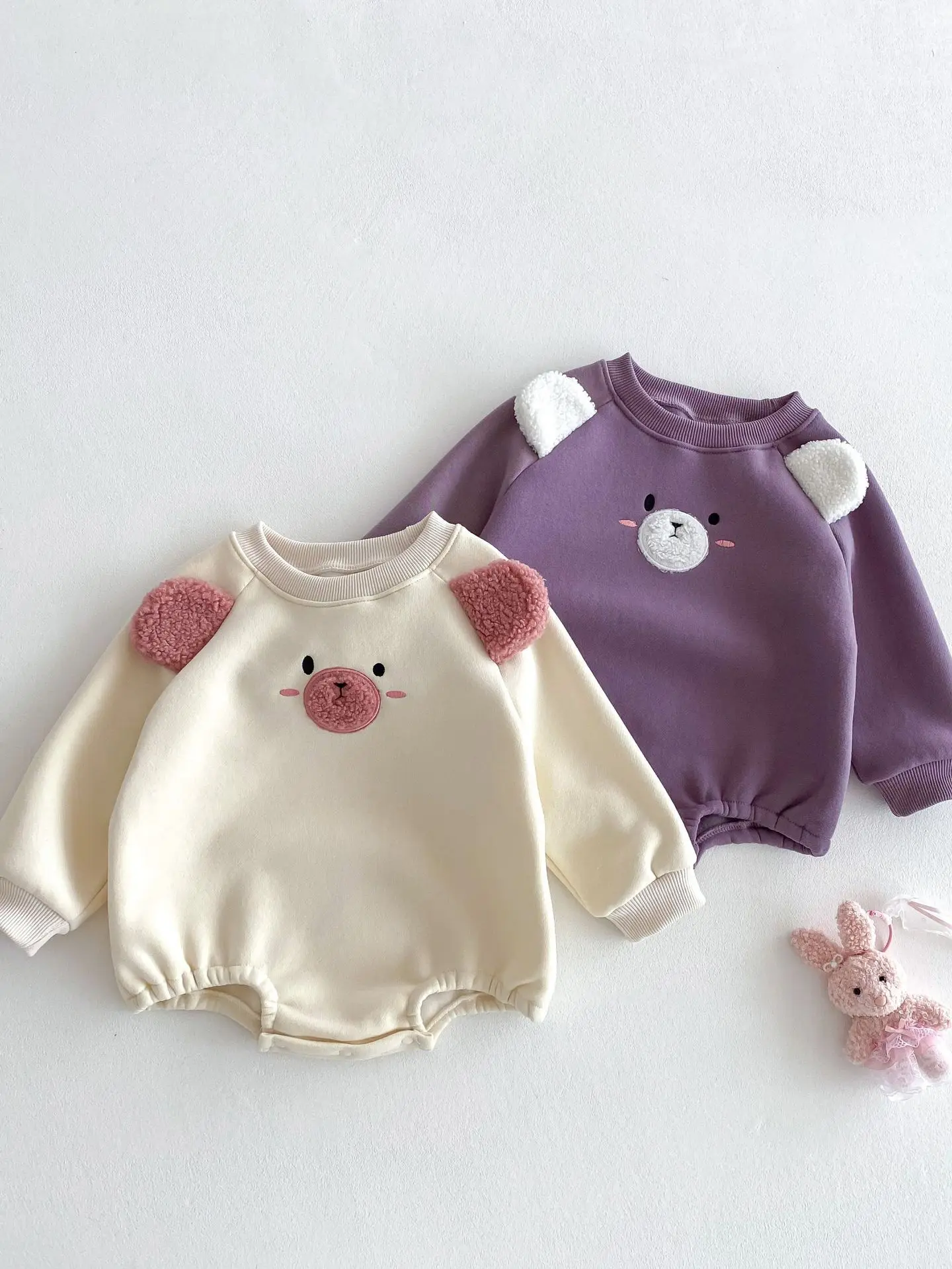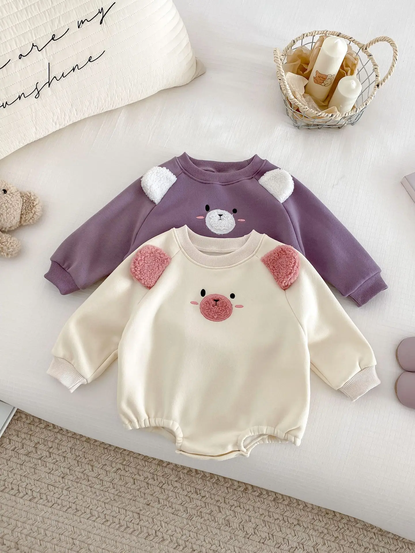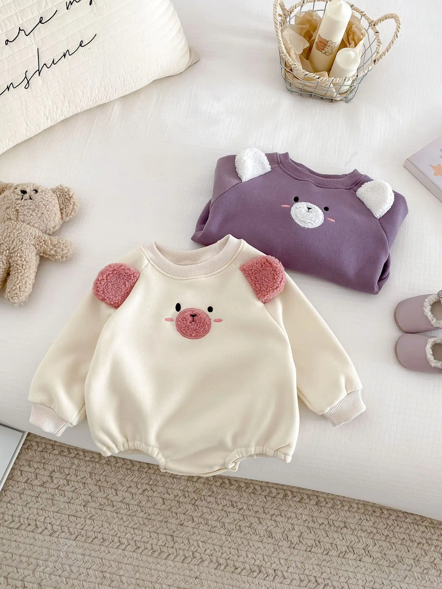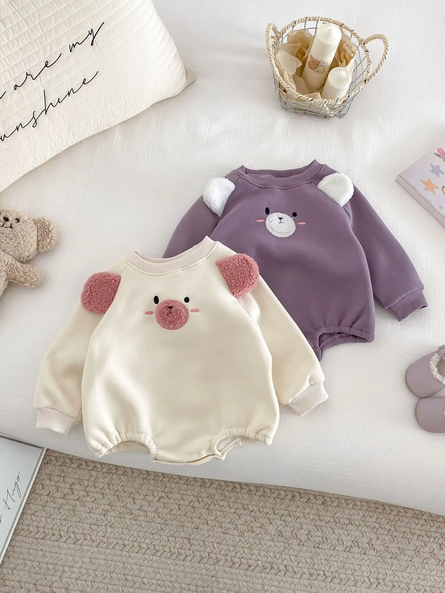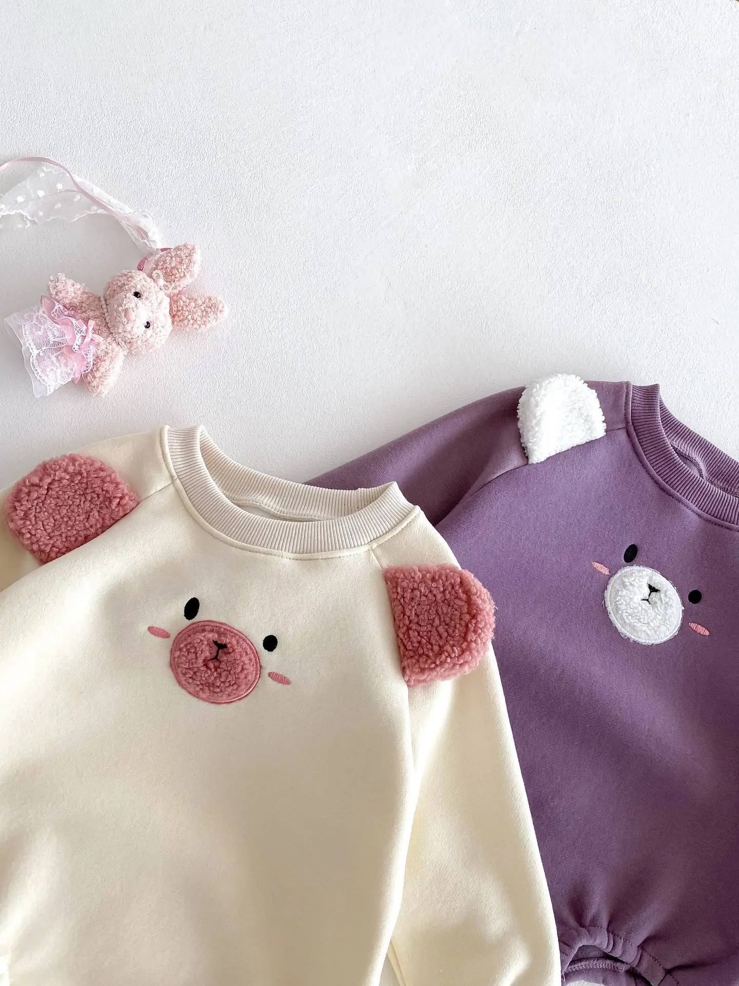 #ベビー服 #キッズファッション #アニマルフェイス #耳付きボディスーツ #裏フリース #韓国子供服 #冬用ロンパース