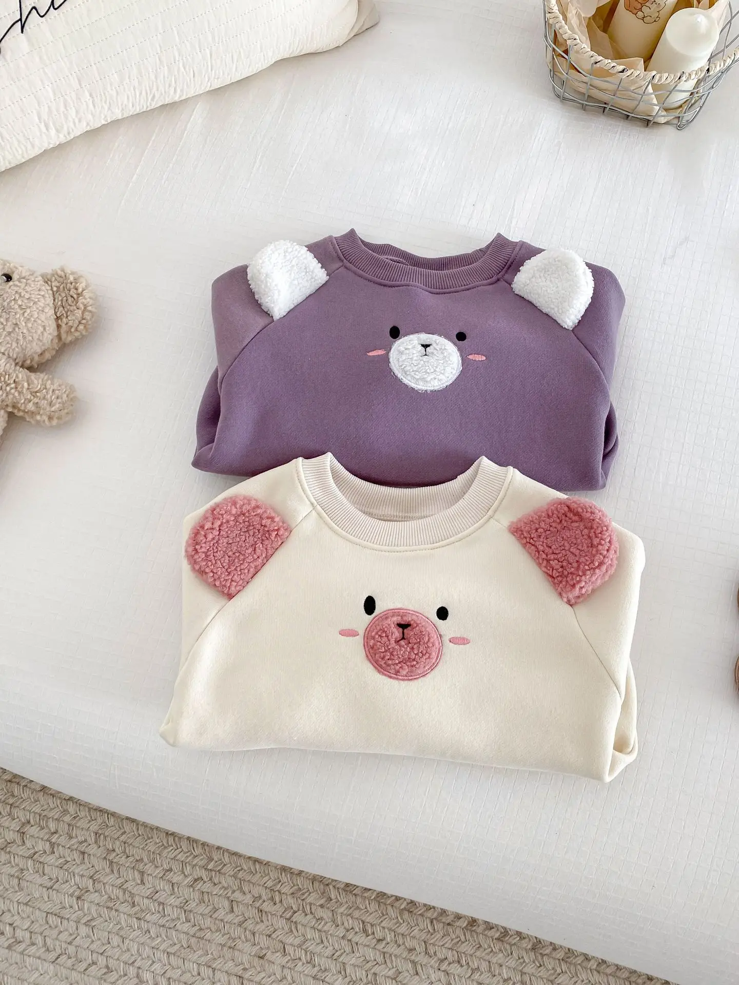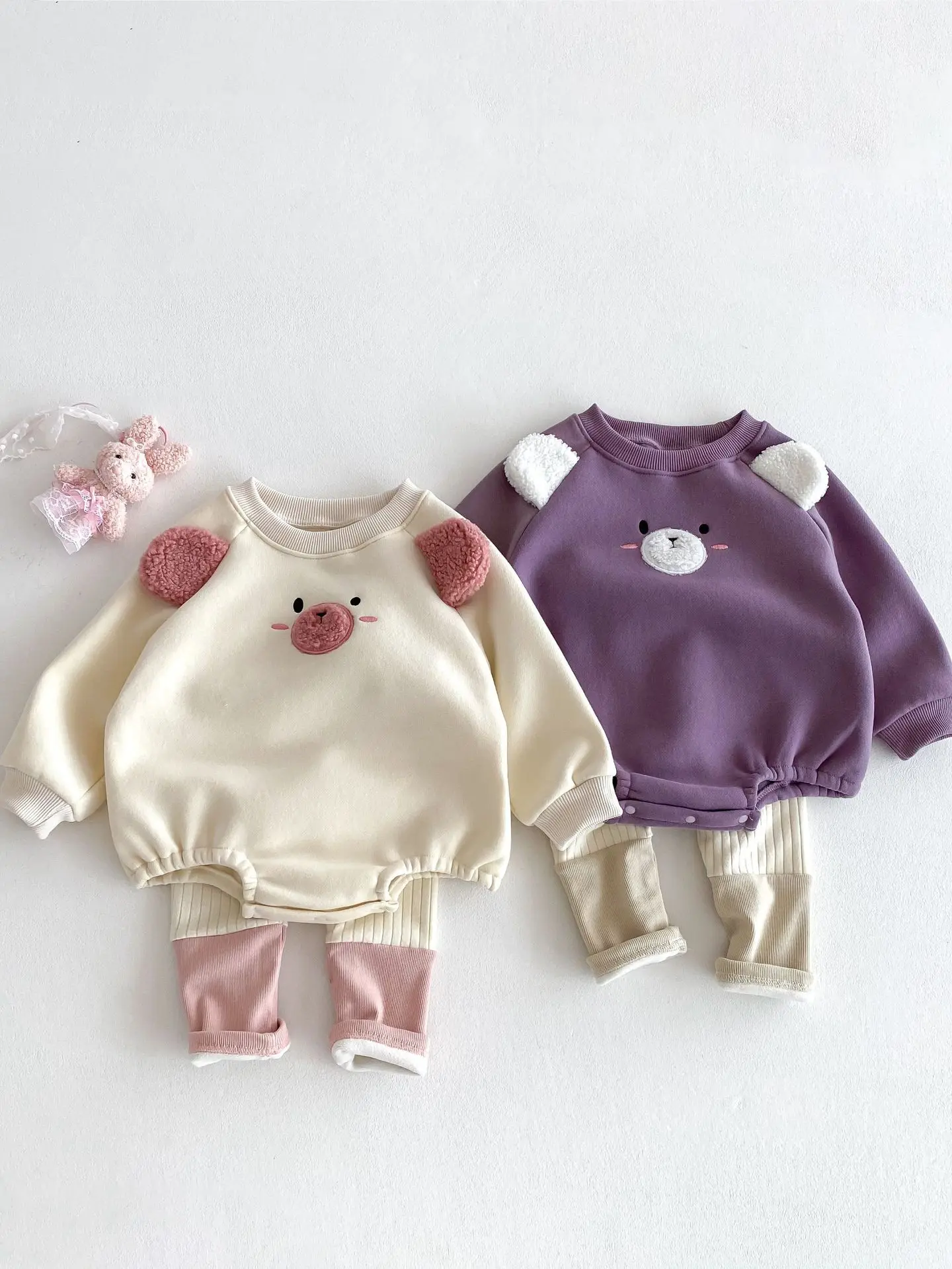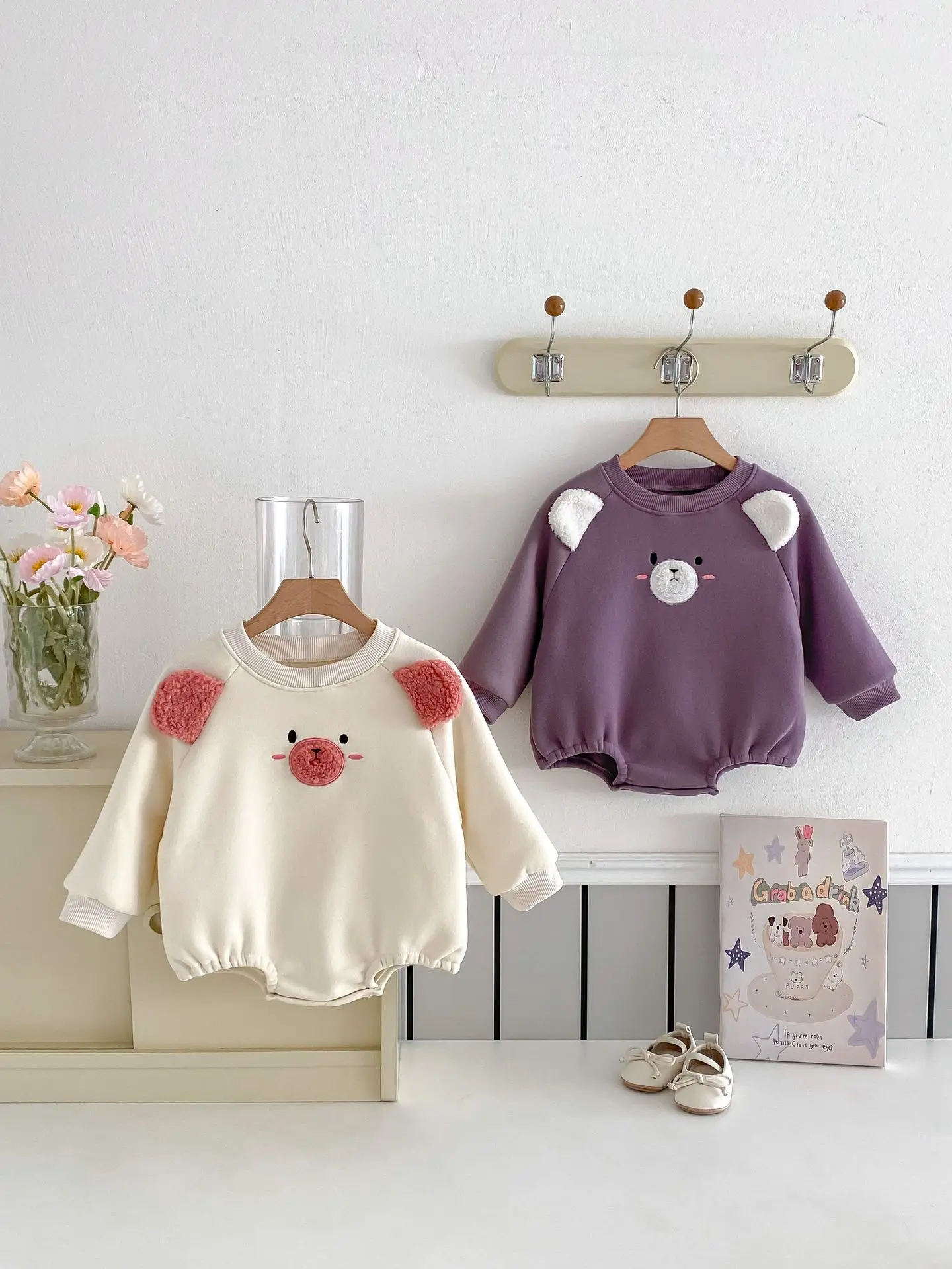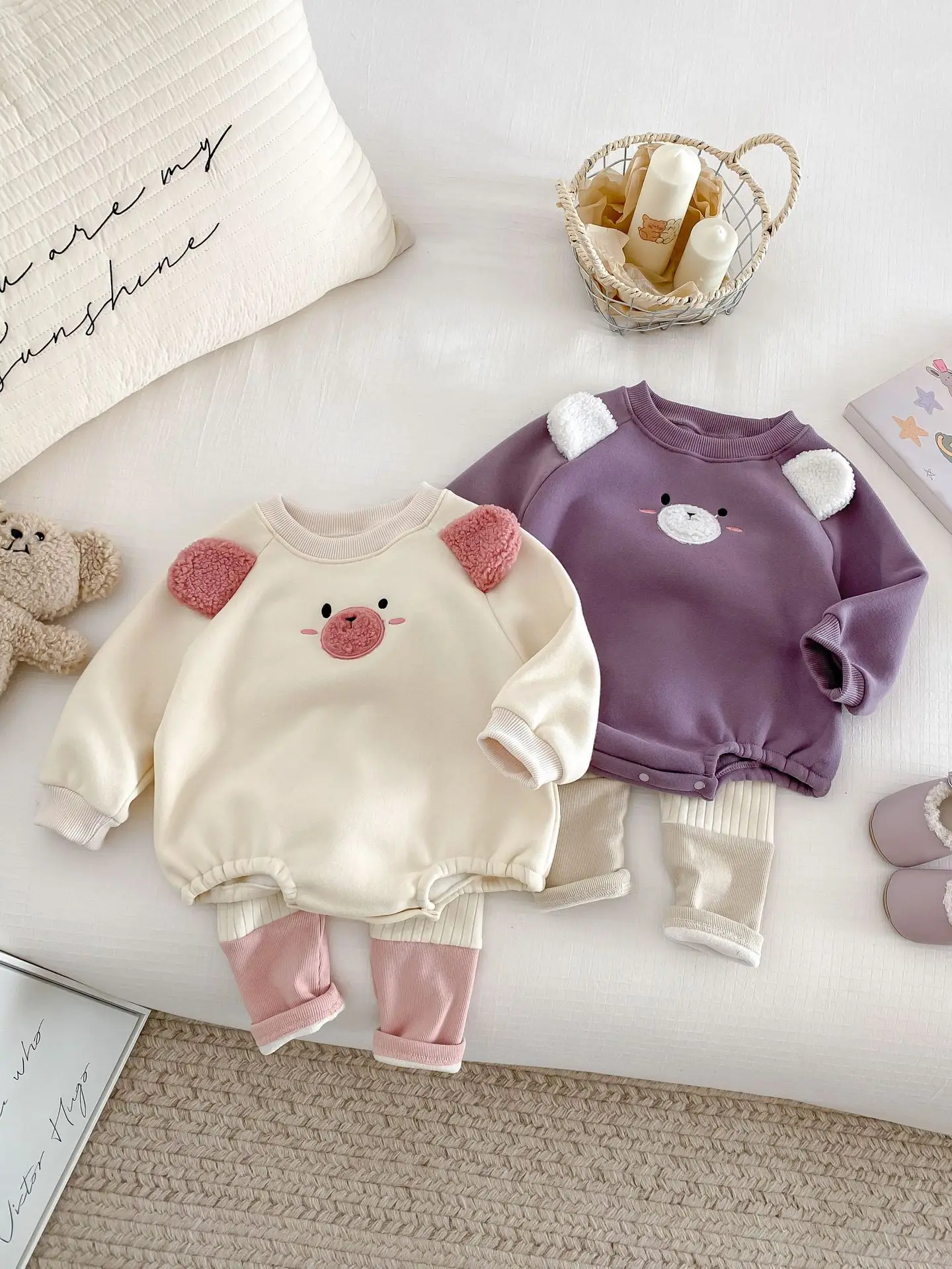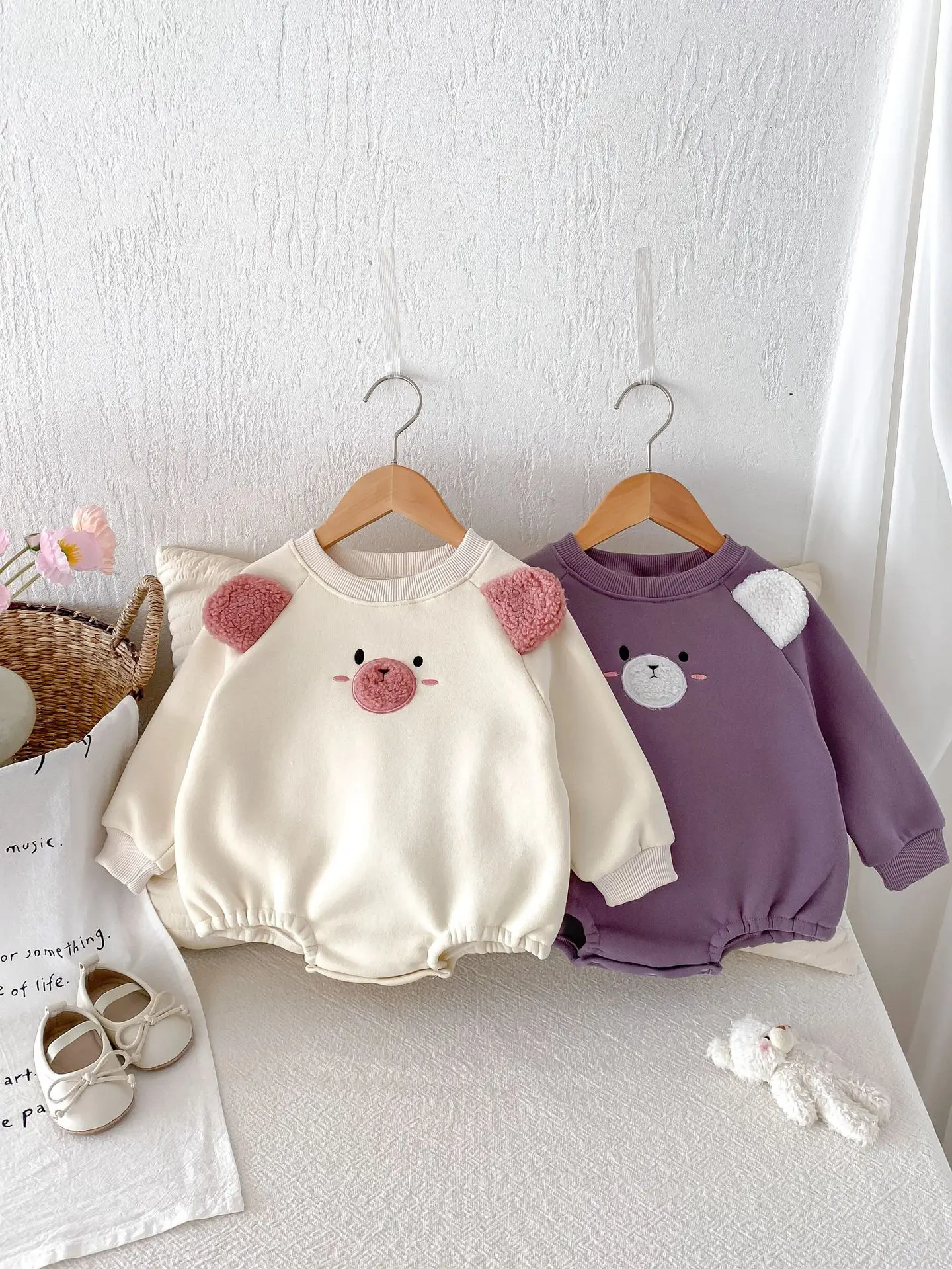#ベビー服 #キッズファッション #アニマルフェイス #耳付きボディスーツ #裏フリース #韓国子供服 #冬用ロンパース