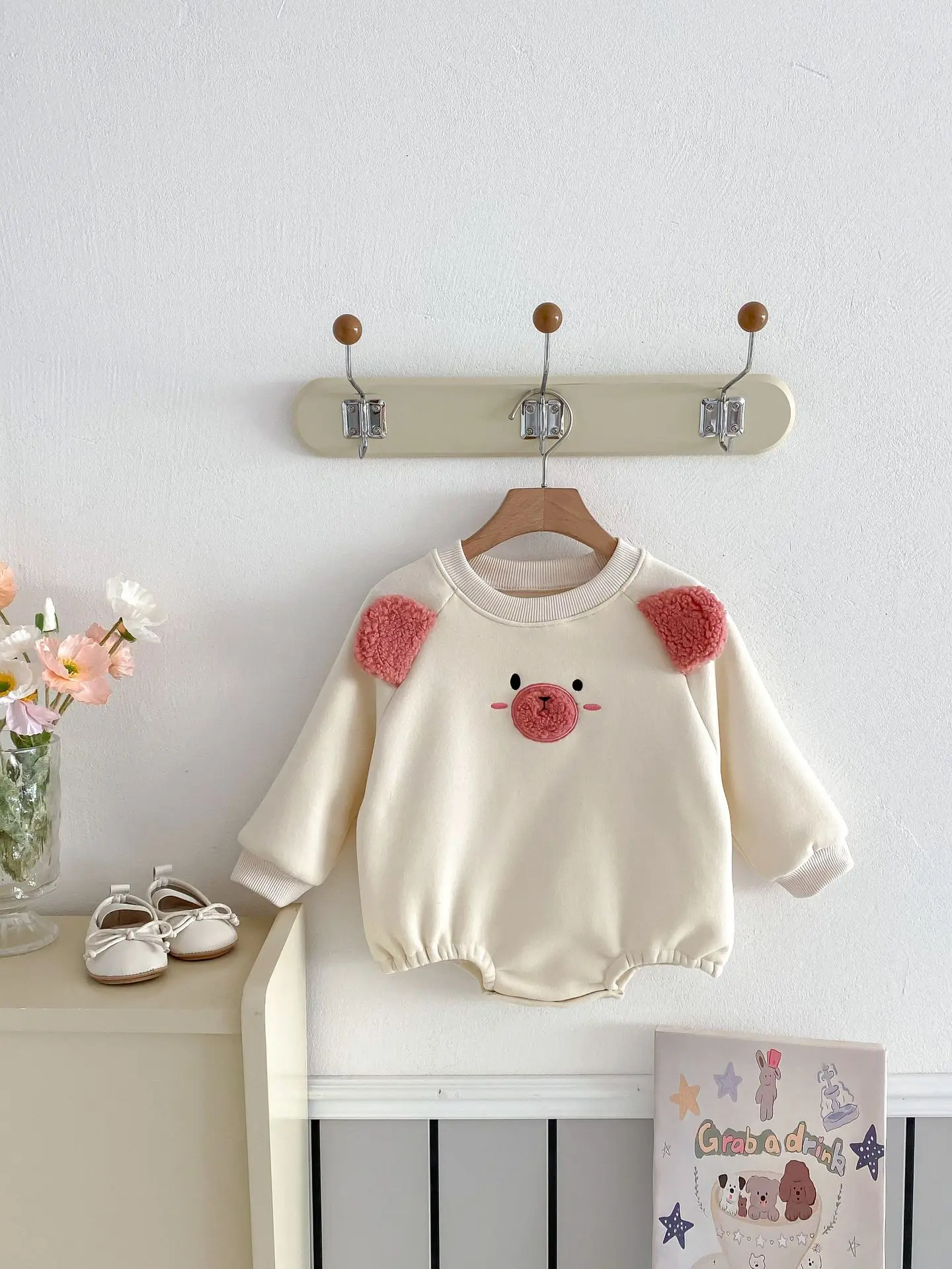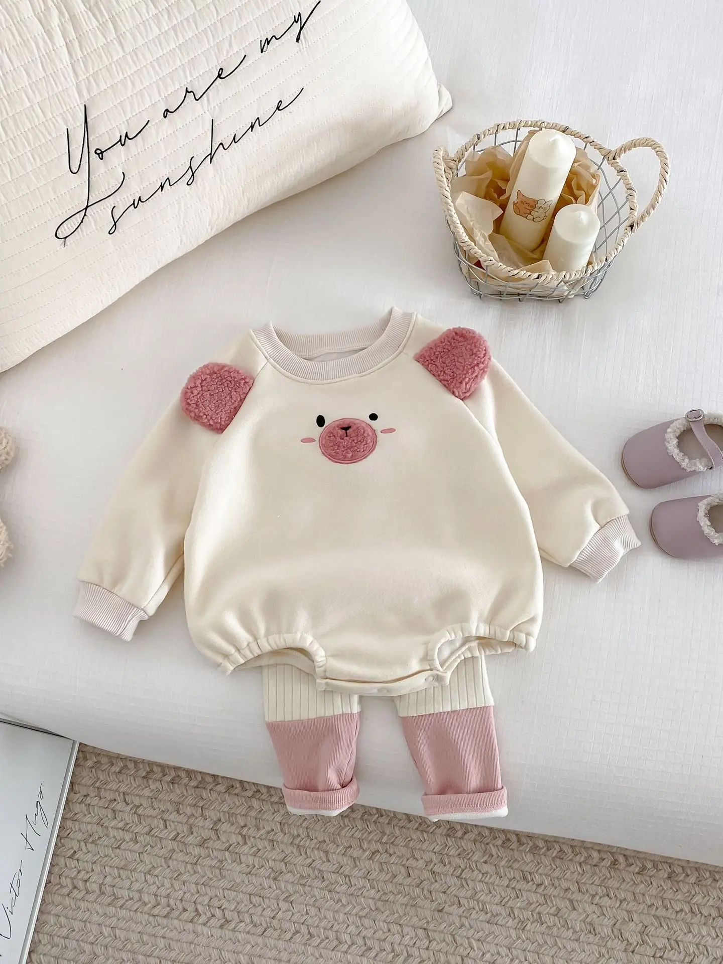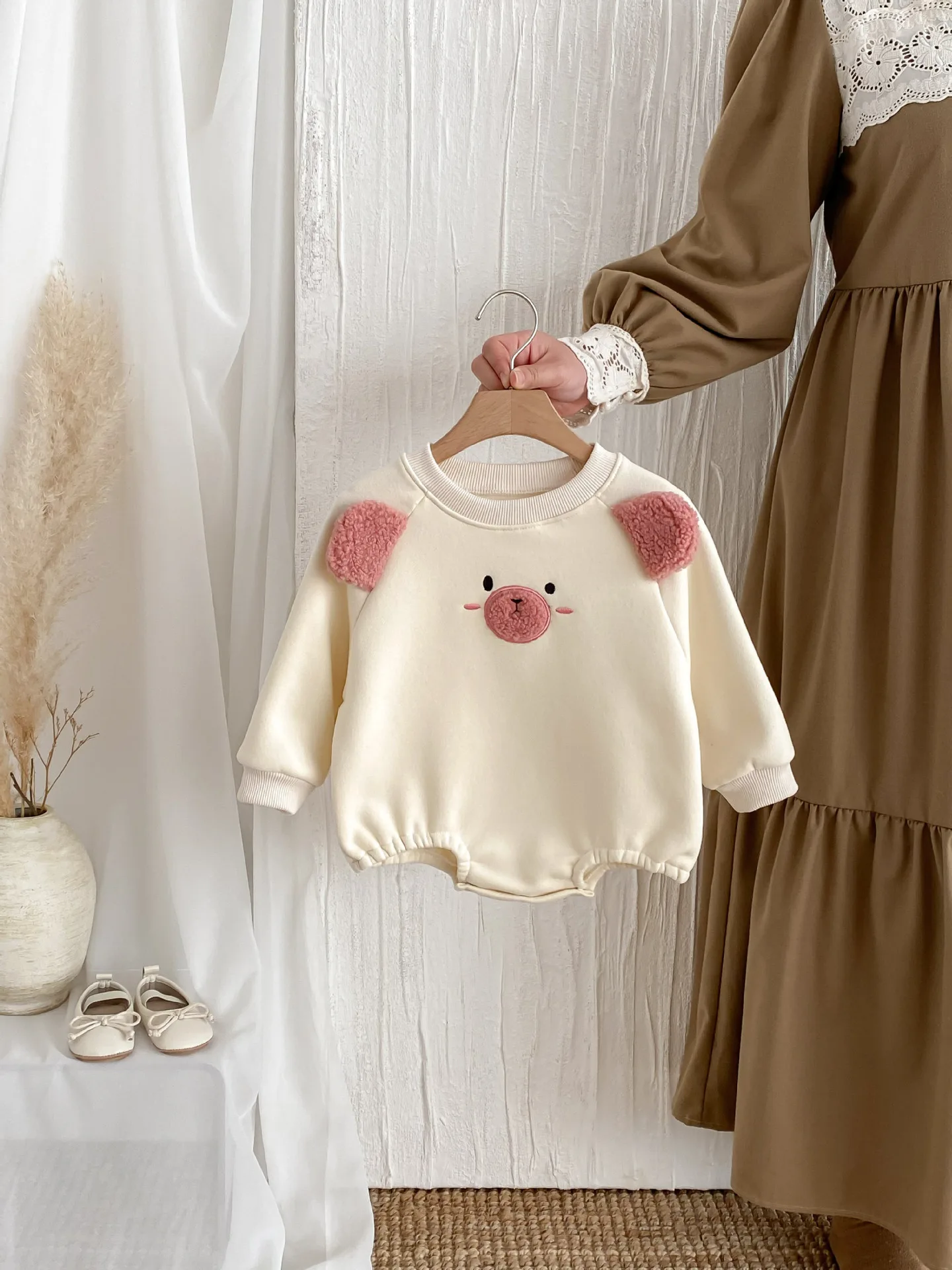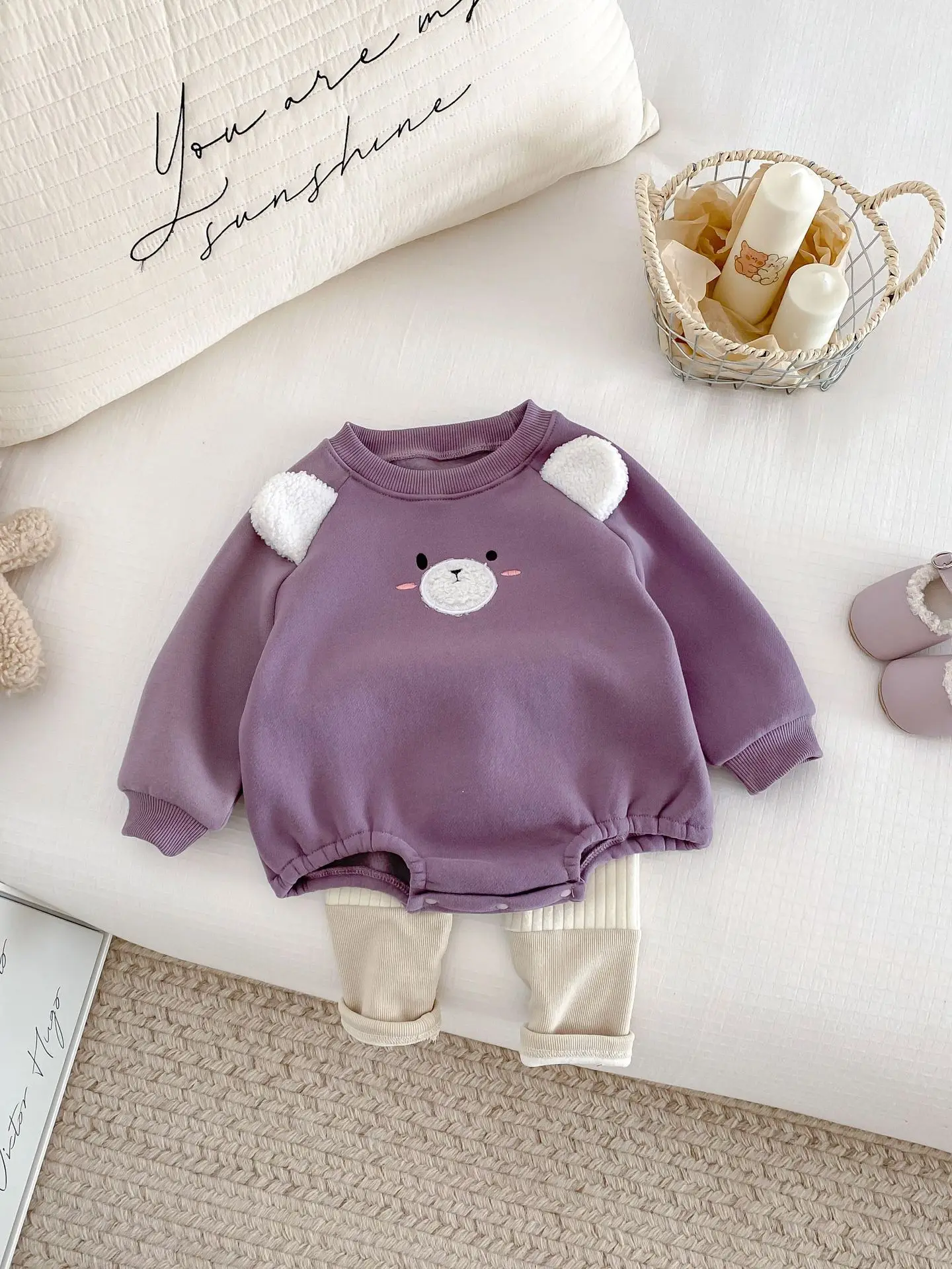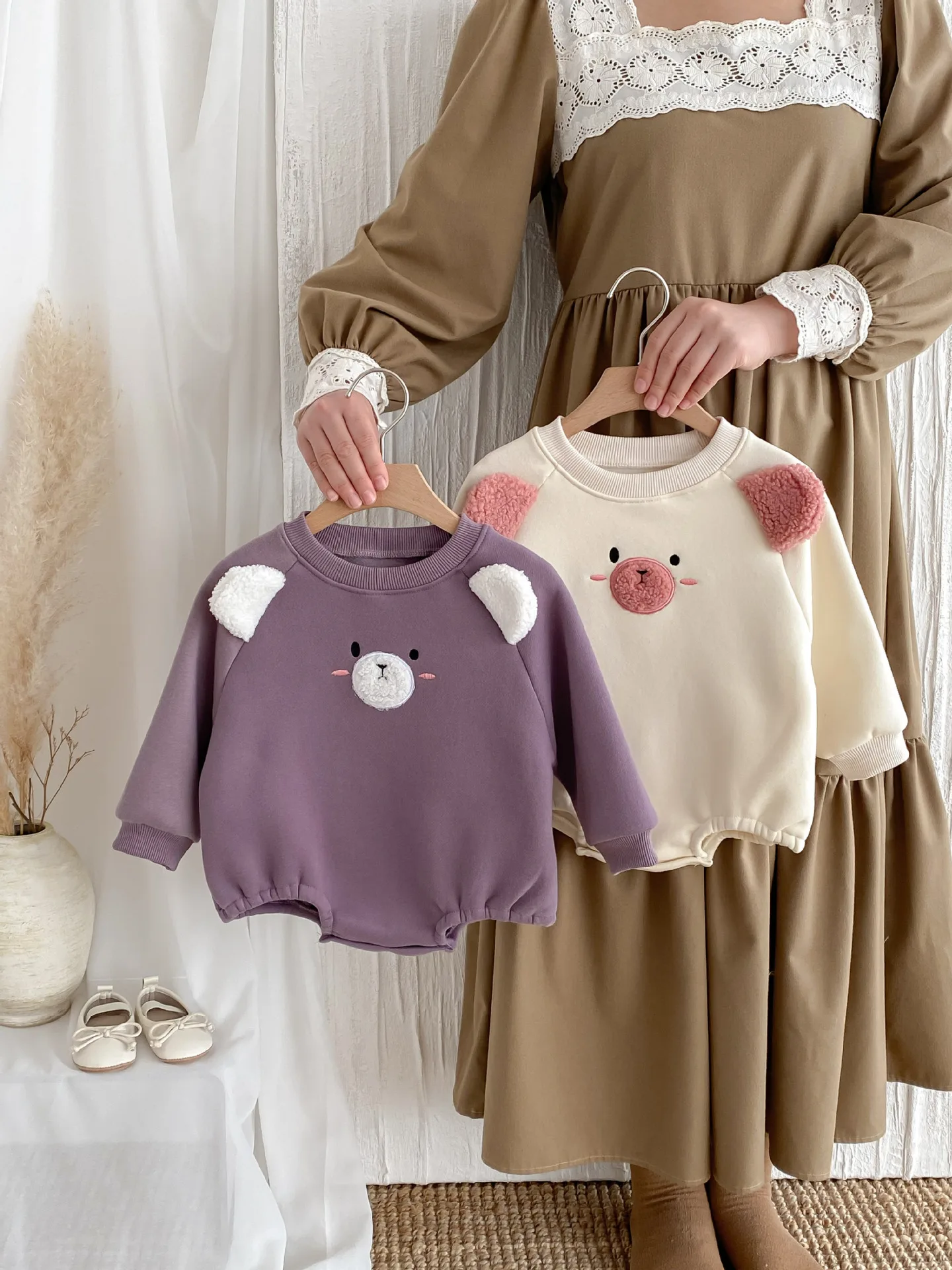 #ベビー服 #キッズファッション #アニマルフェイス #耳付きボディスーツ #裏フリース #韓国子供服 #冬用ロンパース