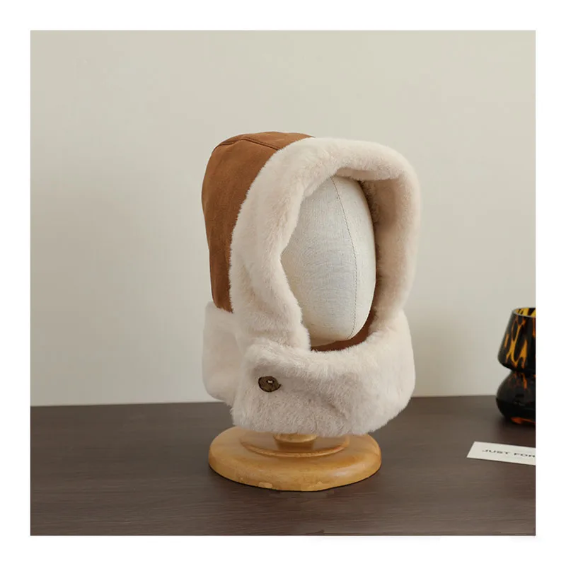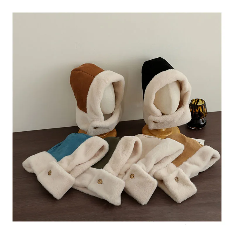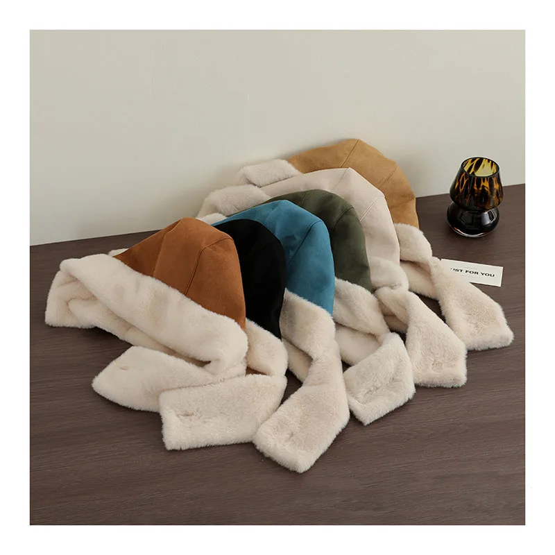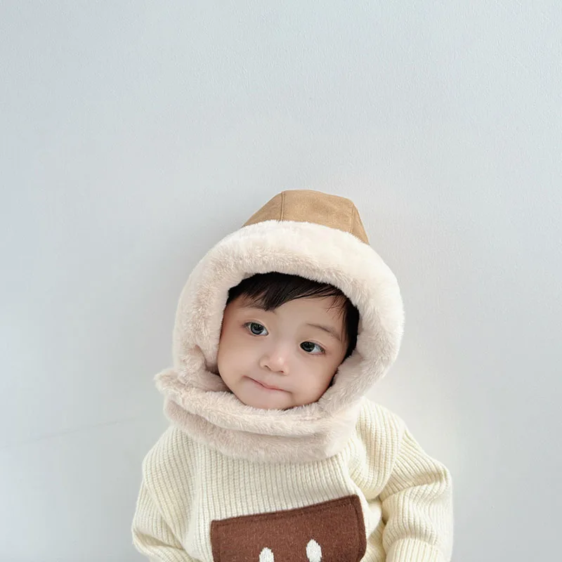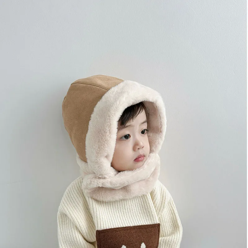 フェイクムートン素材で作られたこのドッキングフードキャップは、寒い季節にぴったりの温かさを提供します。フードとマフラーが一体となったデザインで、頭から耳までしっかりと保温でき、寒風を防ぎます。柔らかなベロア素材が肌に優しく、着け心地も抜群。男女問わず使えるシンプルでおしゃれなデザインが、普段のコーディネートにもぴったり。耳をしっかりと守るので、お出かけや遊びの時にも活躍するアイテムです。