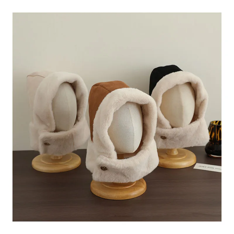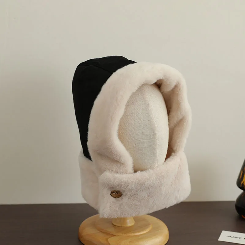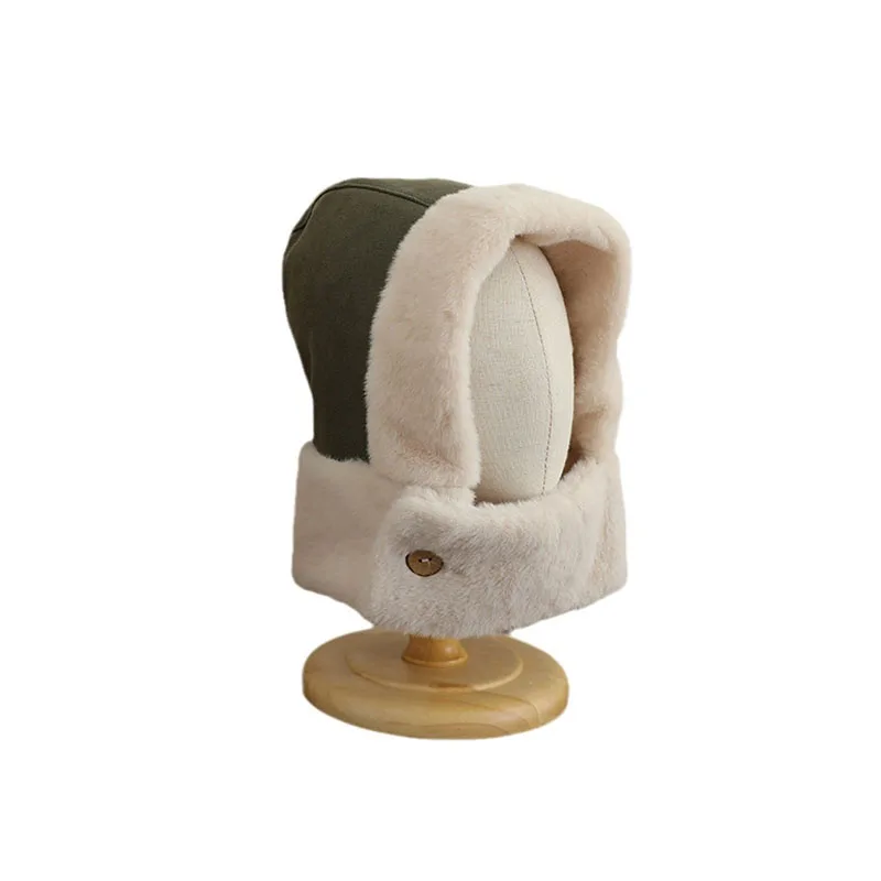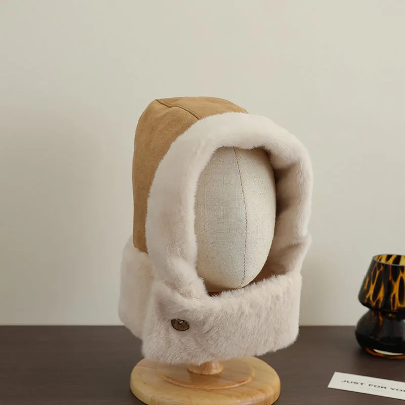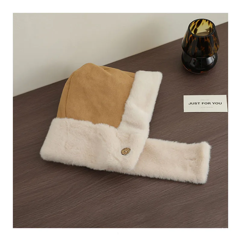 フェイクムートン素材で作られたこのドッキングフードキャップは、寒い季節にぴったりの温かさを提供します。フードとマフラーが一体となったデザインで、頭から耳までしっかりと保温でき、寒風を防ぎます。柔らかなベロア素材が肌に優しく、着け心地も抜群。男女問わず使えるシンプルでおしゃれなデザインが、普段のコーディネートにもぴったり。耳をしっかりと守るので、お出かけや遊びの時にも活躍するアイテムです。