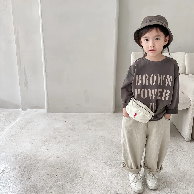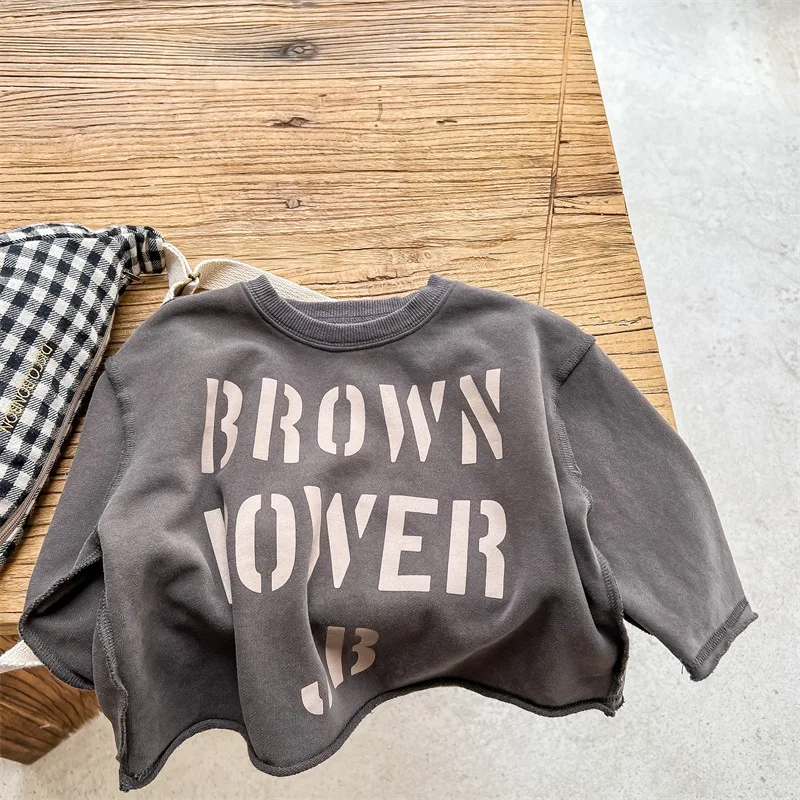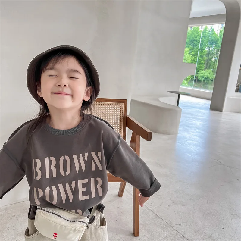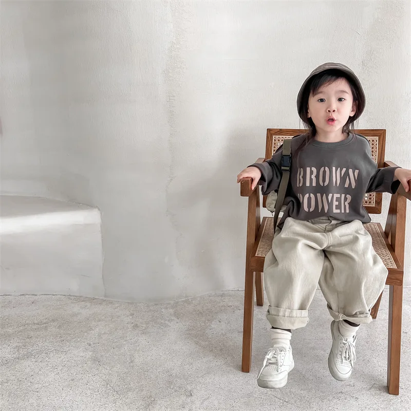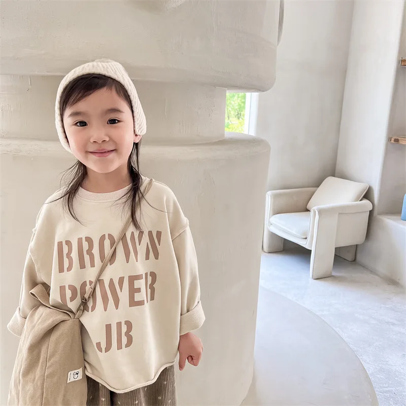 レターロゴプリントが特徴的なこのキッズトップスは、秋冬のスタイリングにぴったりのアイテムです。長袖スウェットTシャツは、柔らかなコットン素材で作られており、肌触りが良く、快適な着心地を提供します。カジュアルなデザインは、男女問わず着用できるため、さまざまなコーディネートに合わせやすいのが魅力です。おしゃれでありながら動きやすく、遊びやお出かけに最適な一枚です。デイリーウェアとして、ぜひワードローブに加えておきたいアイテムです。