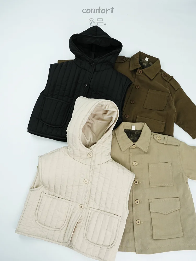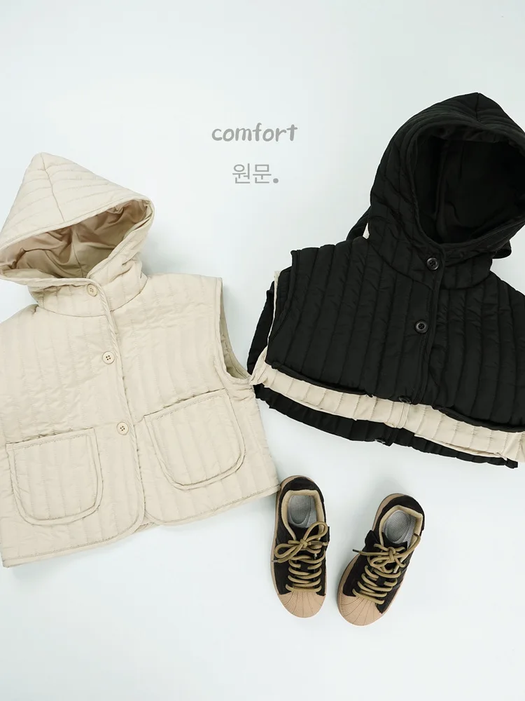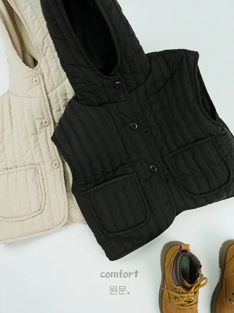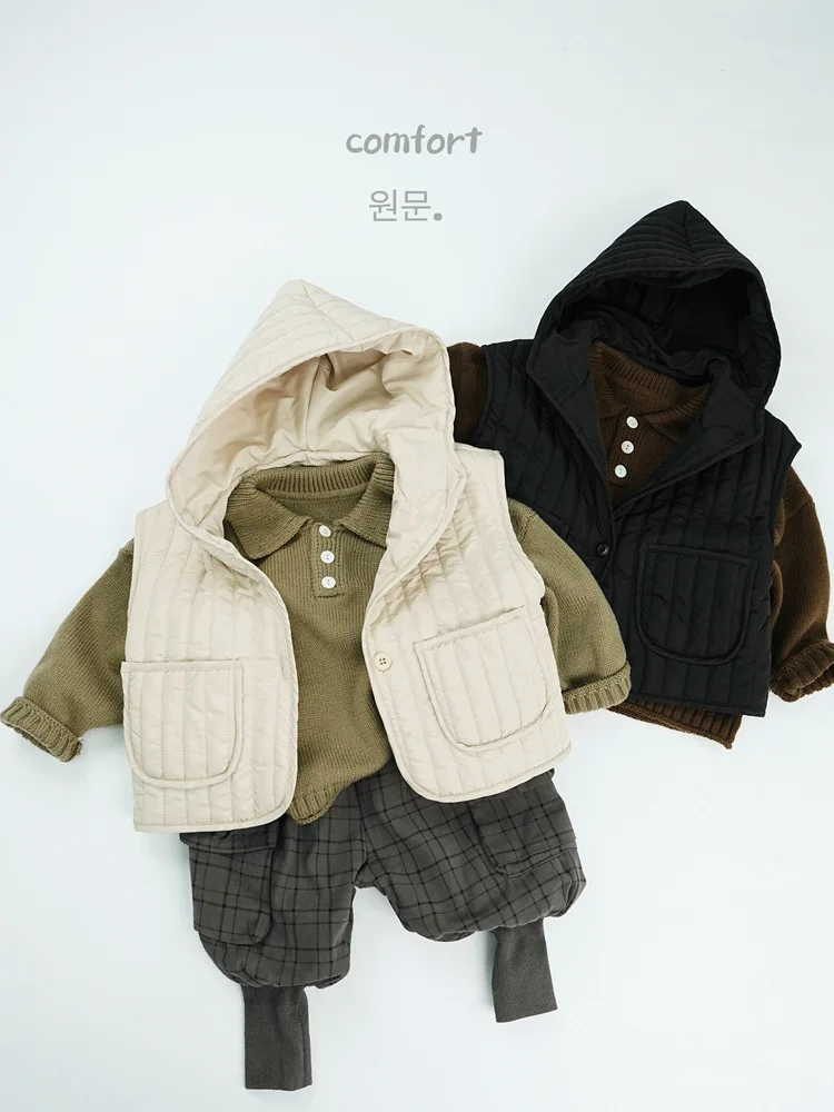 #キッズファッション #ベビー服 #キルティングベスト #フード付き #アウターベスト #韓国子供服 #冬用アウター