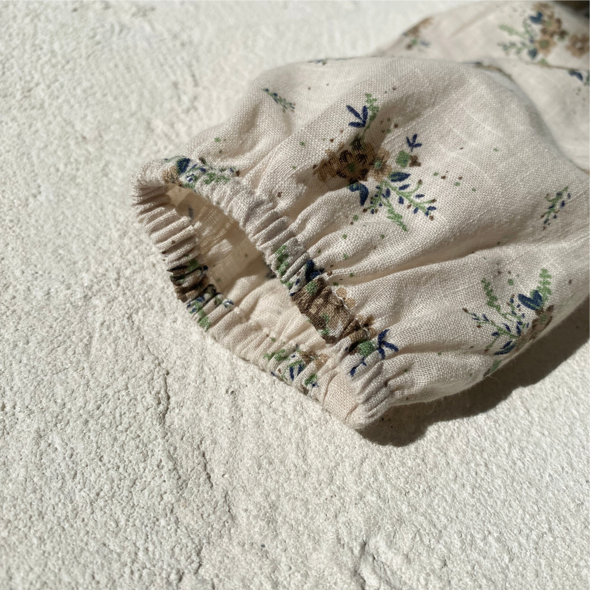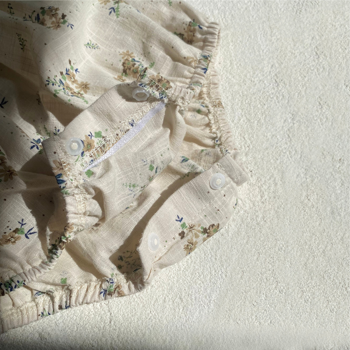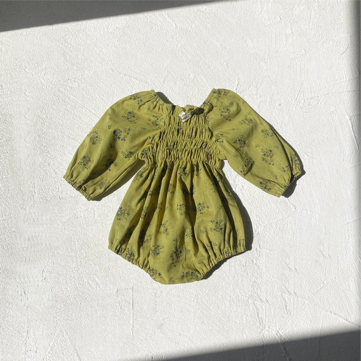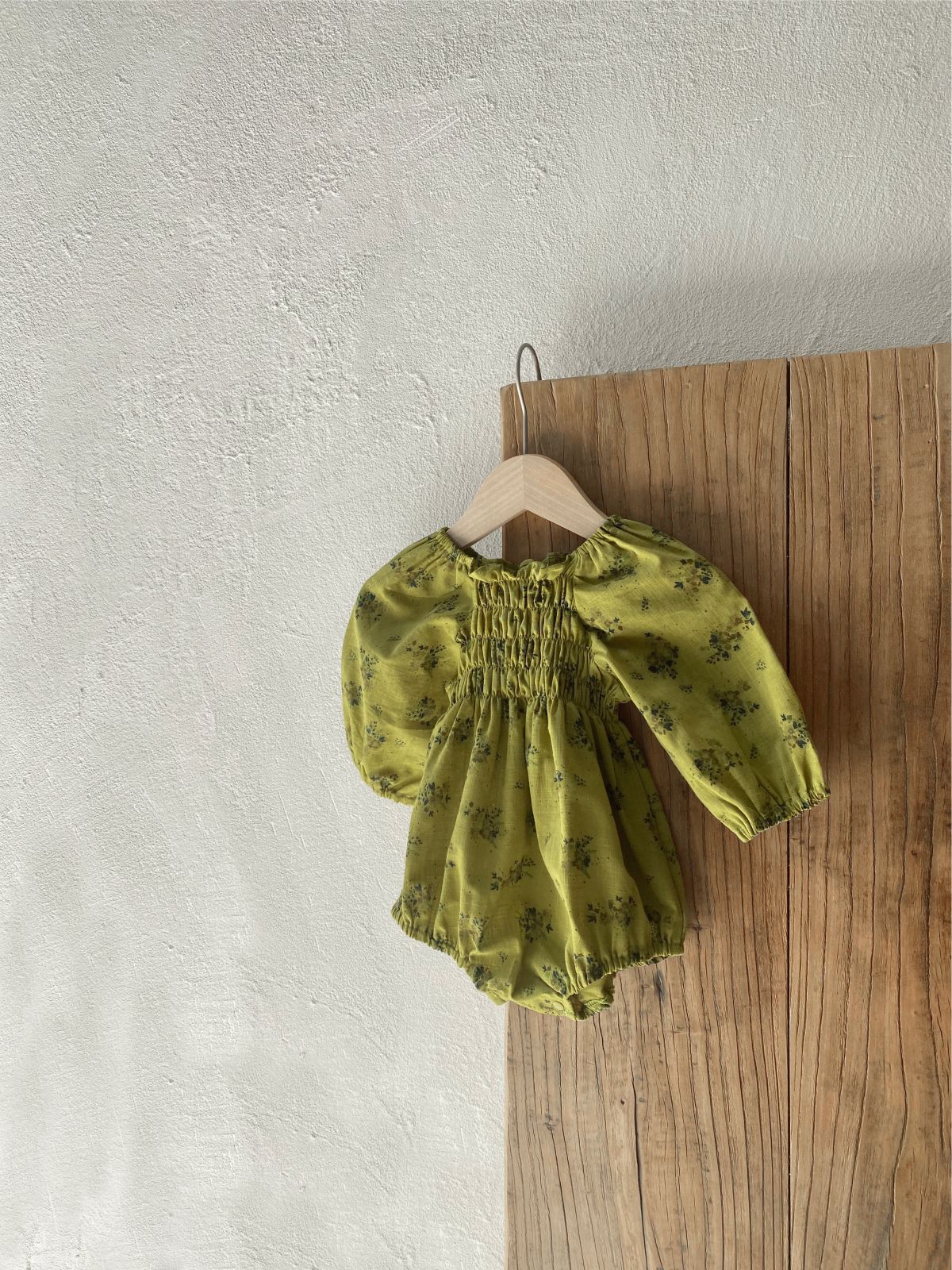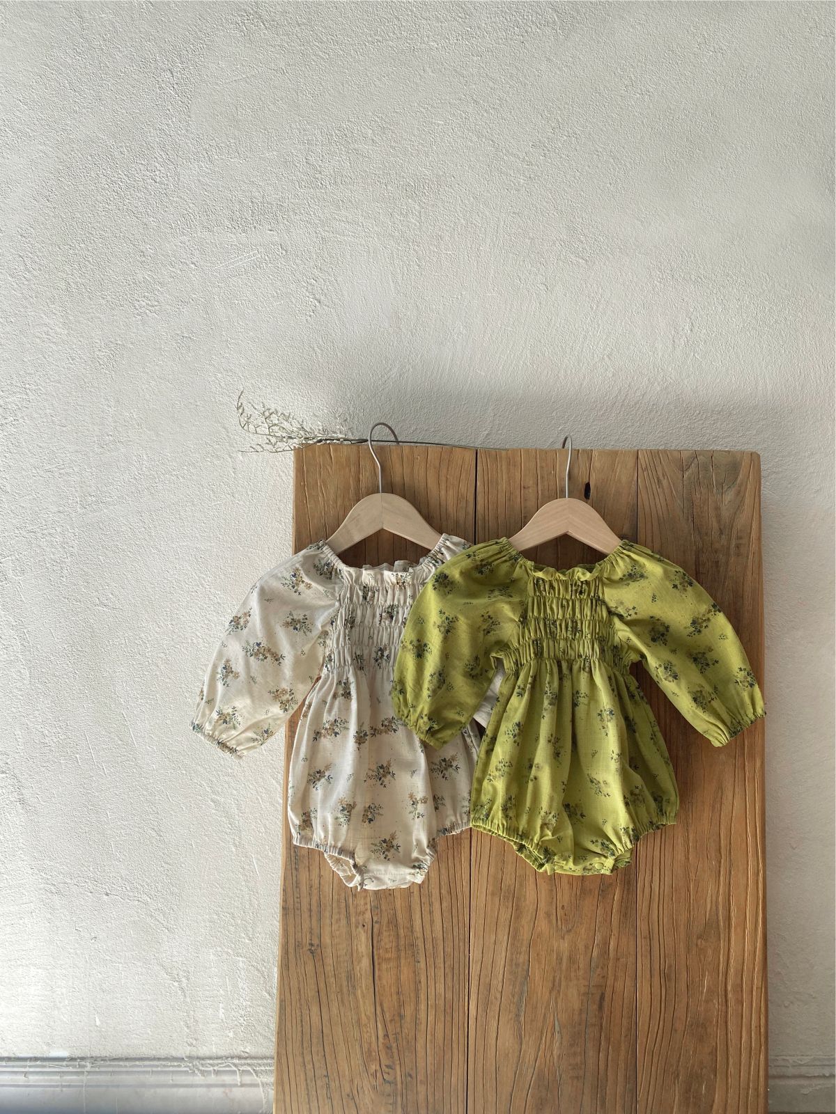 ベビーロンパース フラワープリント長袖パフスリーブスモックボディスーツ【mh0009039】