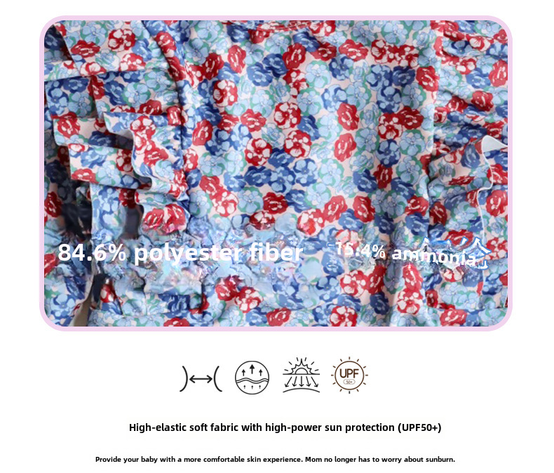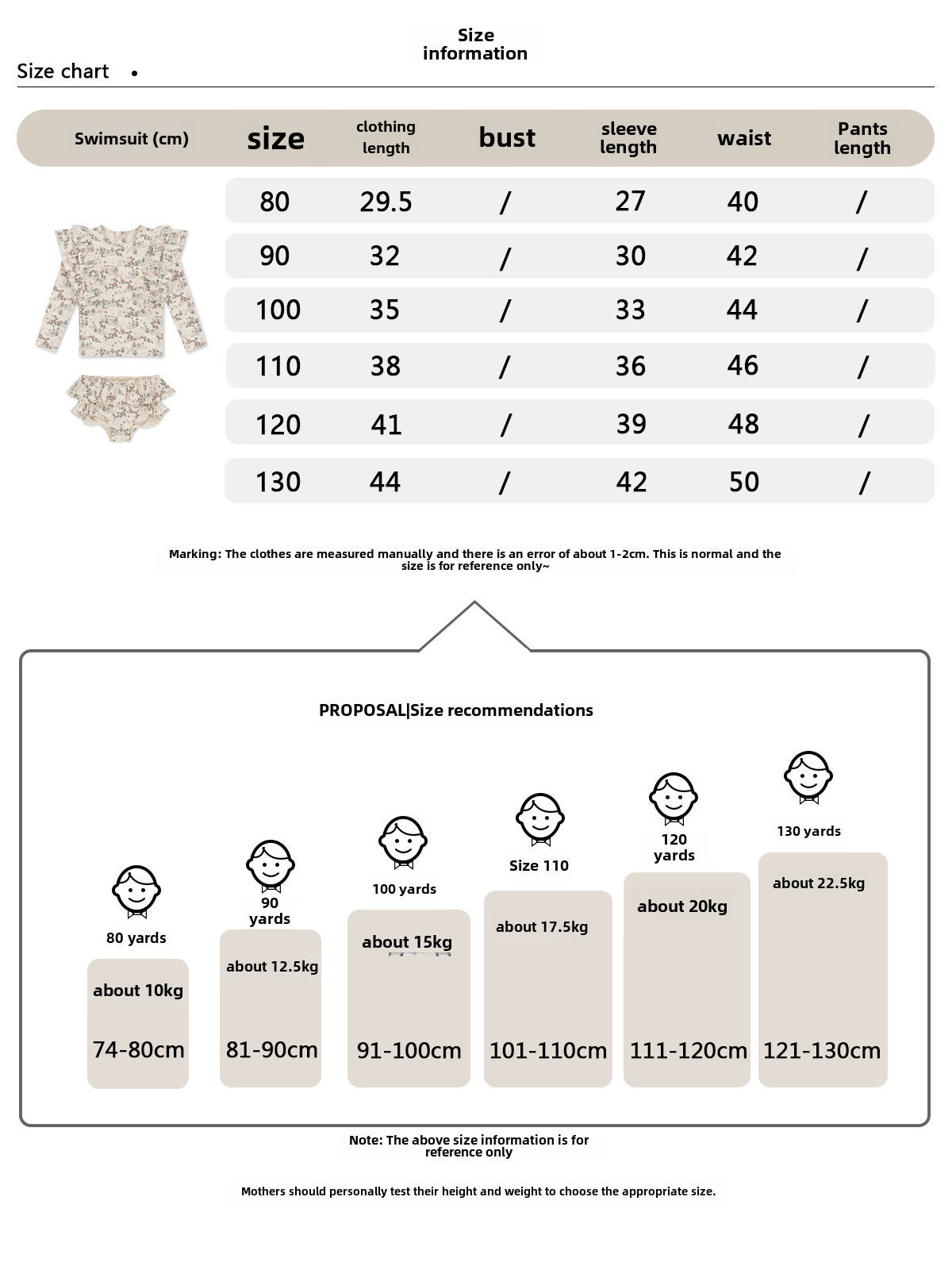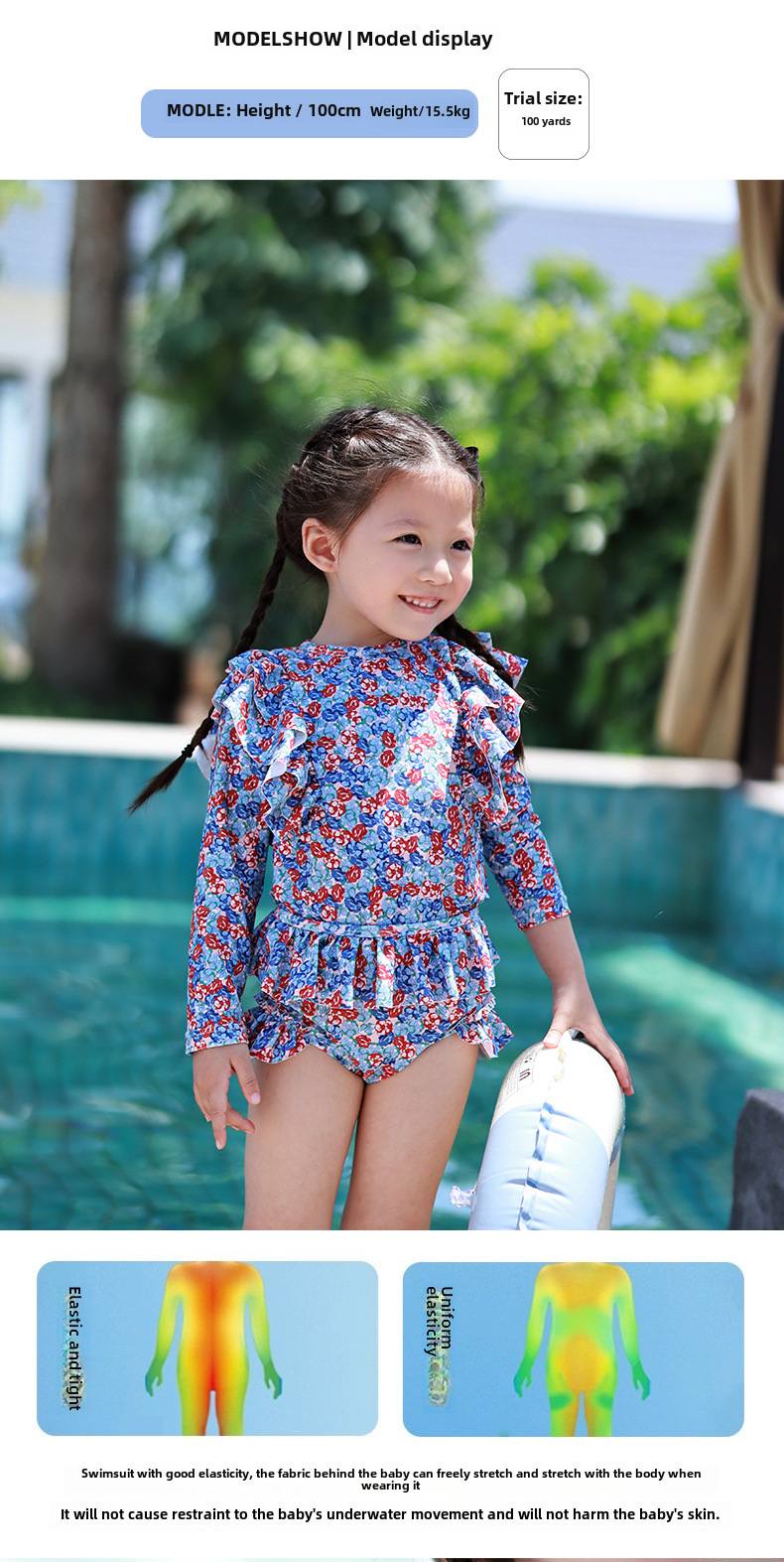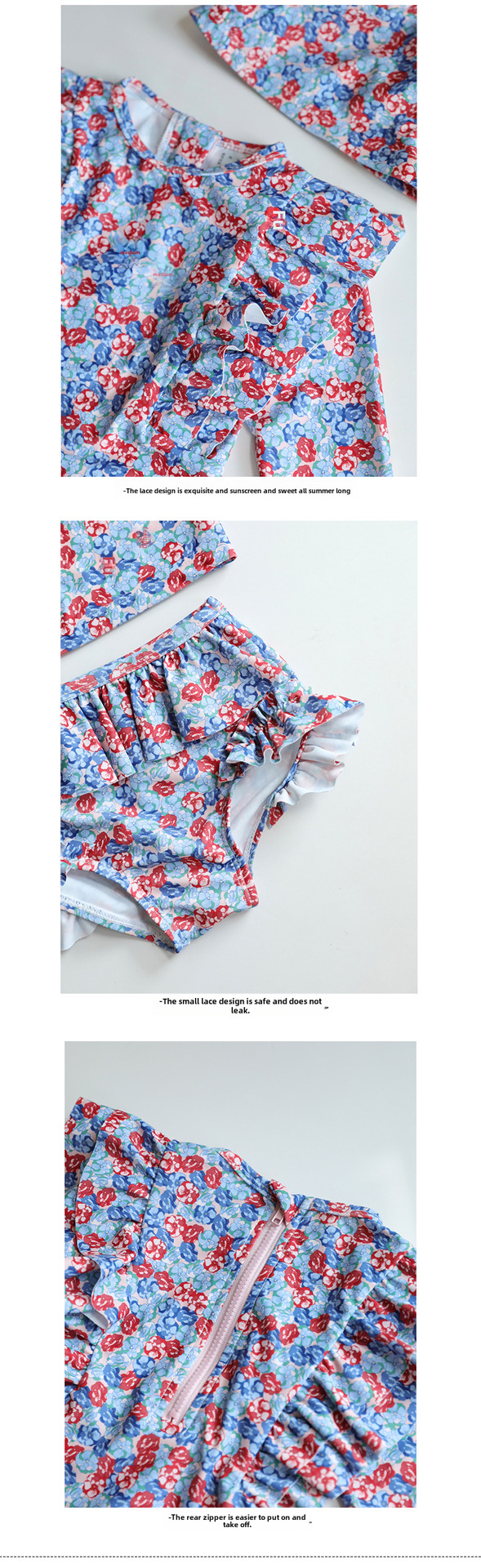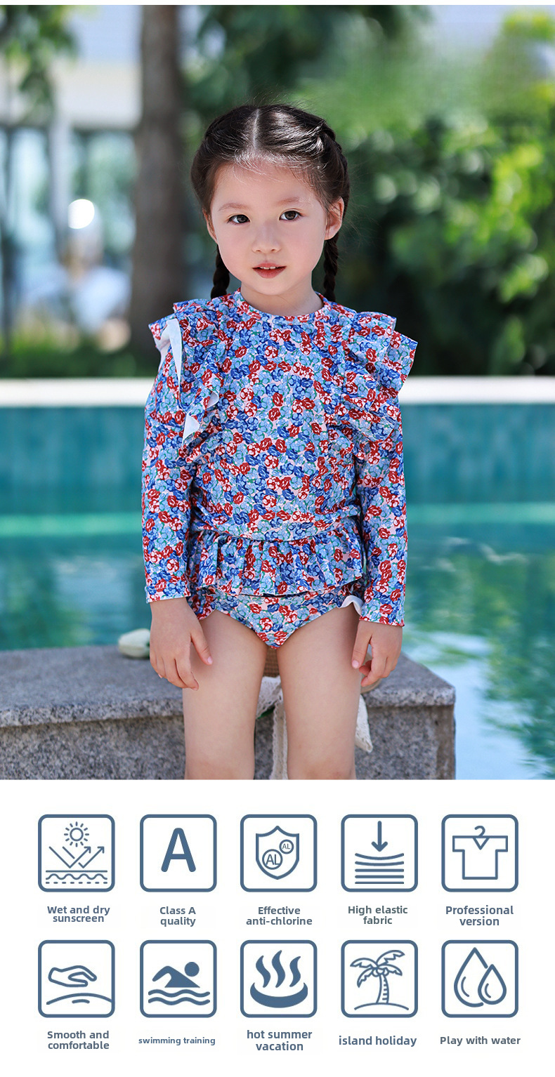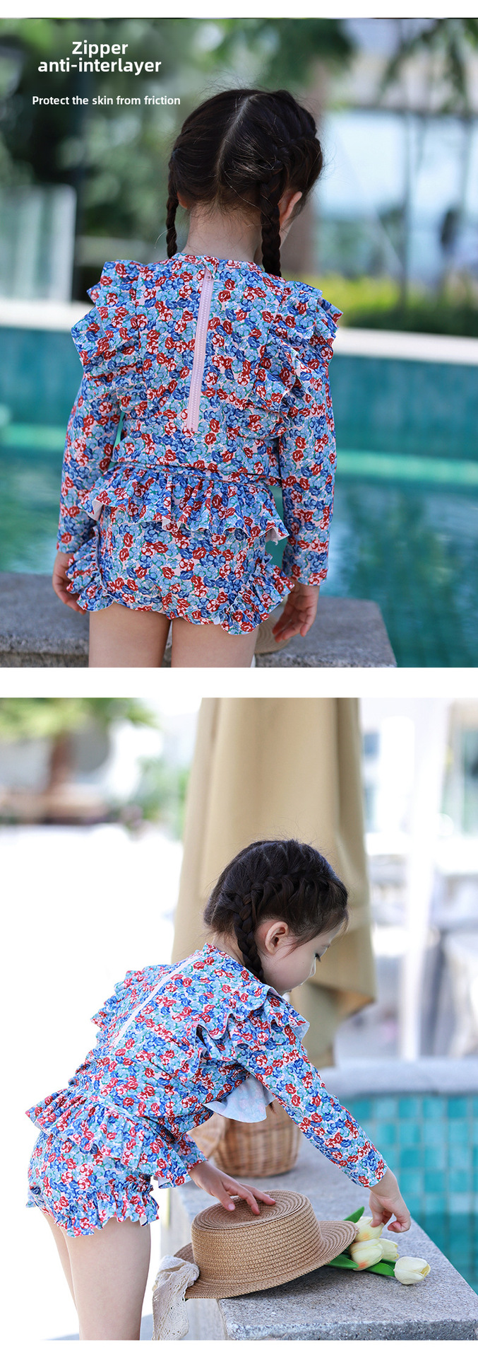 キッズ水着 ガールズ長袖セパレートフリルスイムウェア チェリー/フラワー 帽子セット【mh0009084】