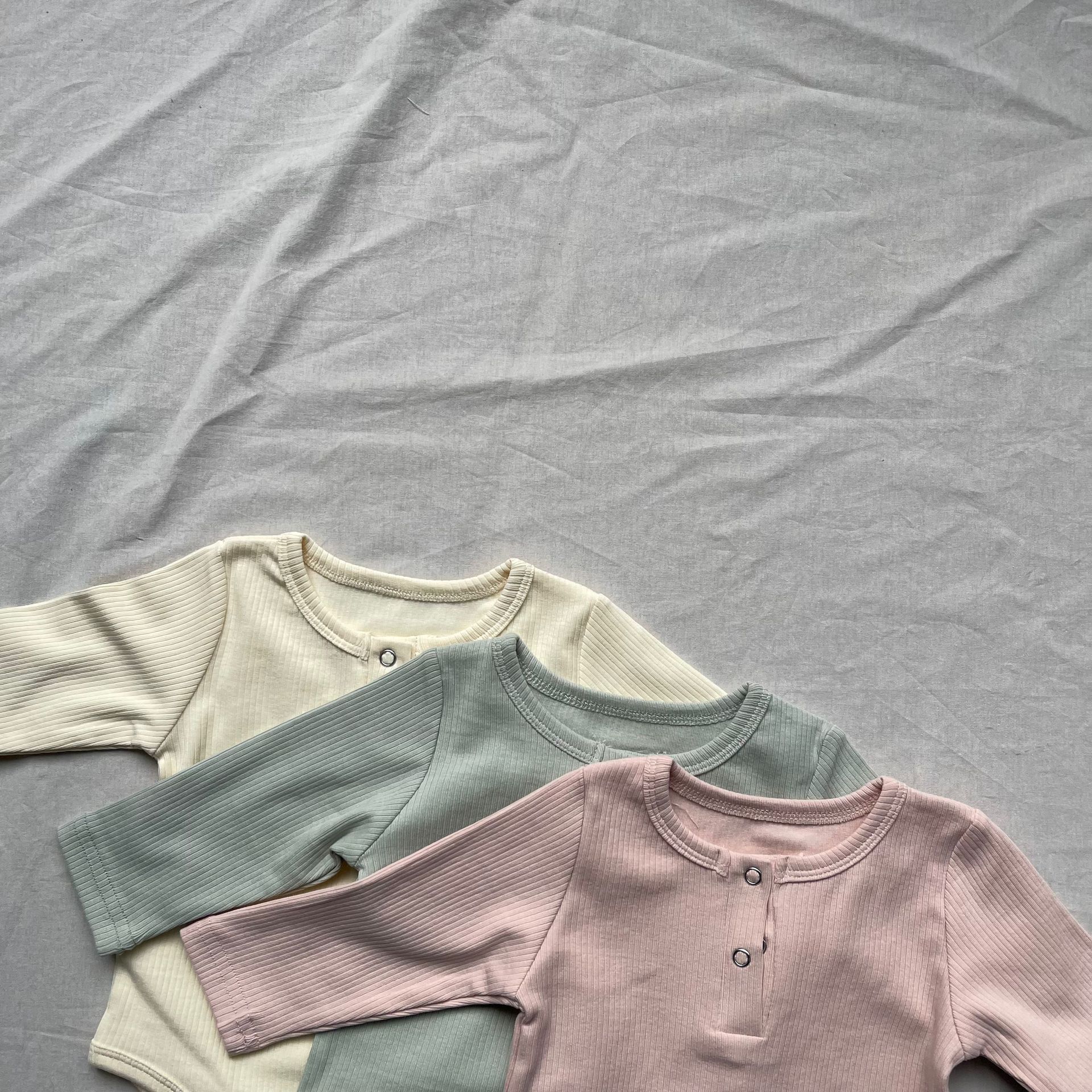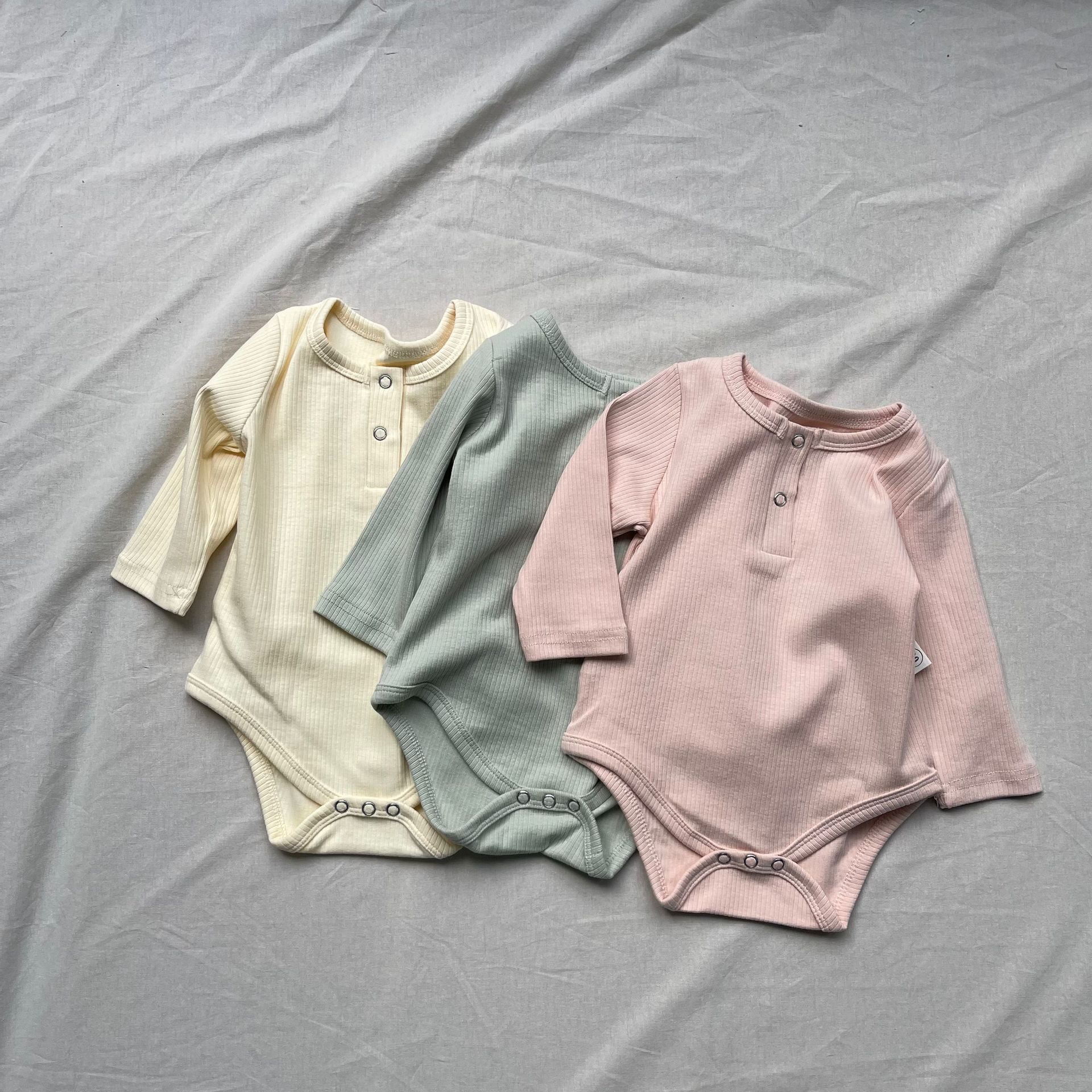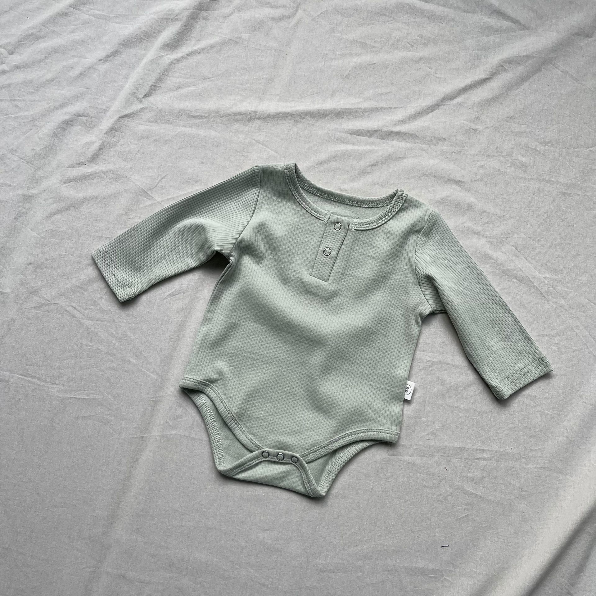 ベビーロンパース ヘンリーネックシンプル長袖ボディスーツ【mh0009171】