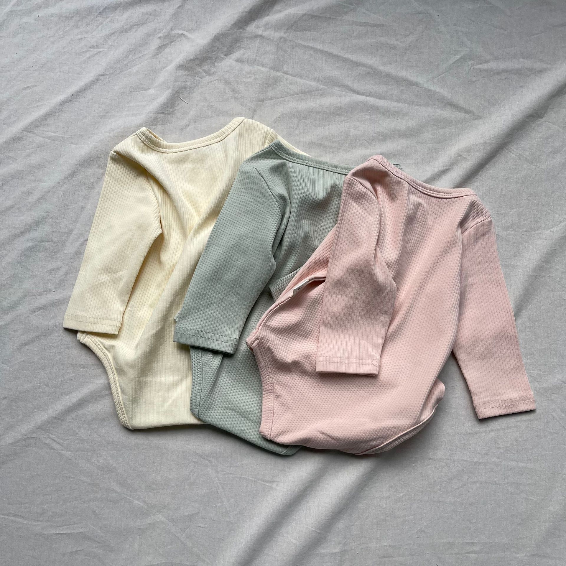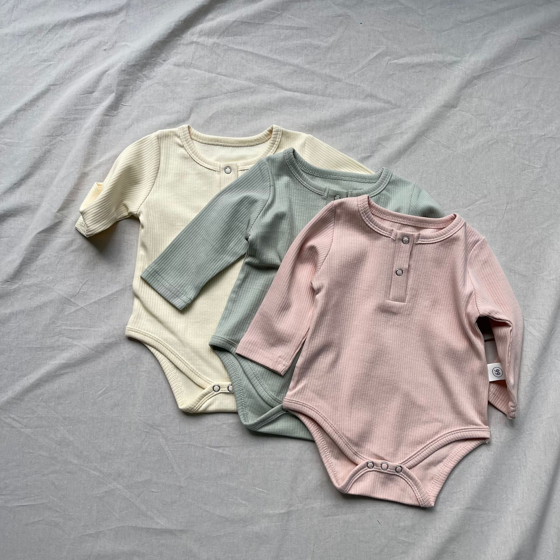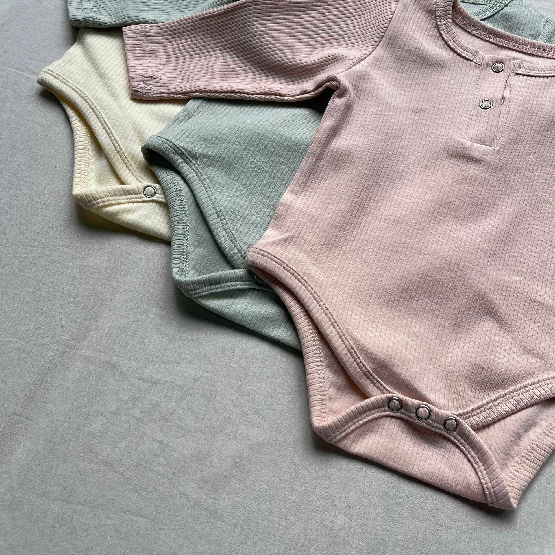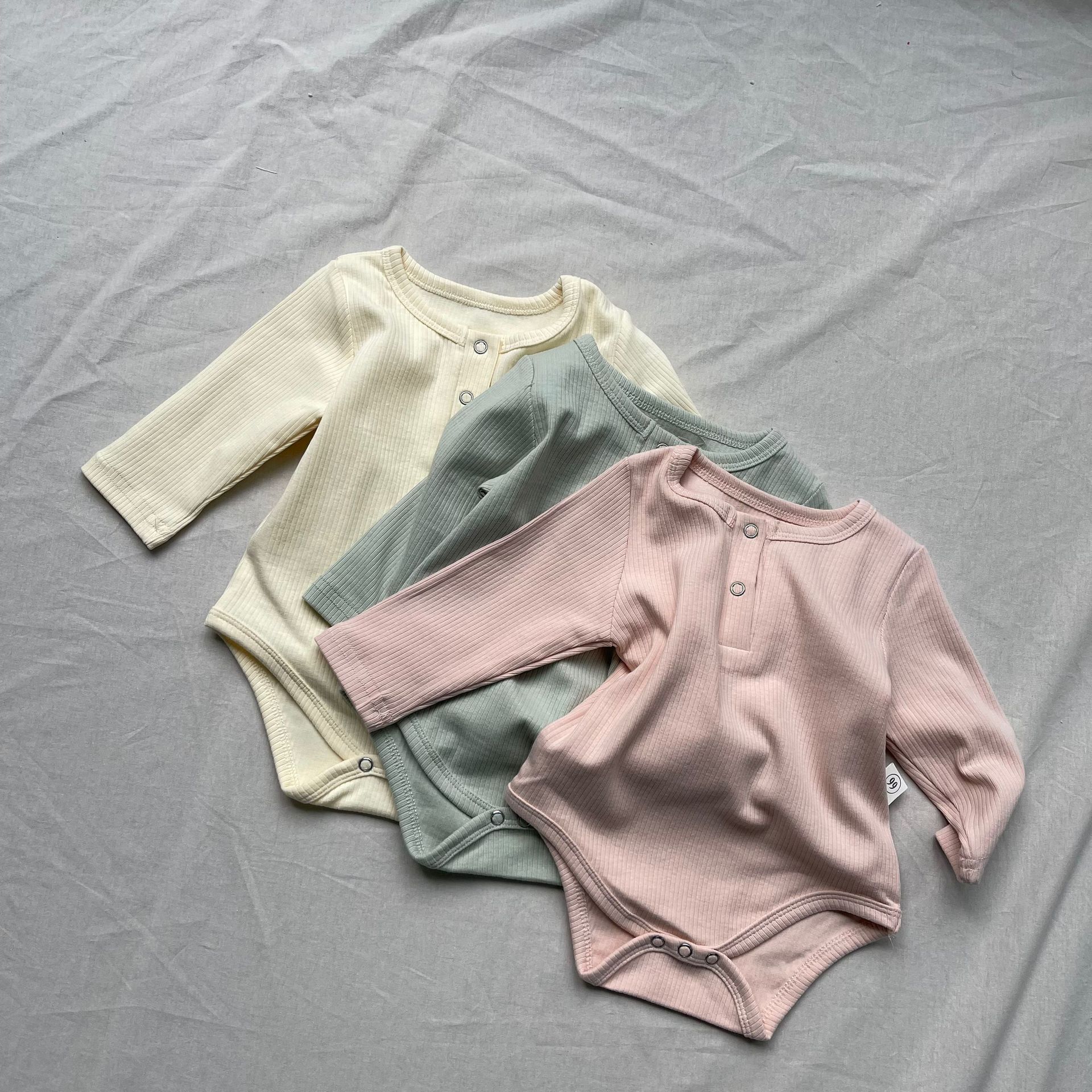 ベビーロンパース ヘンリーネックシンプル長袖ボディスーツ【mh0009171】