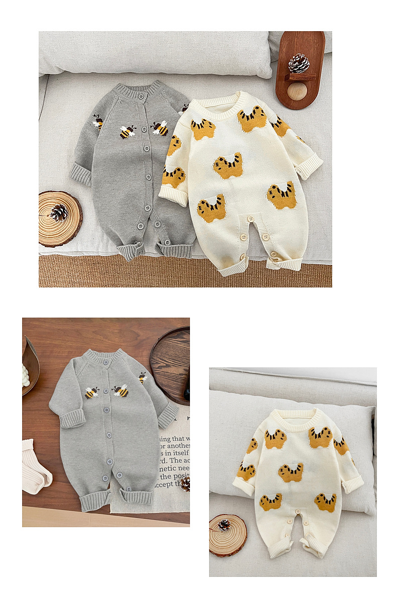 ベビージャンプスーツ ハチBee刺繍ニット長袖ロンパース【mh0009197】