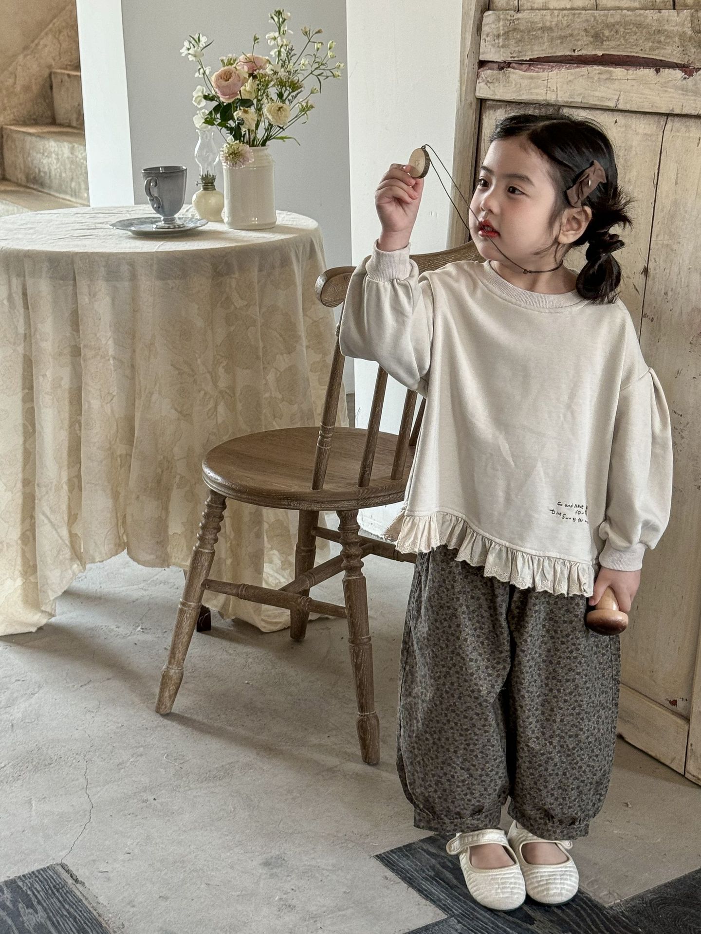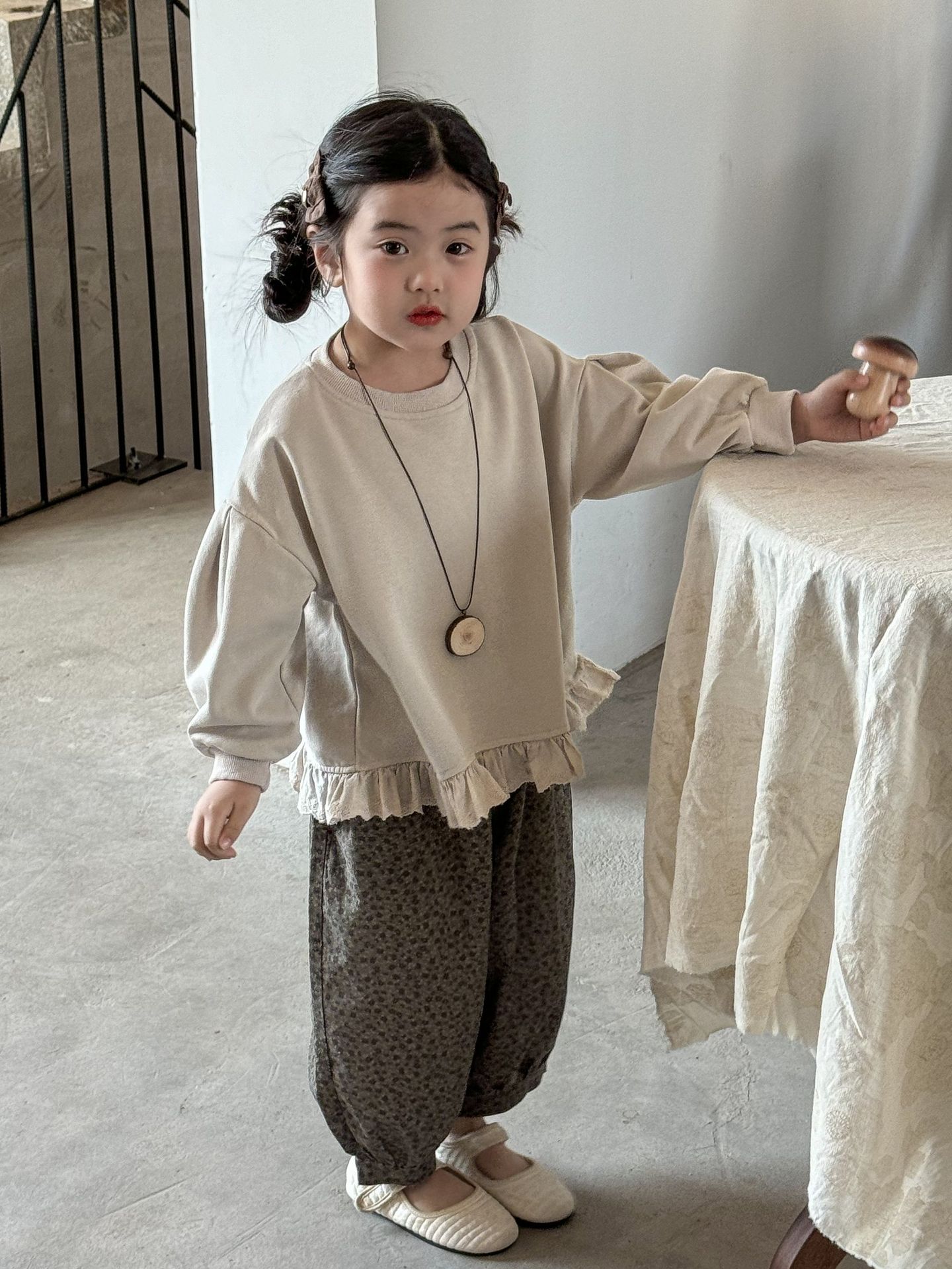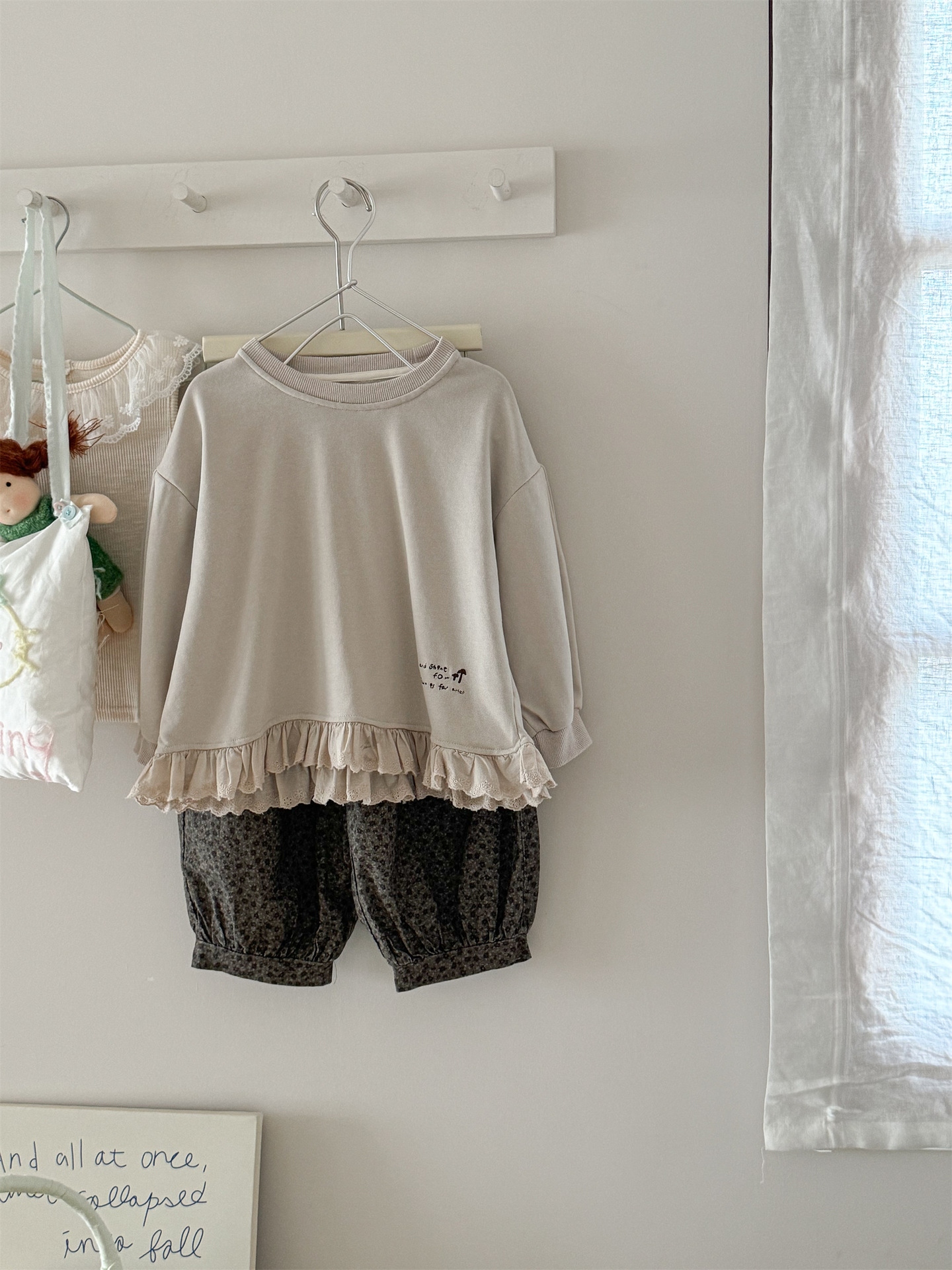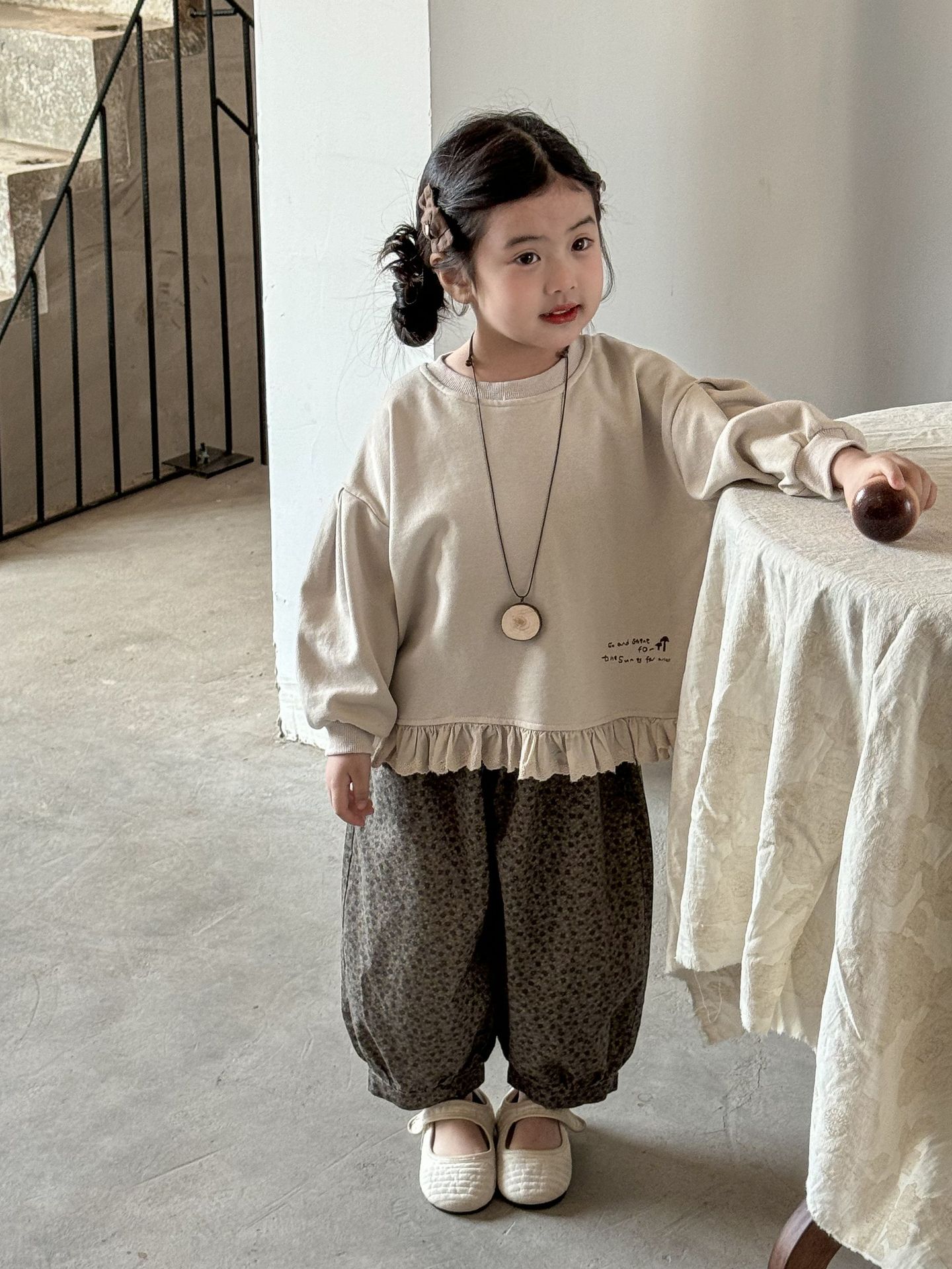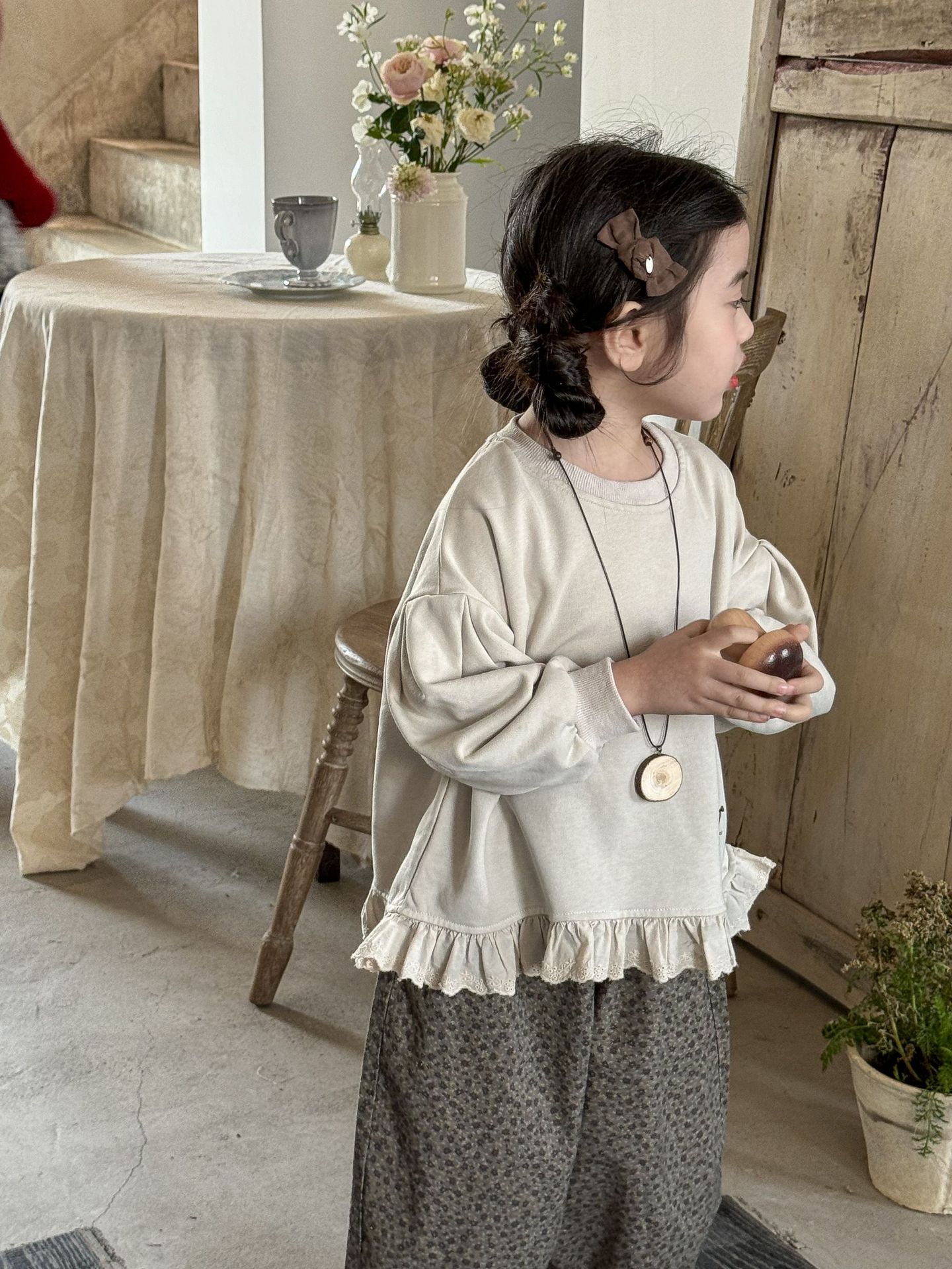 レースのパッチワークが華やかなアクセントになった、ゆったりシルエットのスウェットトップスです。柔らかな素材を使用し、肌触りがよく快適な着心地を実現。カジュアルなデザインながら、レースのディテールが上品な印象をプラスし、普段使いはもちろん、お出かけコーデにも取り入れやすい一着です。リラックス感のあるルーズフィットで動きやすく、デニムやスカートとも相性抜群。おしゃれを楽しみたいお子さまにぴったりのトップスです。