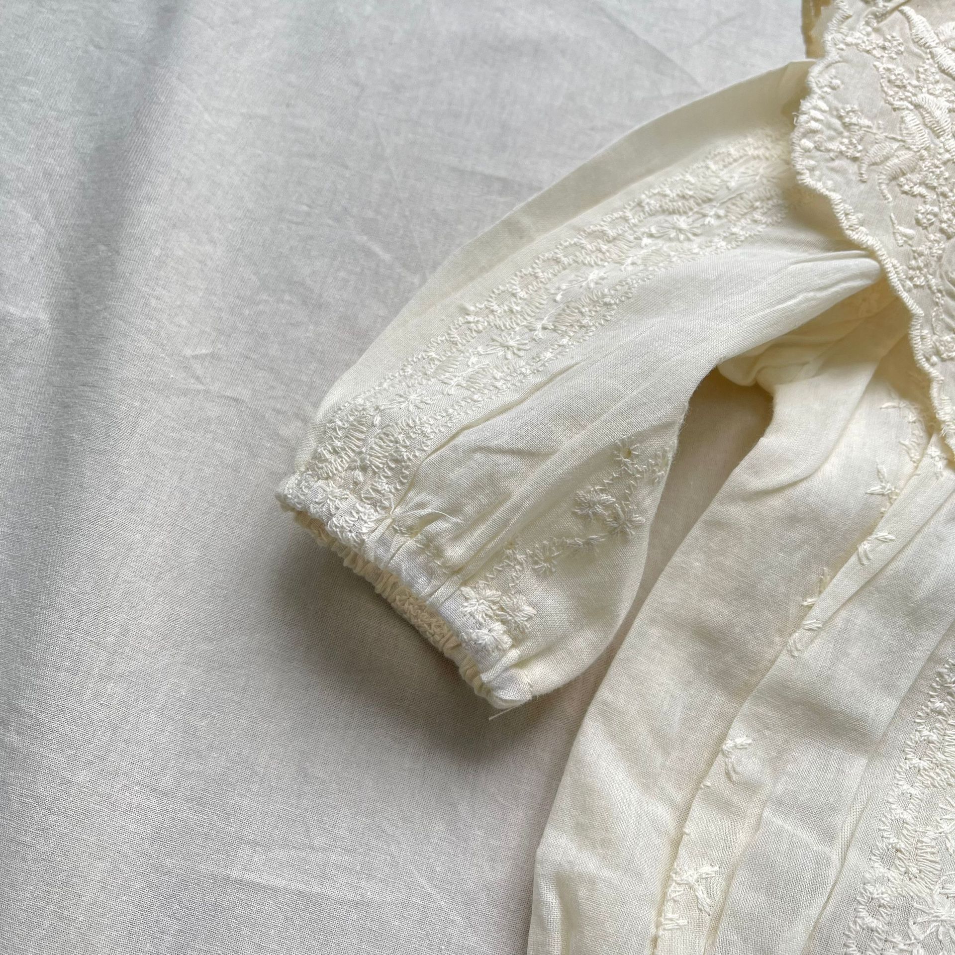 かわいらしいレース刺繍が施された長袖ロンパースです。大きな襟と繊細な刺繍が特徴で、クラシックでありながらも愛らしいデザインが魅力です。赤ちゃんの肌に優しい素材を使用しており、柔らかな着心地で快適に過ごせます。カジュアルでありながらも、特別な日の装いにもぴったりな一着です。お出かけやお昼寝、ハイハイする時期にも最適で、元気に動き回る赤ちゃんをおしゃれにサポートします。