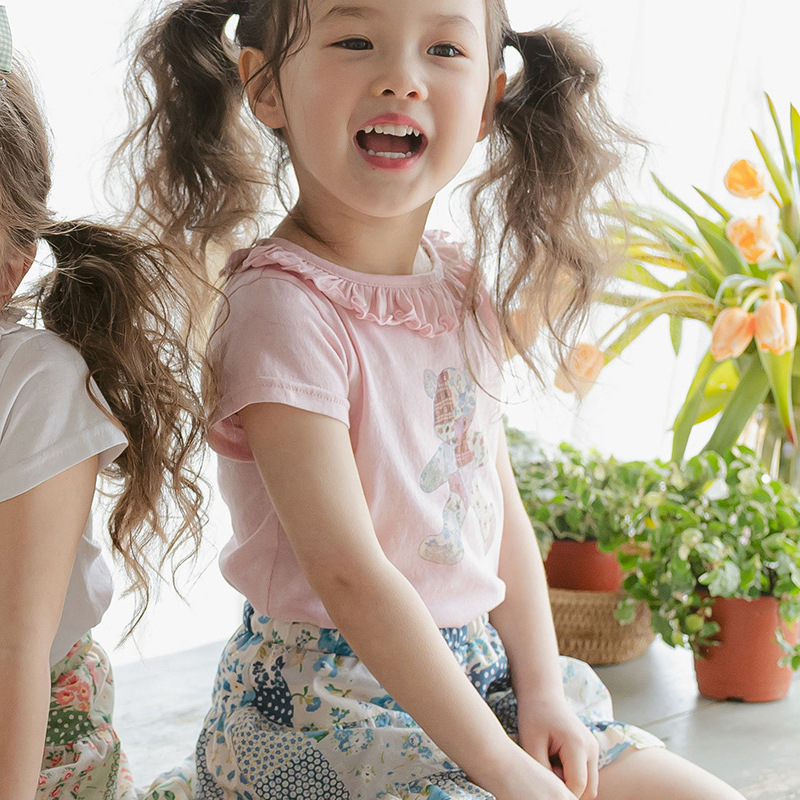 #キッズTシャツ #子供服 #女の子 #半袖 #くまプリント #フリル